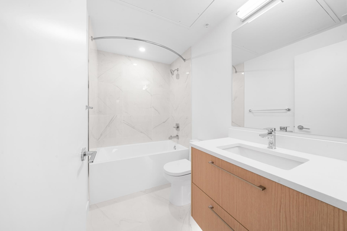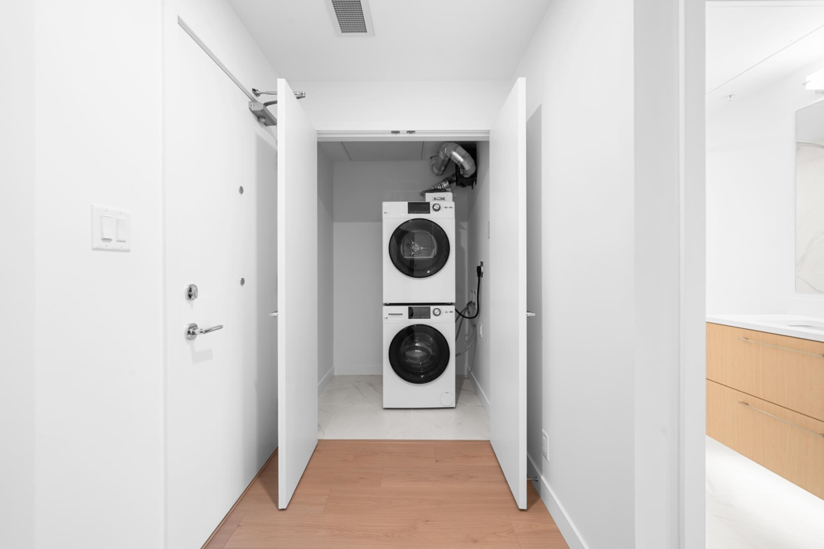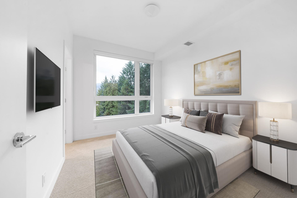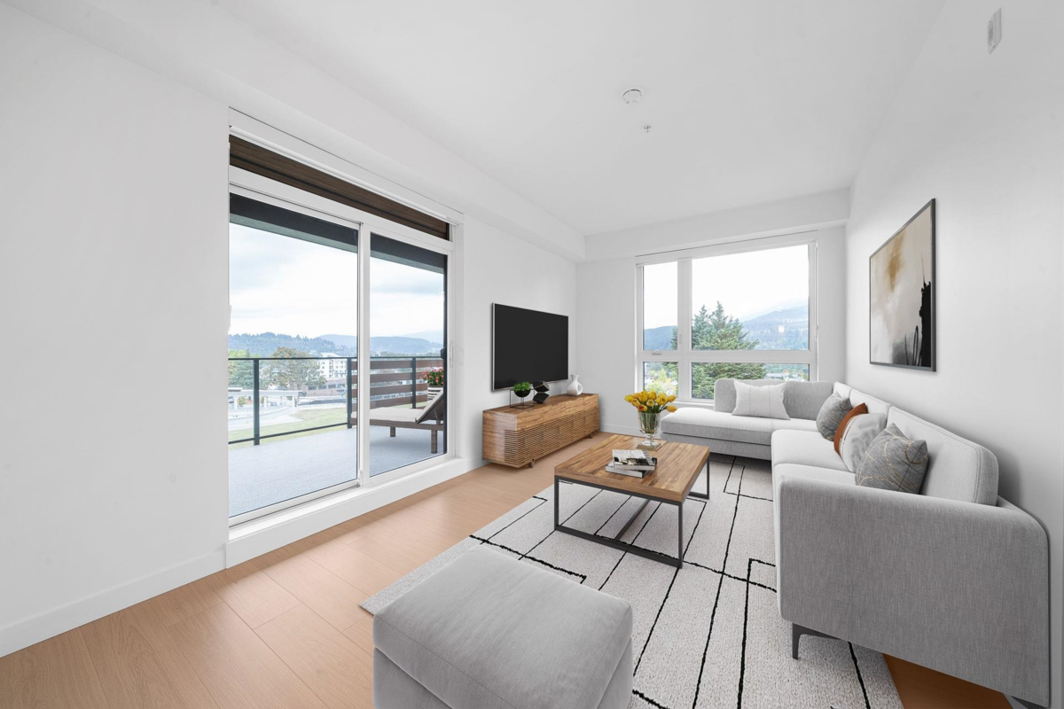 Welcome to SITKA HOUSE in the heart of PORT MOODY This modern 2 bed, 2 bath home features an open layout with quartz countertops, marble porcelain tile, vinyl flooring, and stainless steel appliances. The primary bedroom includes a private ensuite, and the second bedroom is ideal as a guest room or home office. Enjoy a large covered deck with beautiful sunset and mountain views. Amenities include a fitness centre, yoga studio, co-working lounge, kitchen/lounge, rooftop terrace with ocean and mountain views, pet wash station, & bike repair shop. Steps to cafés, shopping, trails, and SkyTrain. EV-ready parking and locker included. GST has been paid by the sellers. Quick closing available, move in for the holidays & start the new year in style! OPEN HOUSE: Sunday, November 30th from 12–2 PM