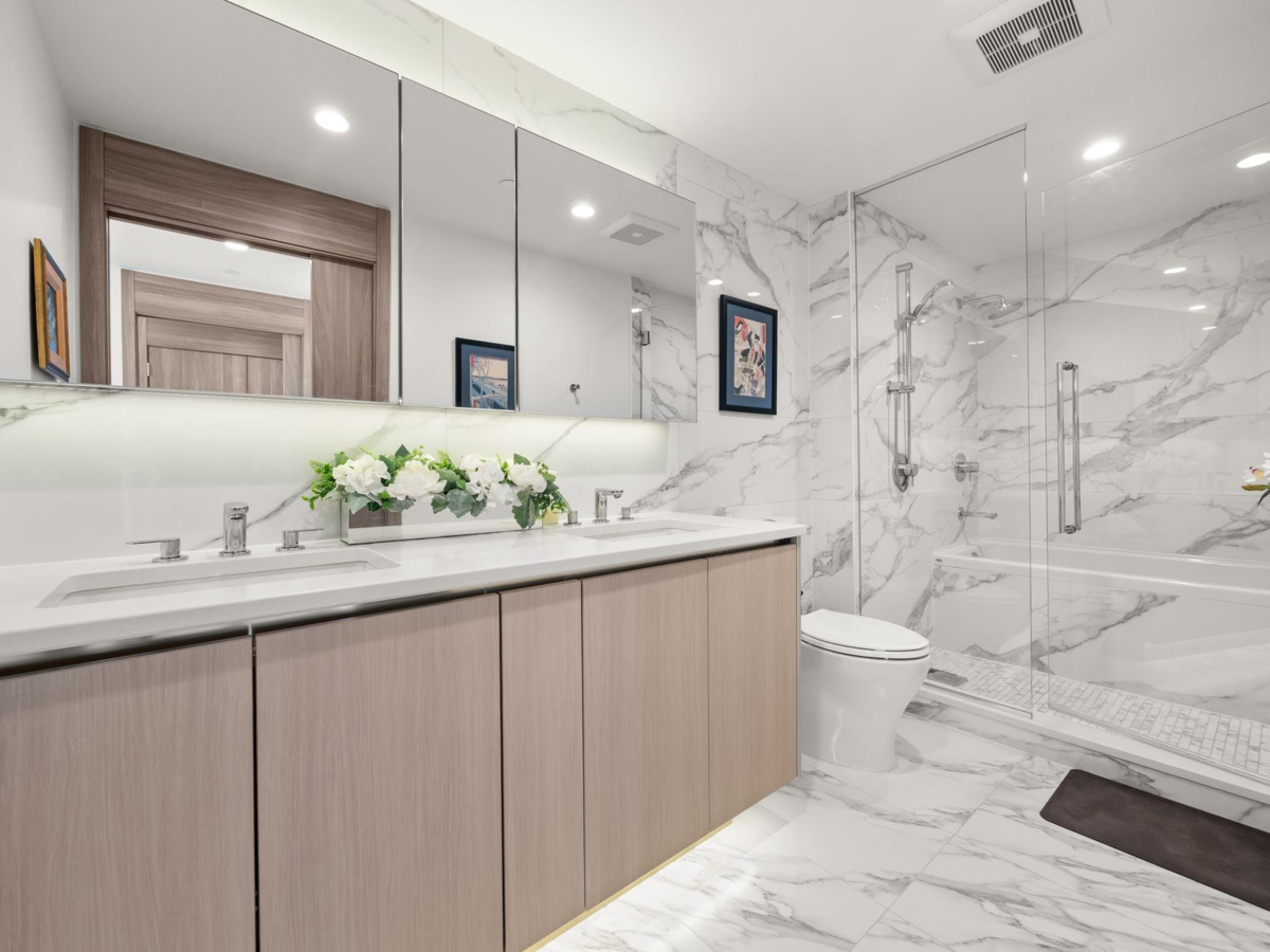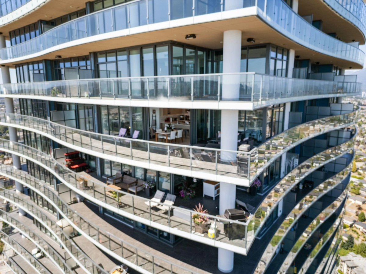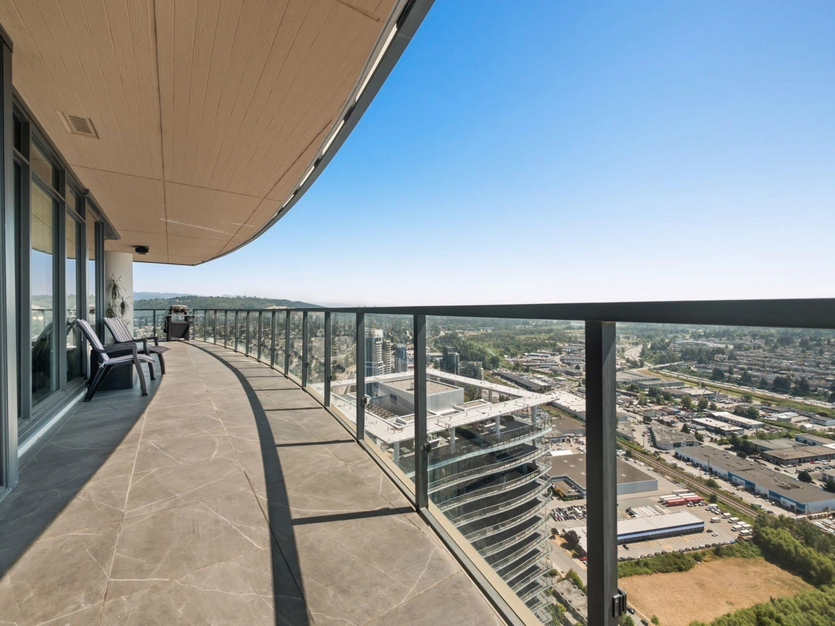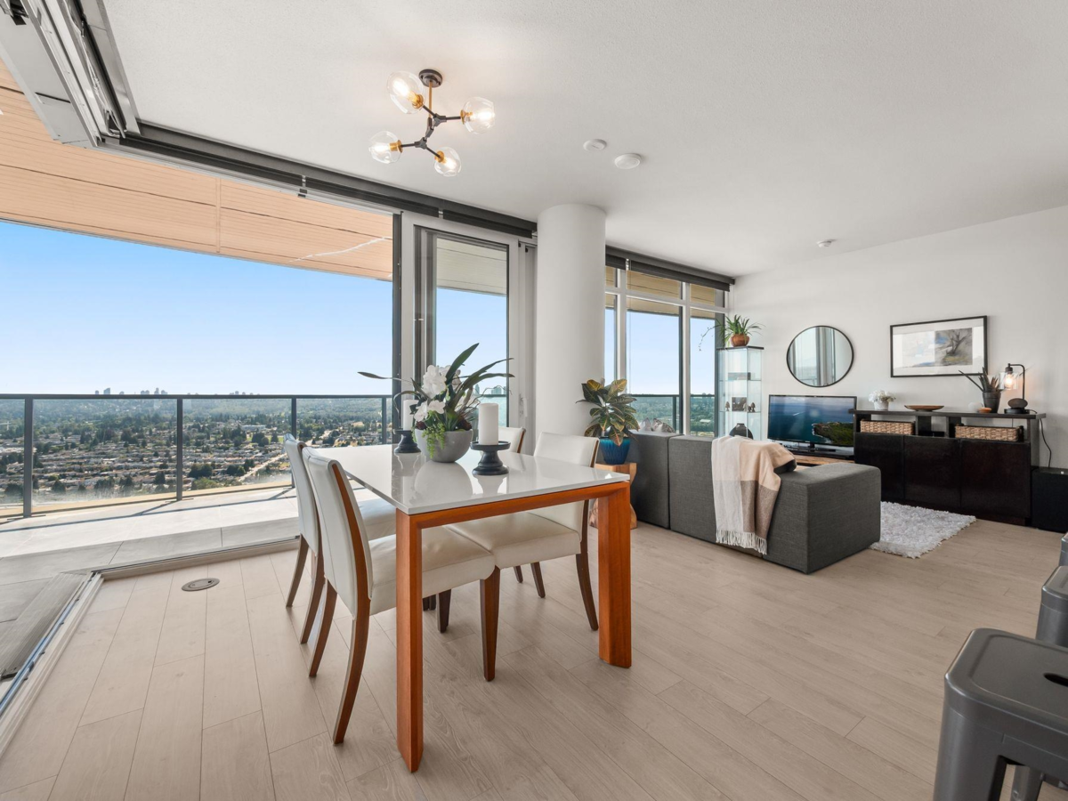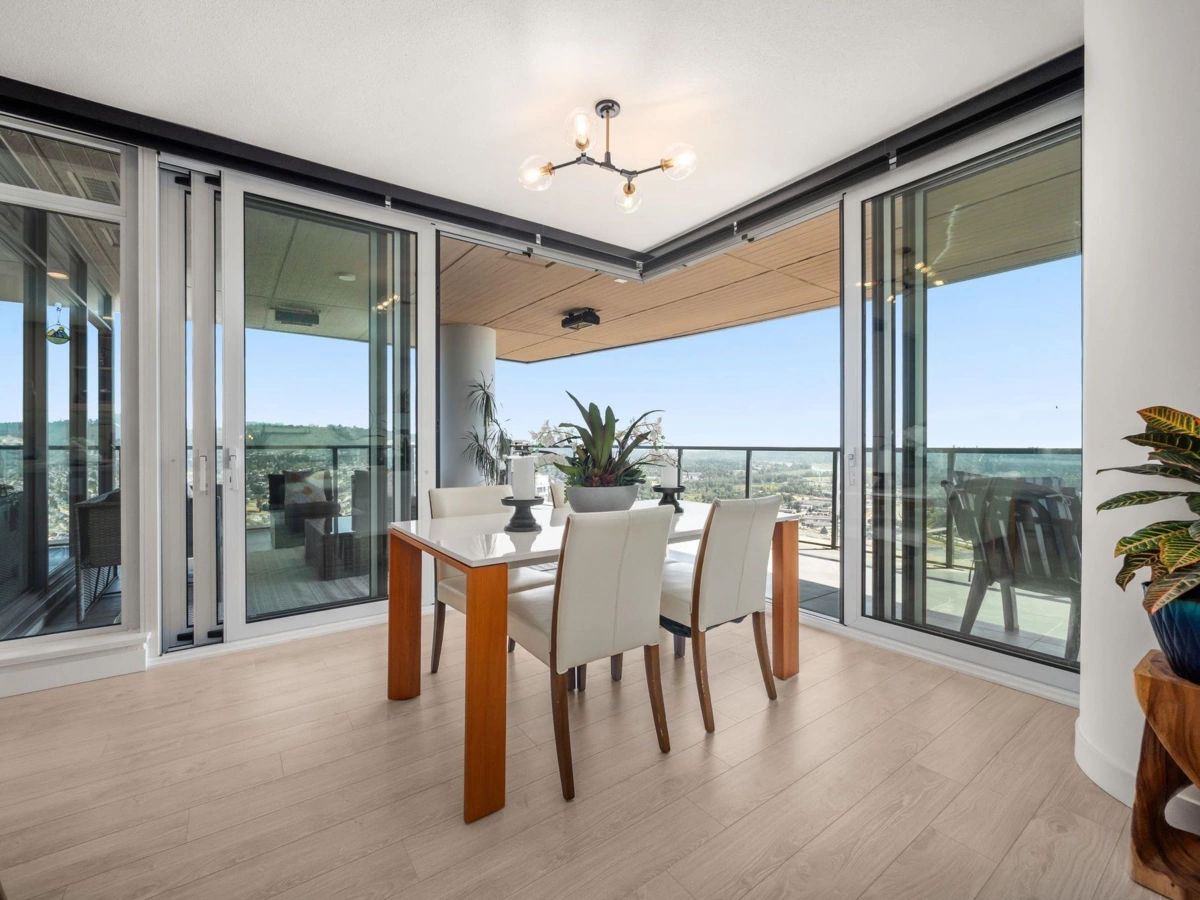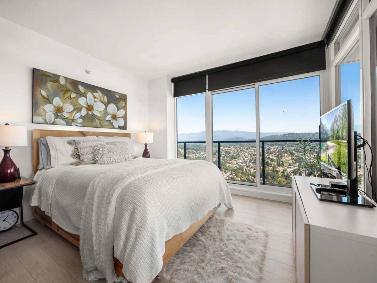 Sub-penthouse, corner suite at Concord Brentwood Hillside East with stunning, unobstructed 270° views—from the mountains and Indian Arm, to Mt. Baker, Metrotown, and the Gulf Islands. This south-facing 2 bedroom, 2 bathroom home offers 1,059 sqft of modern living and an incredible 638 sqft of heated outdoor space. Expansive sliding doors fully open to create a seamless flow between indoors and out—perfect for entertaining or relaxing with your morning coffee or evening glass of wine. Sophisticated design, quality finishings, air conditioning, and a bright open layout. Exceptional amenities, 24/7 concierge, and just steps to Brentwood Mall and Skytrain. One parking and storage locker included. Open: Sun, Nov 2, 2-4