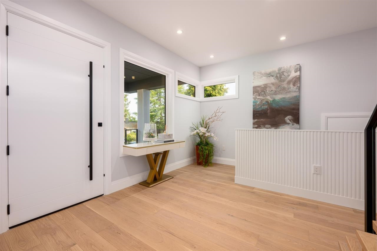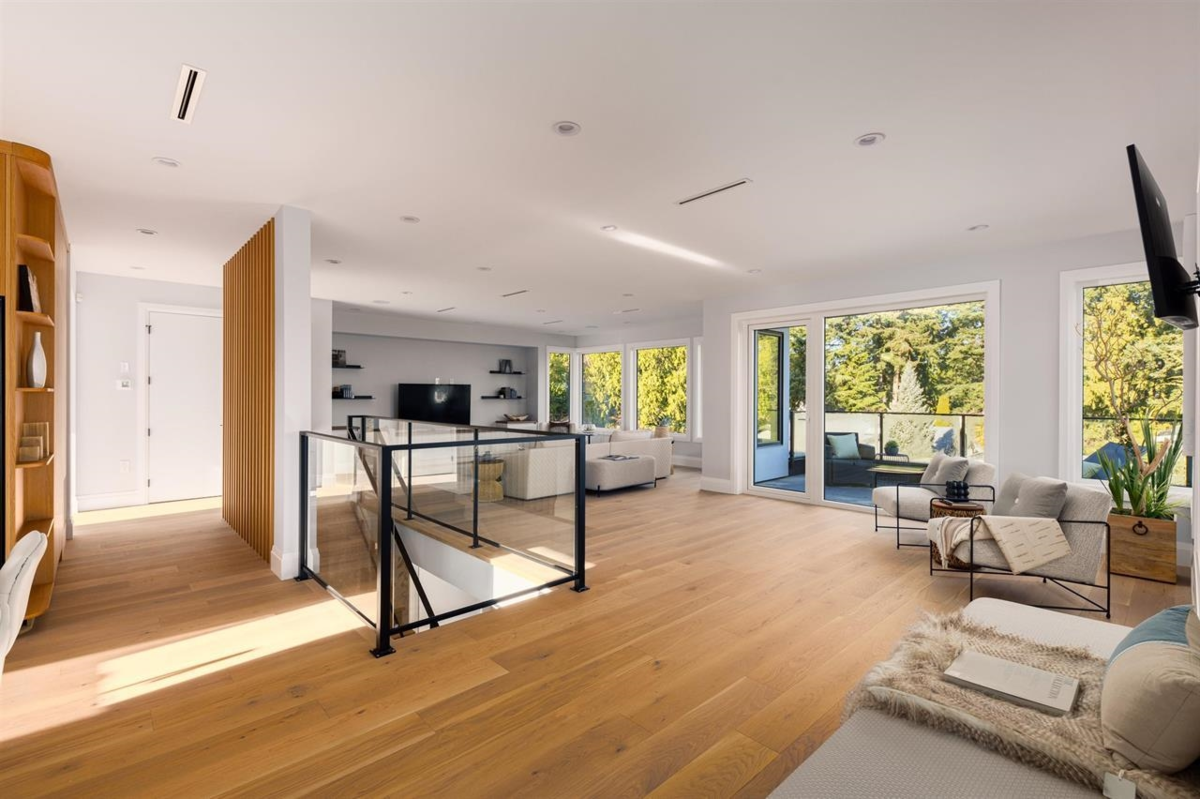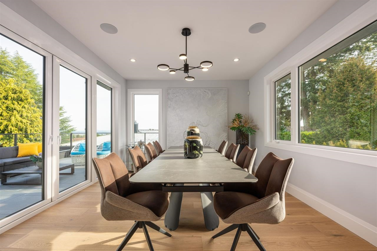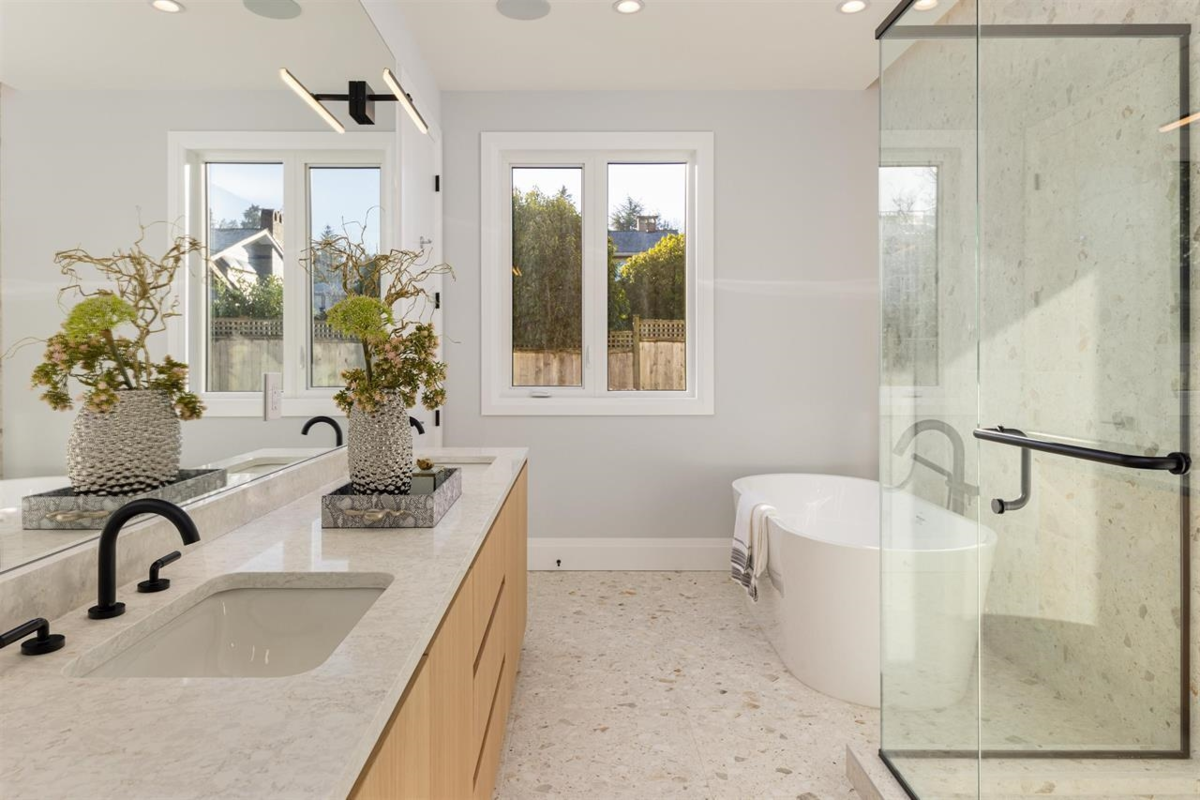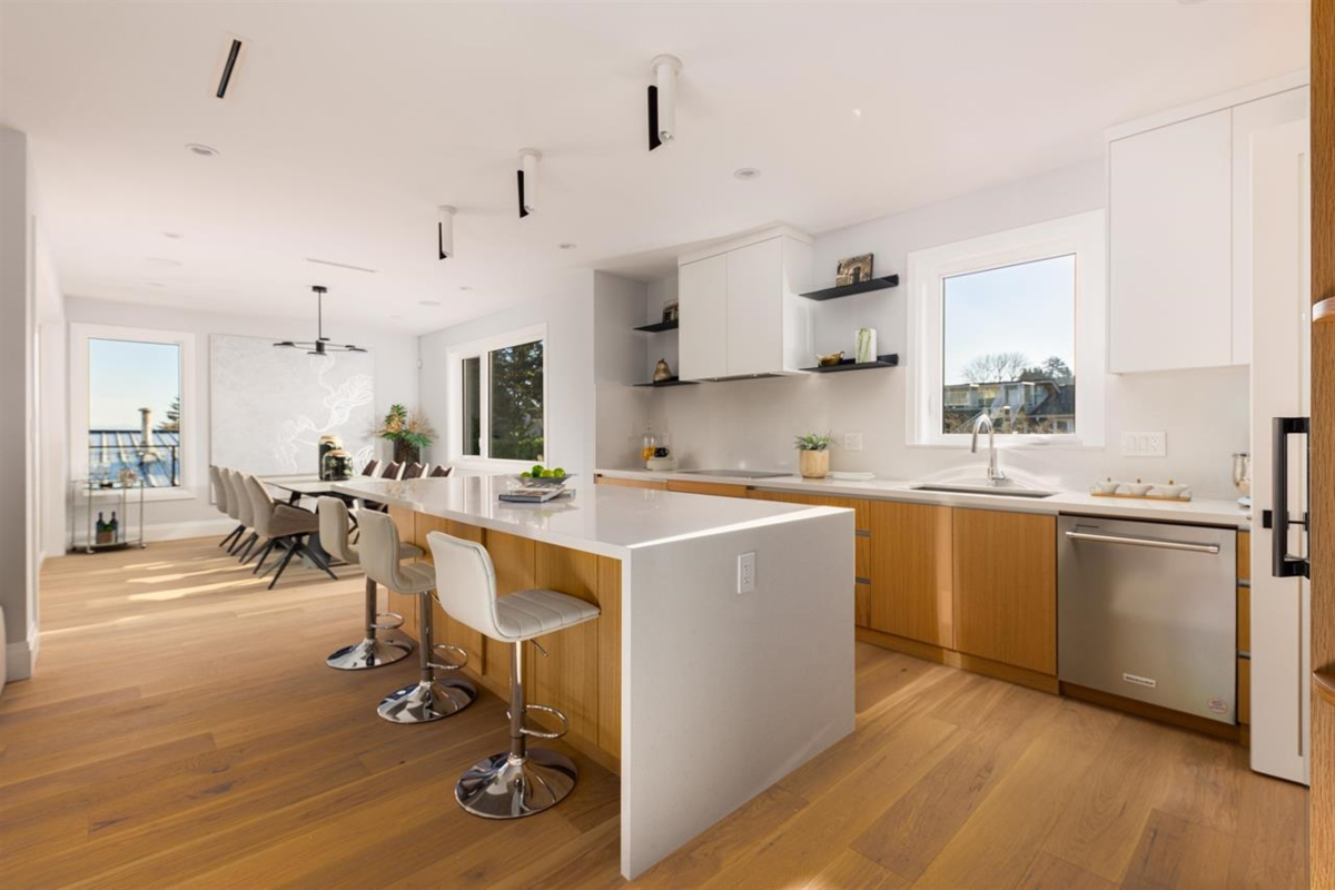 Enjoy stunning mountain and water views from this brand-new contemporary home in prestigious Pebble Hill. Positioned on side of a quiet st, it offers 5,100+ sq.ft. of luxury living on a 7,218 sq.ft. lot. Step into grand foyer with soaring ceilings, open-concept living, and hardwood flrs throughout. The gourmet ktchn features high-end appliances, custom cabinetry, & large granite island, plus wok kitchen for added convenience. With 7 bedrms + open den, including serene primary suite with spa-style ensuite, there's room for the whole family. The legal 2-bedrm suite with separate entrance, kitchen, bath, and laundry is perfect as mortgage helper or for extended family. Features incld radiant in-floor heating, A/C, HRV, and media rm. Close to top schools, prks, beaches & shopping.