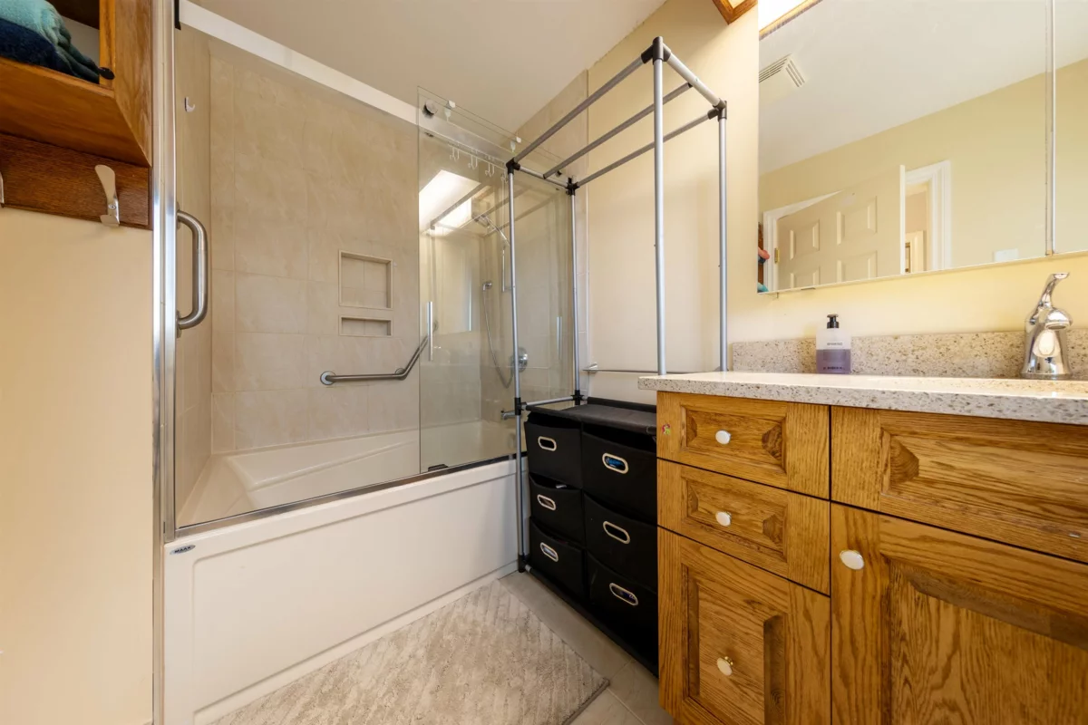A hidden gem in a quiet area of North Tsawwassen. This totally updated home with 4 bedrooms+3 bathroom, lovingly cared for by these long term owners who have improved everything over the last 15 years (over $200K spent), including: custom kitchen, baths, oversized tub, suspended vanities, Hardi board siding, concrete tile roof, new windows, flooring, furnace, on demand hot water etc. Private office in the oversized garage with loads of storage. Balcony off the master bedroom with a view. Just 2 blks from Southpointe Academy , Delta Rec Center and transit. Walk to parks and play fields too. Owners say it is time to downsize so the next owner can enjoy this special family home. Check out the huge rear sundeck too.
