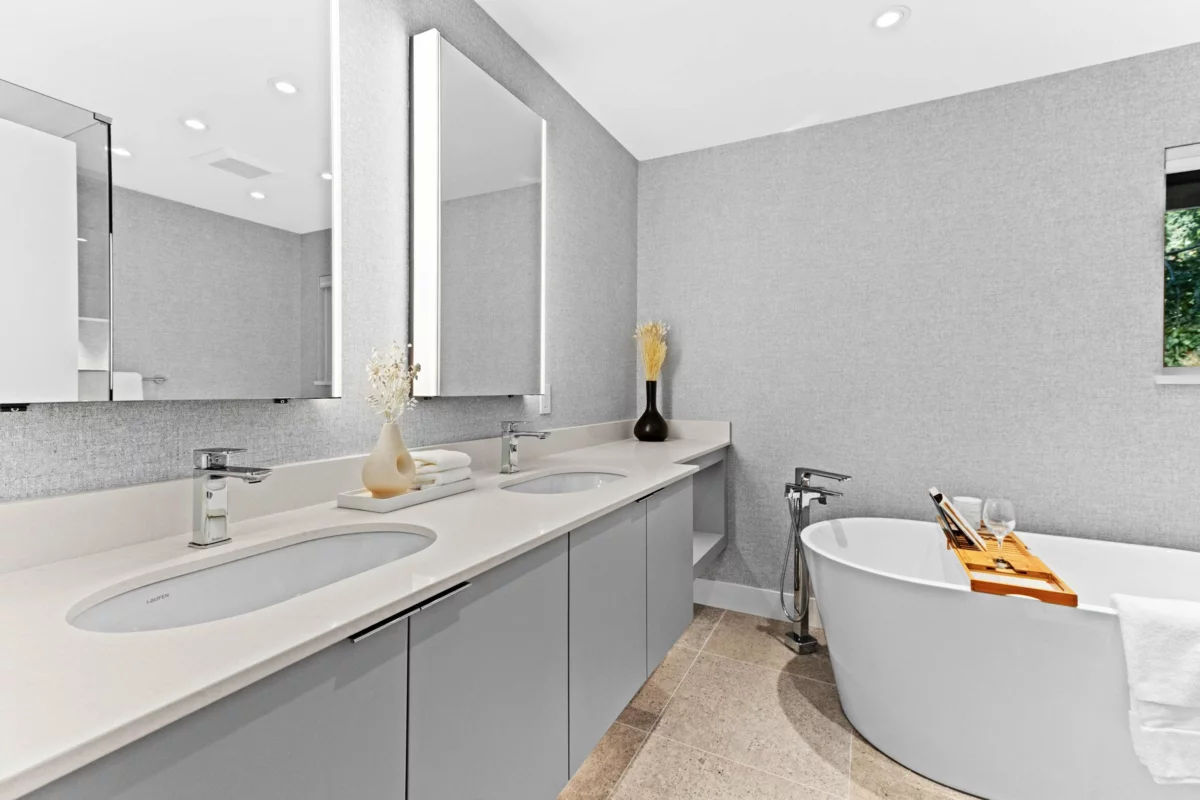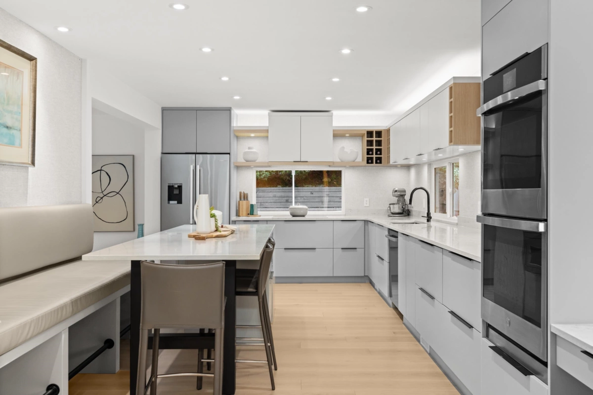 Fully renovated Mid-Century Modern home with interior by renowned designer Lisa King. Located in Eagle Harbour’s 30 km/h quiet zone, this 5-bed, 3-bath home showcases over $700K in upgrades. Enjoy a chef’s kitchen with built-in nook, spa-inspired baths, 2 wood-burning fireplaces, and new 200-amp electrical service ideal for EV charging. The flat 13,504 sq ft lot features a sunny backyard with a Pickleball Court. A self-contained 1-bed suite with its own laundry and entrance offers great mortgage support. Steps to Eagle Harbour Montessori, Park Verdun, Tennis Courts and Eagle Harbour Beach. Caulfield Village Shopping Centre and Rockridge secondary are just up the hill.