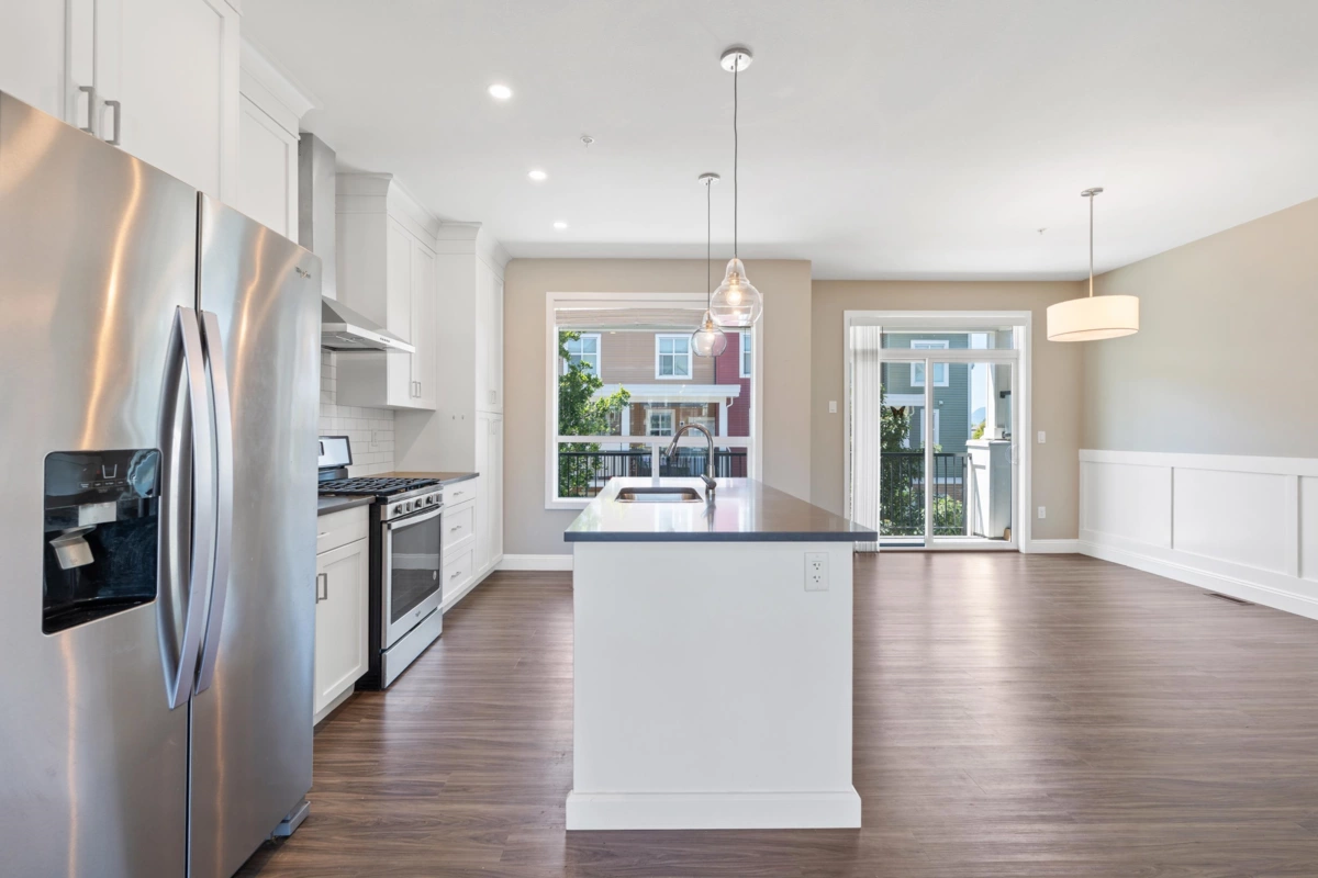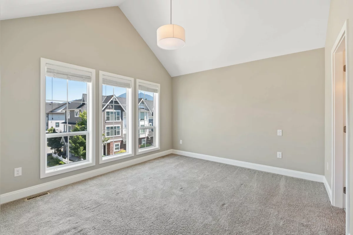 Discover this stunning 4-bed, 3-bath non-strata Row Home in desirable Webster Crossing—offering 1,500+ sq ft of bright, modern living with no strata fees! Steps to Vedder River, Rotary Trail, parks, and schools. Features quartz counters, gas range, S/S appliances, A/C, NG fireplace, large windows with mountain views, and an open floorplan. The vaulted-ceiling primary suite offers a walk-in closet and spa-like ensuite with heated floors. Enjoy a fenced yard, covered patio with BBQ outlet, EV-ready double garage, full driveway, and dog wash station. Close to Garrison Crossing, Cultus Lake, and Hwy 1—this is the lifestyle you’ve been waiting for! No strata, no bylaws, self-managed.