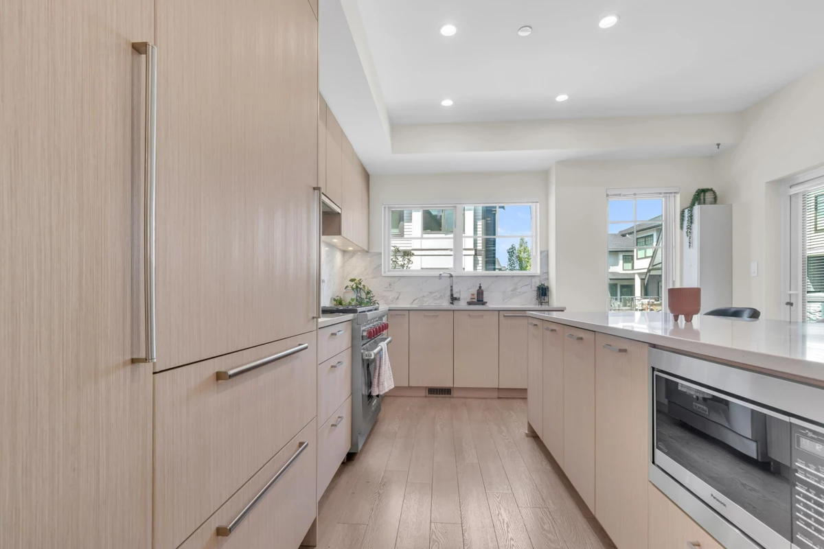 Welcome to resort-style living at Nature’s Walk This 4 bed, 4 bath duplex offers 1,920 sqft of bright, open-concept space. The gourmet kitchen features a large island, 6-burner WOLF range, SUB-ZERO fridge, quartz countertops, flat-panel cabinetry, and a cozy eating nook that opens to a private deck. The spacious dining/living room includes a fireplace and a balcony overlooking the community. Upstairs,the primary suite boasts a spa-like ensuite, heated floors and walk-in closet with custom organizers. Two more bedrooms and full bath complete the upper level. Downstairs offers a bedroom with ensuite, extra storage. The fully fenced backyard includes low-maintenance synthetic turf. Just steps to The Meadows Club with outdoor pool, hot tub, full gym, lounge, golf/sports simulator & games room.