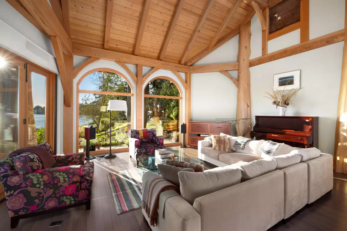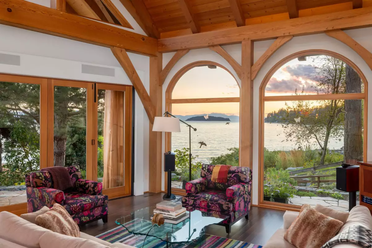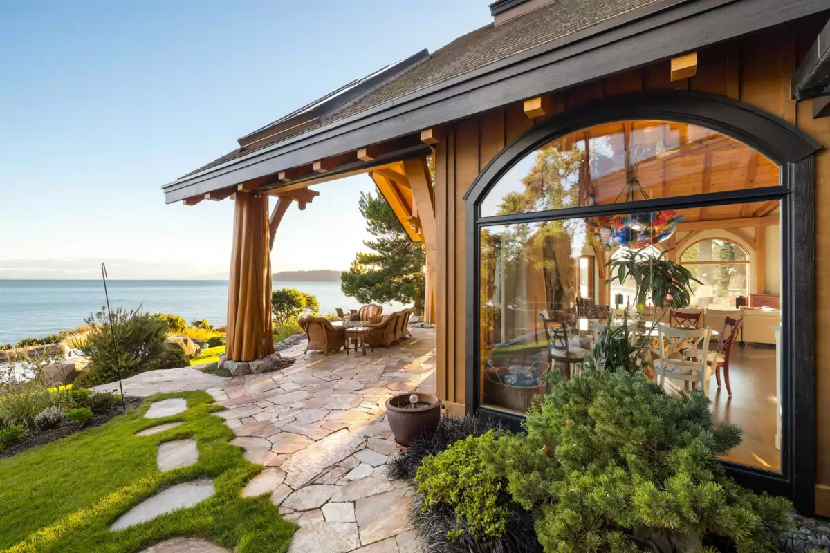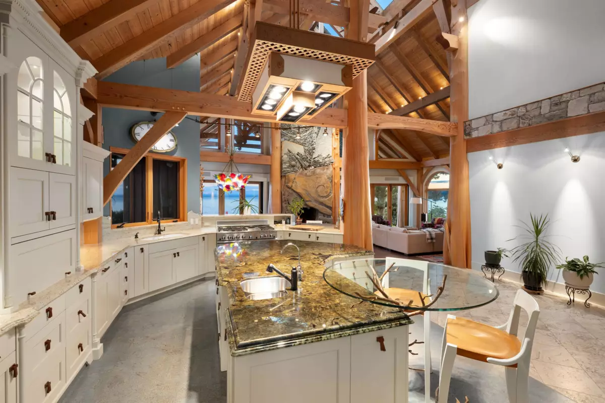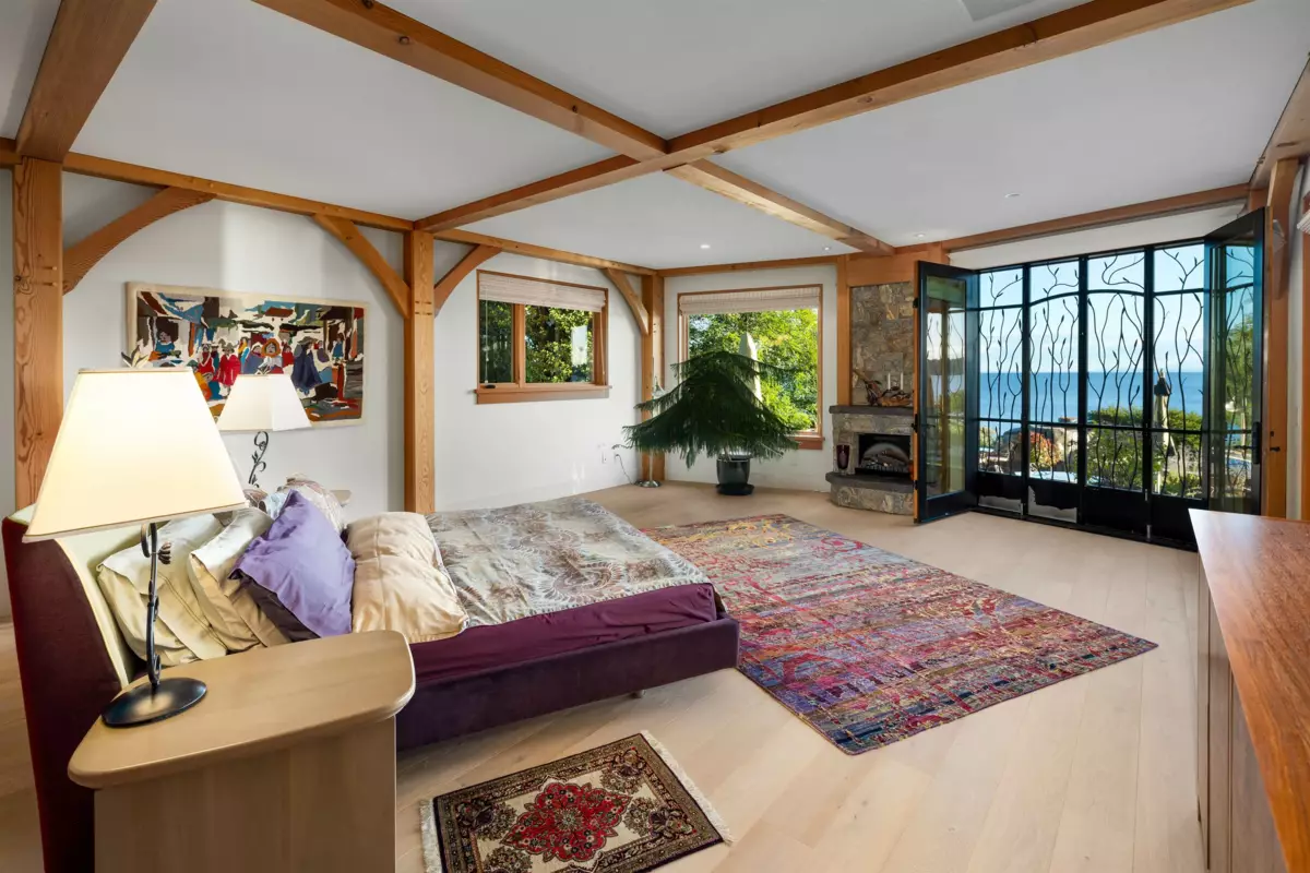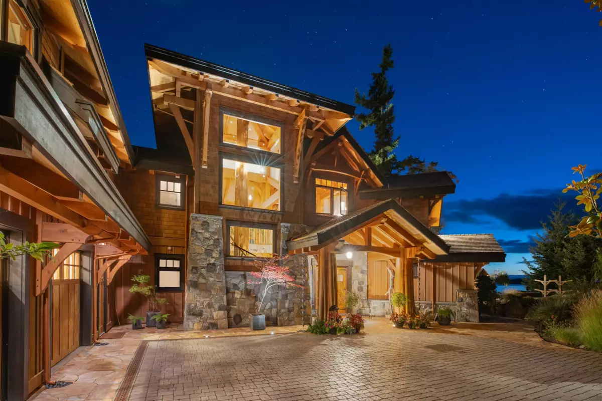 Perched majestically on a magnificent .96 acre waterfront estate, this West Coast timbered masterpiece redefines coastal elegance with its seamless fusion of raw nature and refined craftsmanship. This extraordinary custom built oceanfront residence is a symphony of heavy Douglas fir timbers, their rich grain exposed in soaring, vaulted ceilings that frame unobstructed Pacific vistas providing a wonderful indoor outdoor living experience like no other. The open-concept floor plan provides entertainment size principal rooms. Each of the 5 bedrooms feels like a serene retreat enveloped by the rhythmic pulse of the ocean below. Terraced gardens cascade down the bluff blurring the line between architecture and landscape.