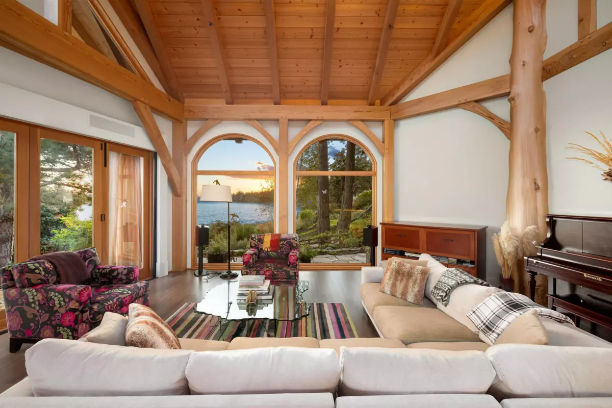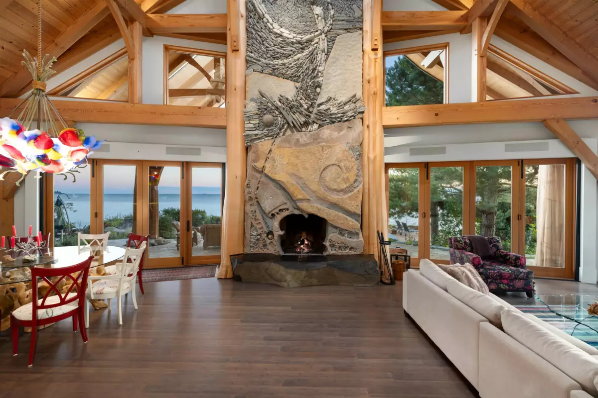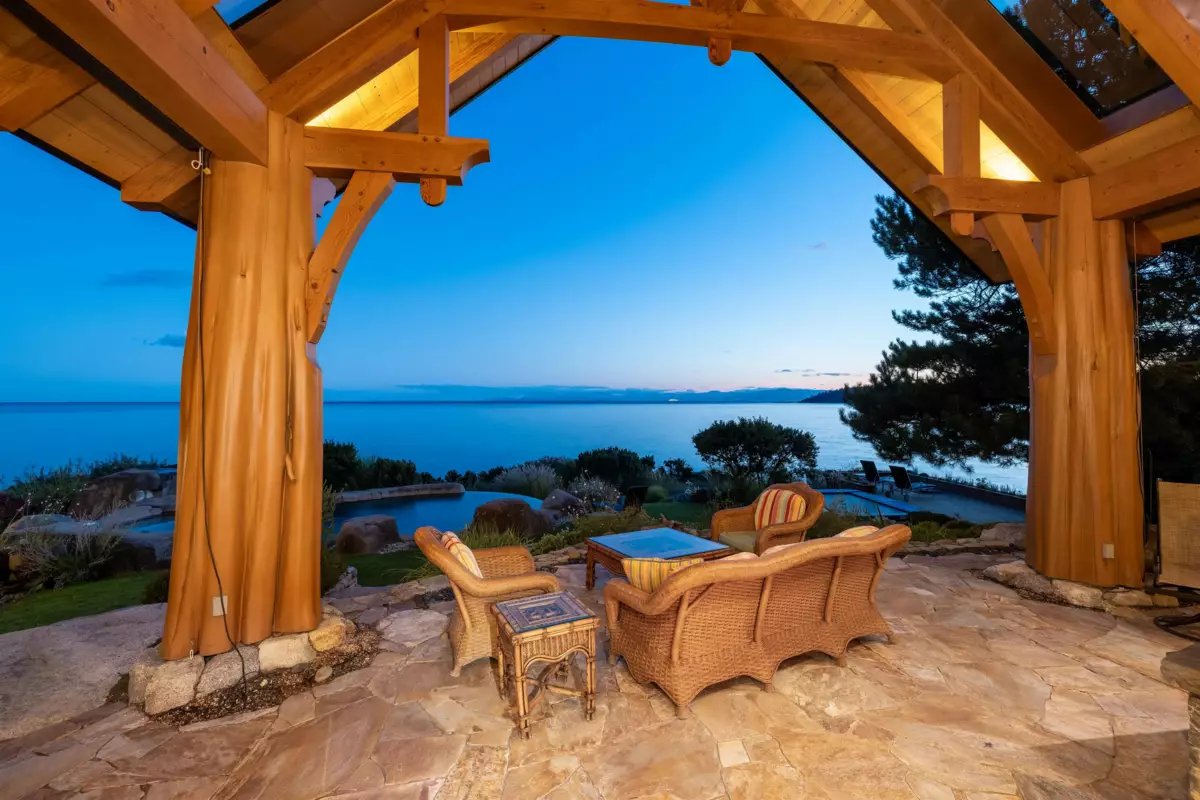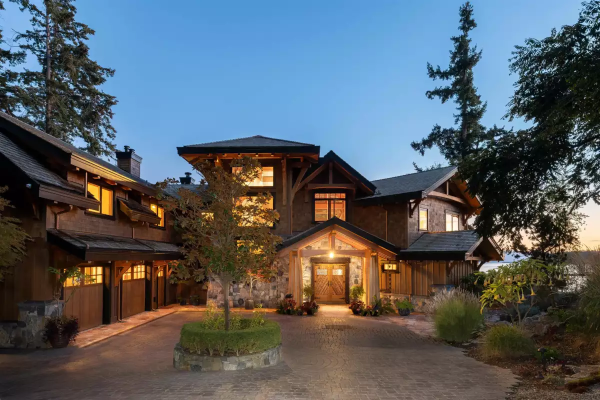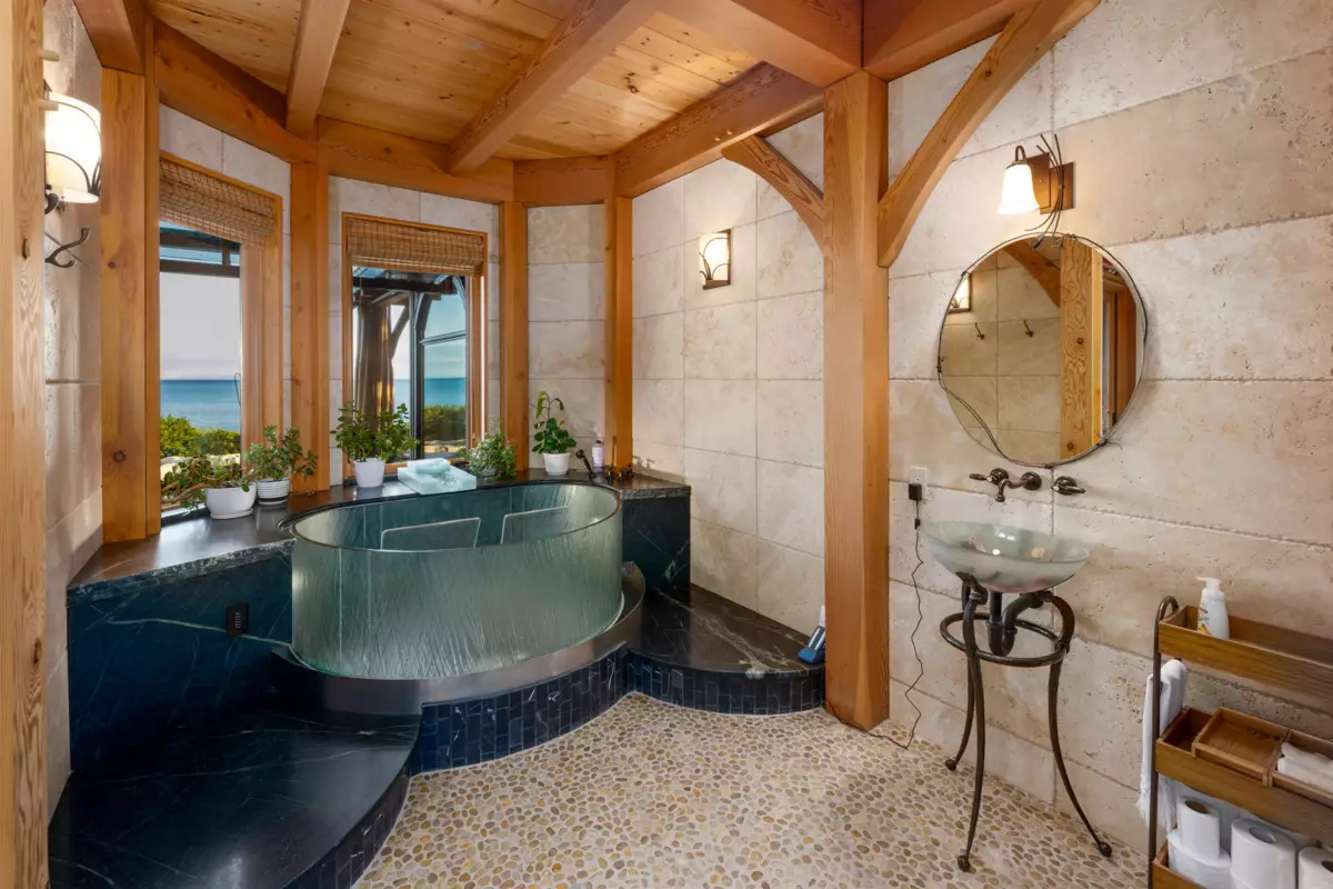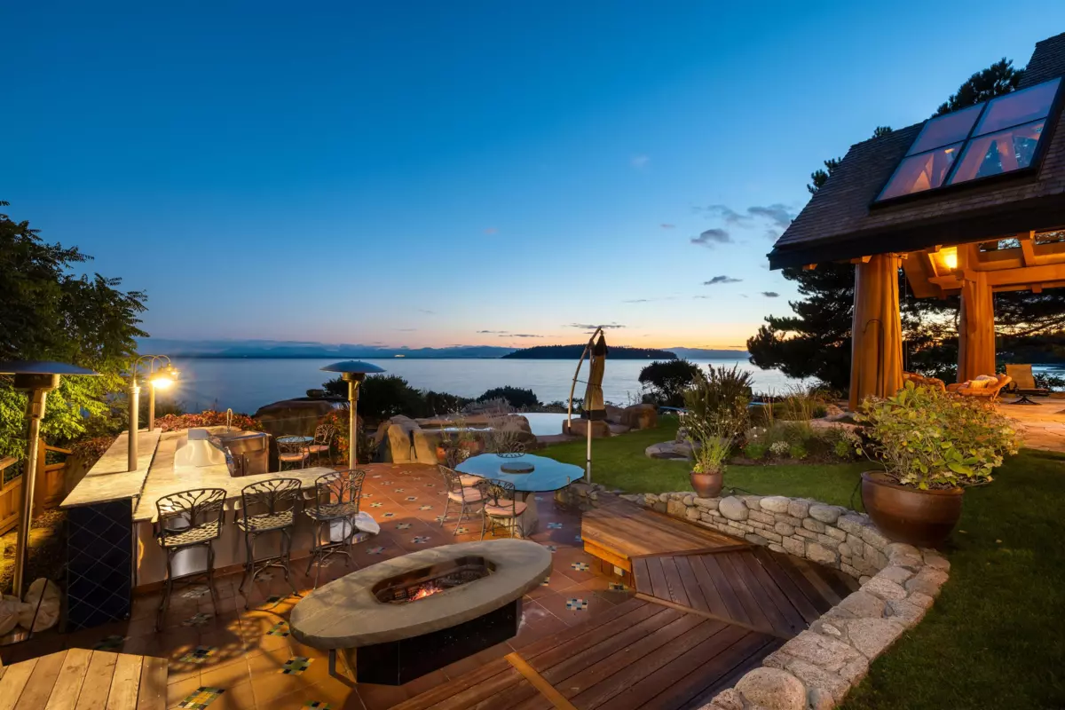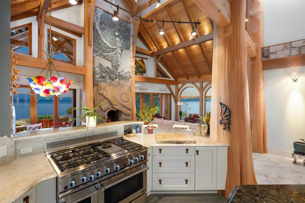 Perched majestically on a magnificent .96 acre waterfront estate, this West Coast timbered masterpiece redefines coastal elegance with its seamless fusion of raw nature and refined craftsmanship. This extraordinary custom built oceanfront residence is a symphony of heavy Douglas fir timbers, their rich grain exposed in soaring, vaulted ceilings that frame unobstructed Pacific vistas providing a wonderful indoor outdoor living experience like no other. The open-concept floor plan provides entertainment size principal rooms. Each of the 5 bedrooms feels like a serene retreat enveloped by the rhythmic pulse of the ocean below. Terraced gardens cascade down the bluff blurring the line between architecture and landscape.