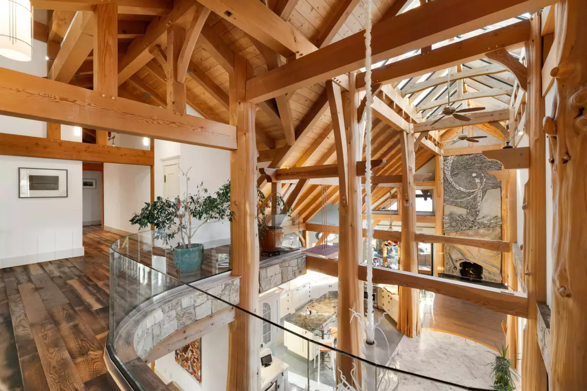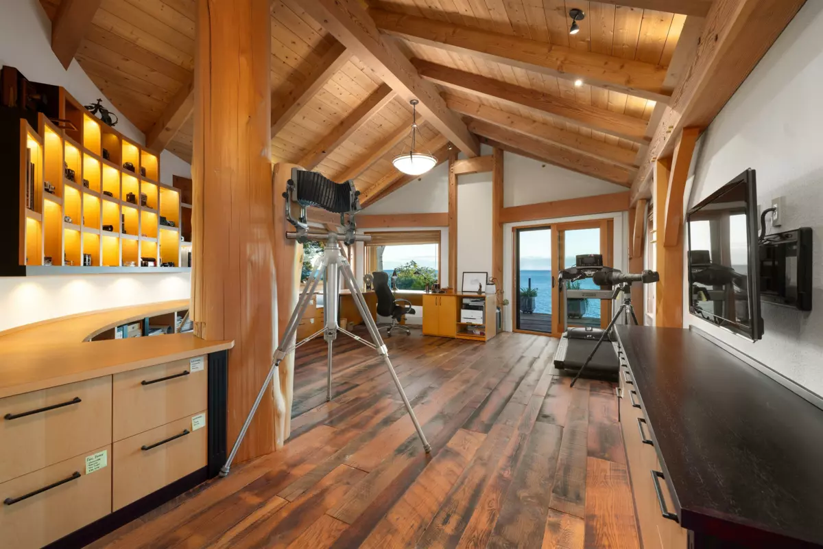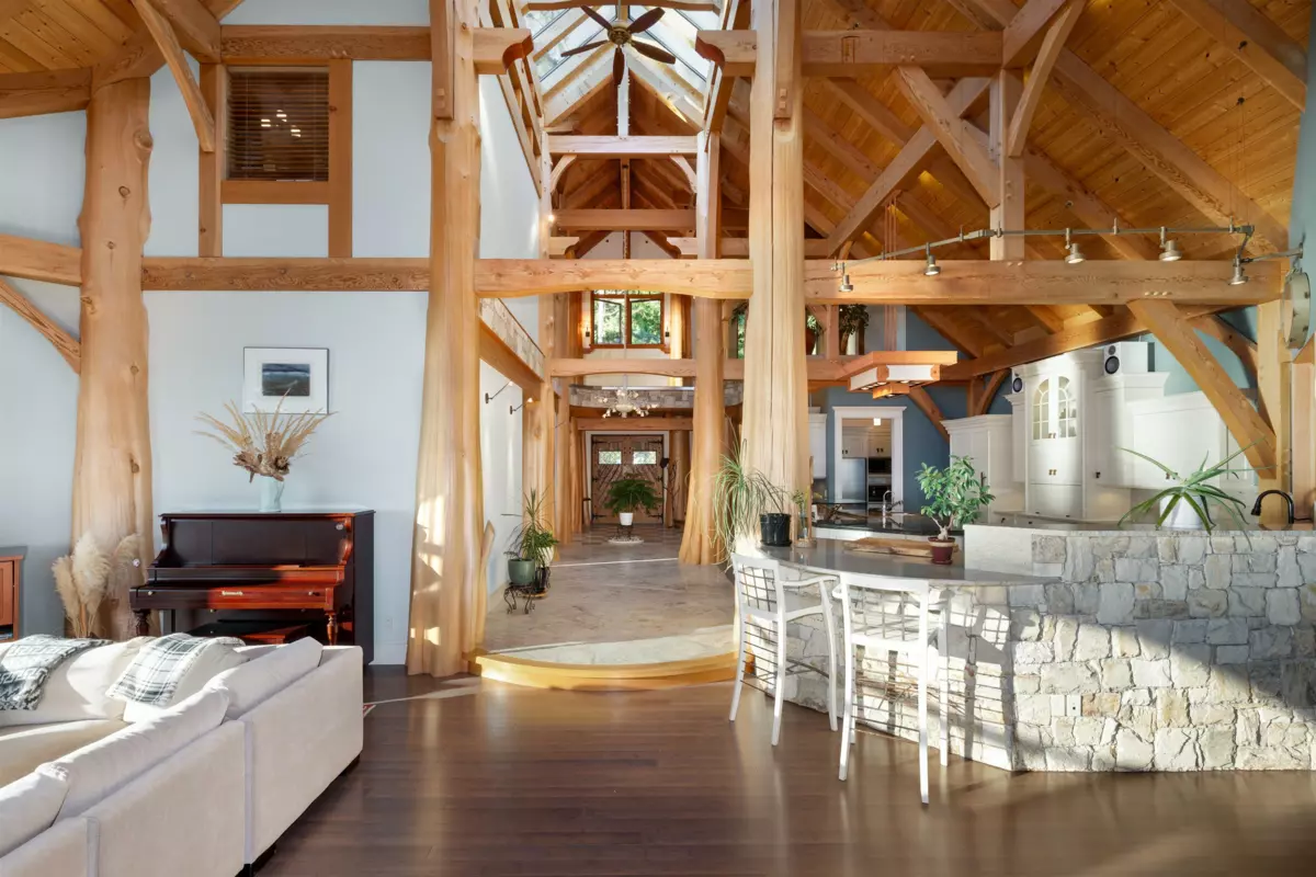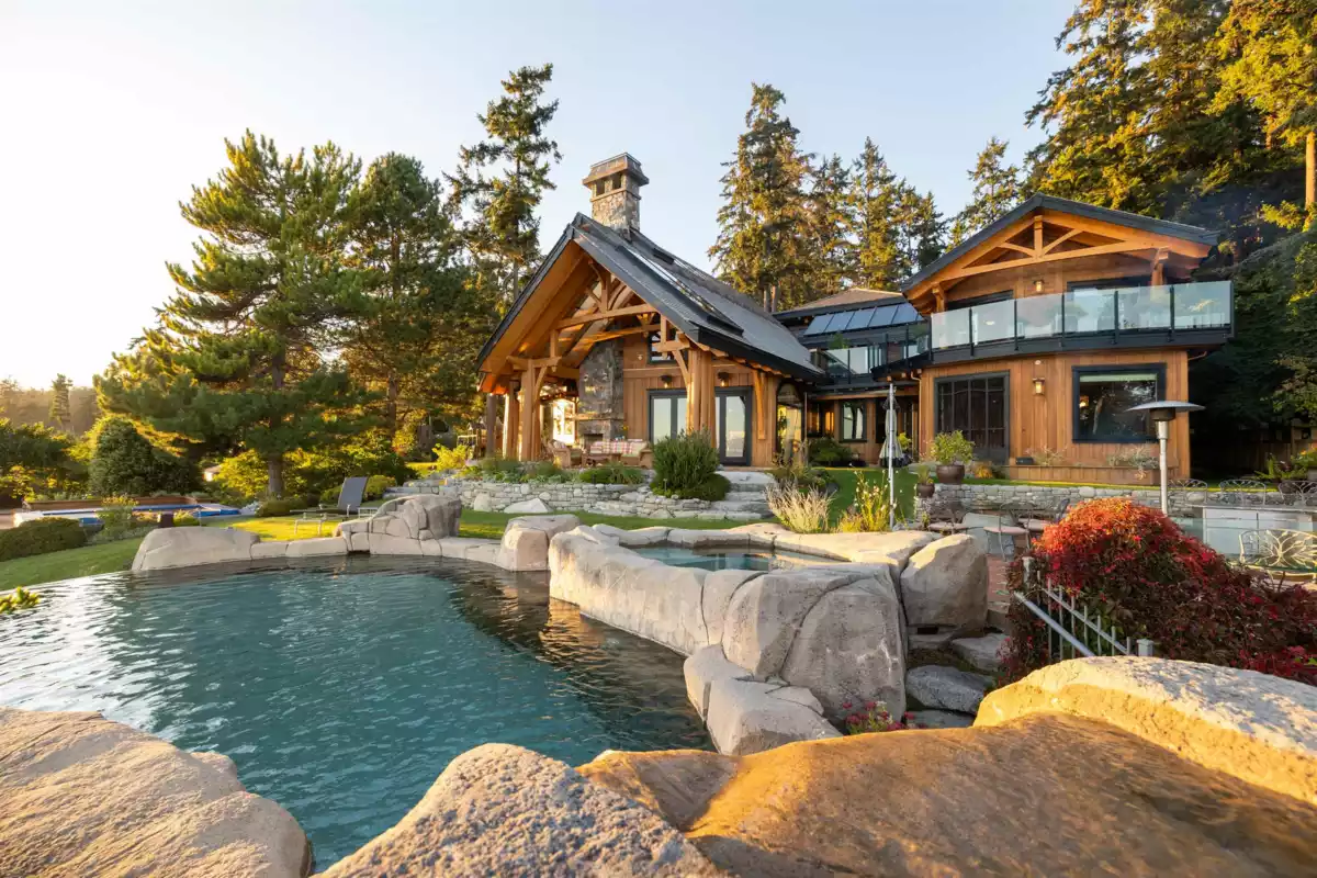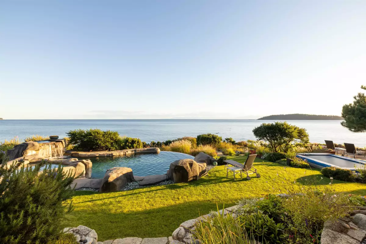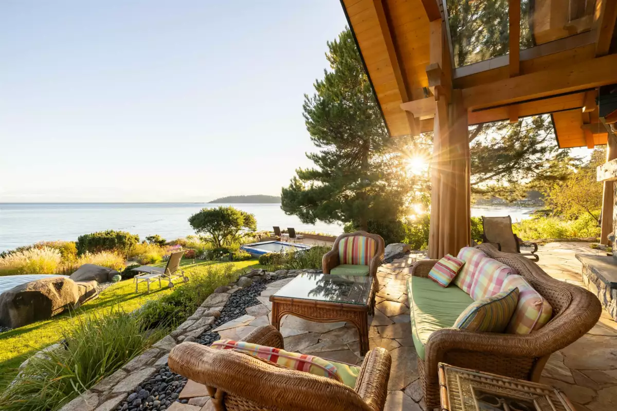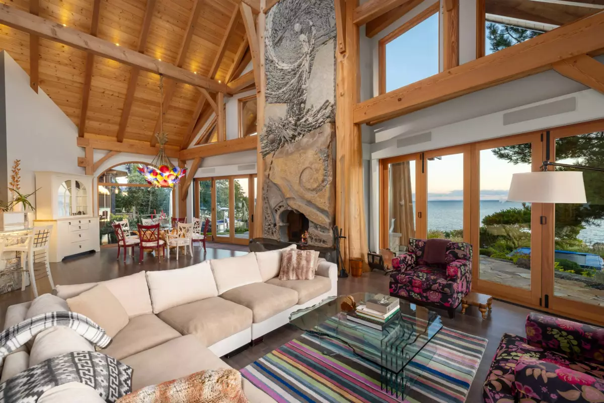 Perched majestically on a magnificent .96 acre waterfront estate, this West Coast timbered masterpiece redefines coastal elegance with its seamless fusion of raw nature and refined craftsmanship. This extraordinary custom built oceanfront residence is a symphony of heavy Douglas fir timbers, their rich grain exposed in soaring, vaulted ceilings that frame unobstructed Pacific vistas providing a wonderful indoor outdoor living experience like no other. The open-concept floor plan provides entertainment size principal rooms. Each of the 5 bedrooms feels like a serene retreat enveloped by the rhythmic pulse of the ocean below. Terraced gardens cascade down the bluff blurring the line between architecture and landscape.