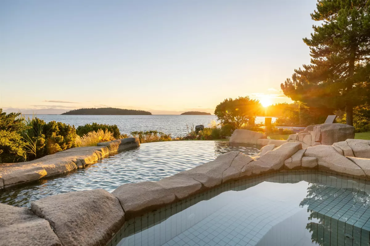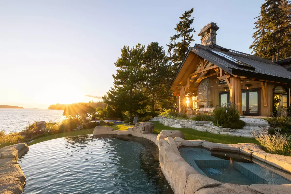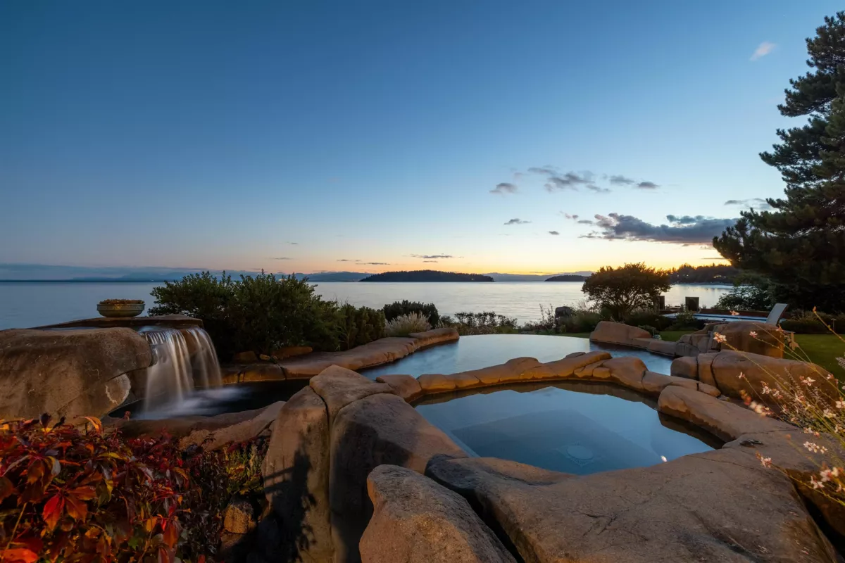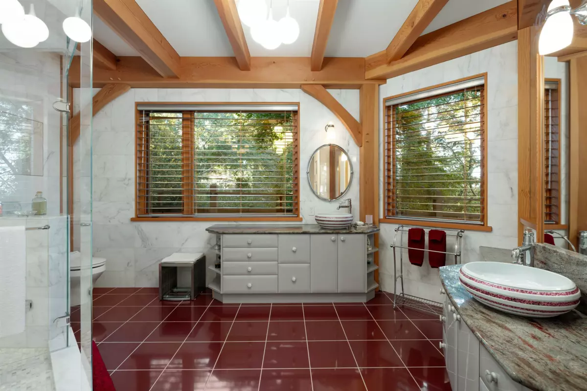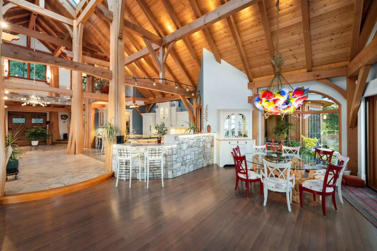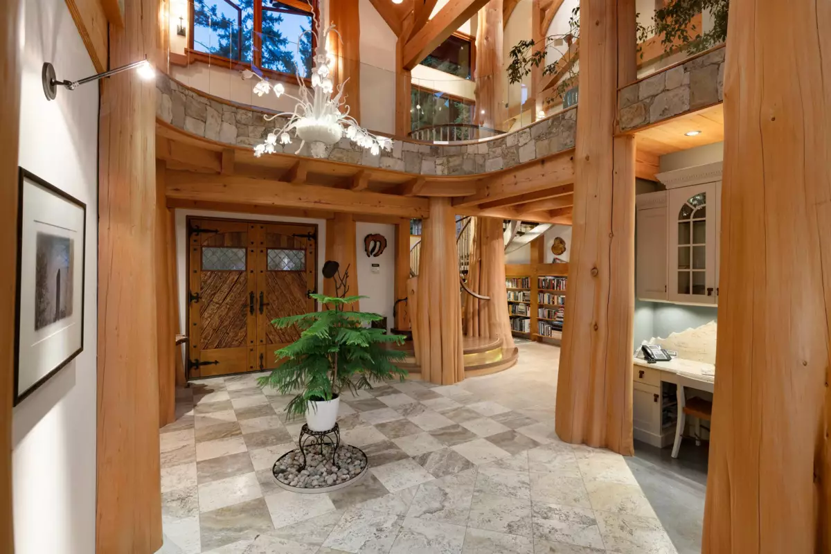 Perched majestically on a magnificent .96 acre waterfront estate, this West Coast timbered masterpiece redefines coastal elegance with its seamless fusion of raw nature and refined craftsmanship. This extraordinary custom built oceanfront residence is a symphony of heavy Douglas fir timbers, their rich grain exposed in soaring, vaulted ceilings that frame unobstructed Pacific vistas providing a wonderful indoor outdoor living experience like no other. The open-concept floor plan provides entertainment size principal rooms. Each of the 5 bedrooms feels like a serene retreat enveloped by the rhythmic pulse of the ocean below. Terraced gardens cascade down the bluff blurring the line between architecture and landscape.