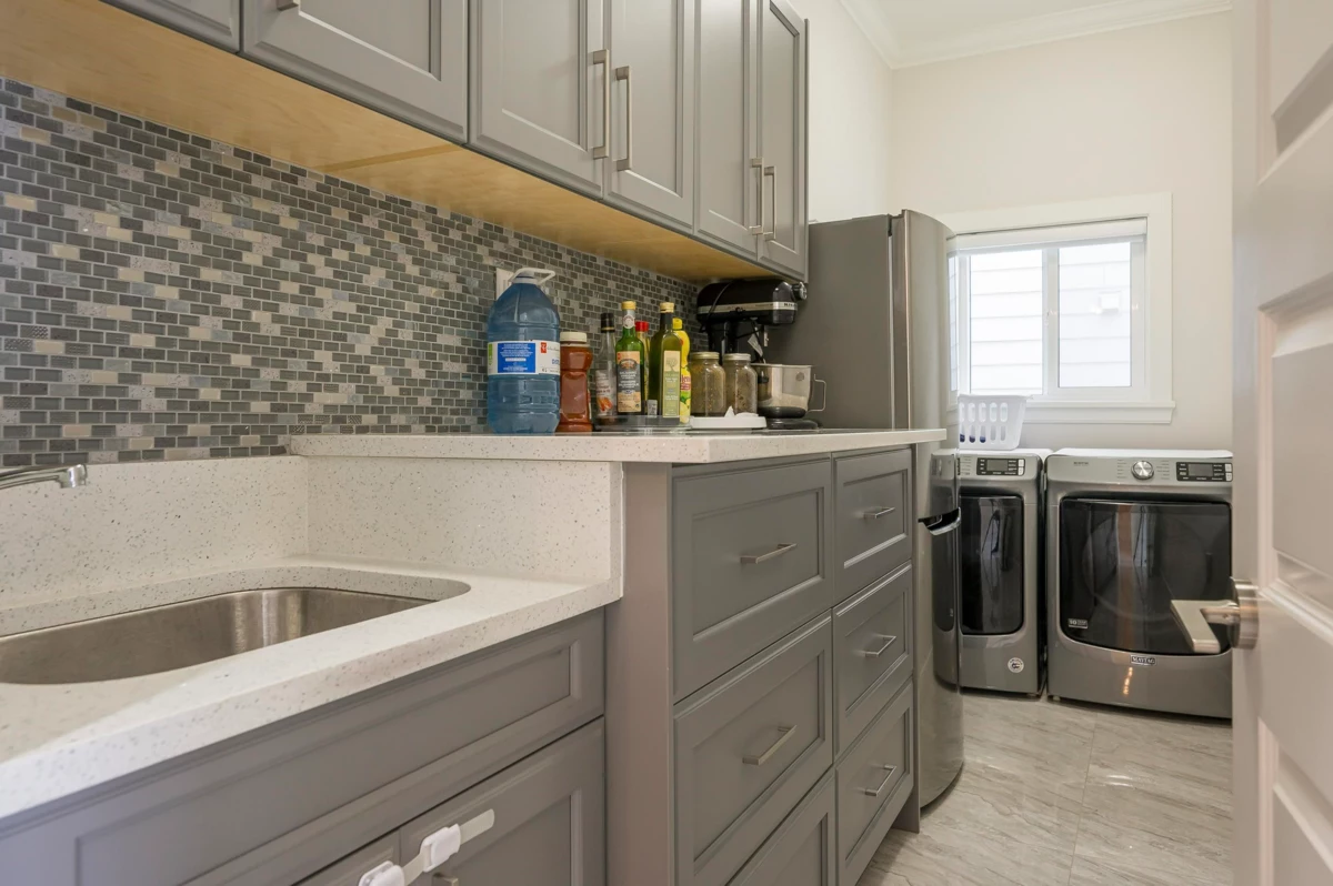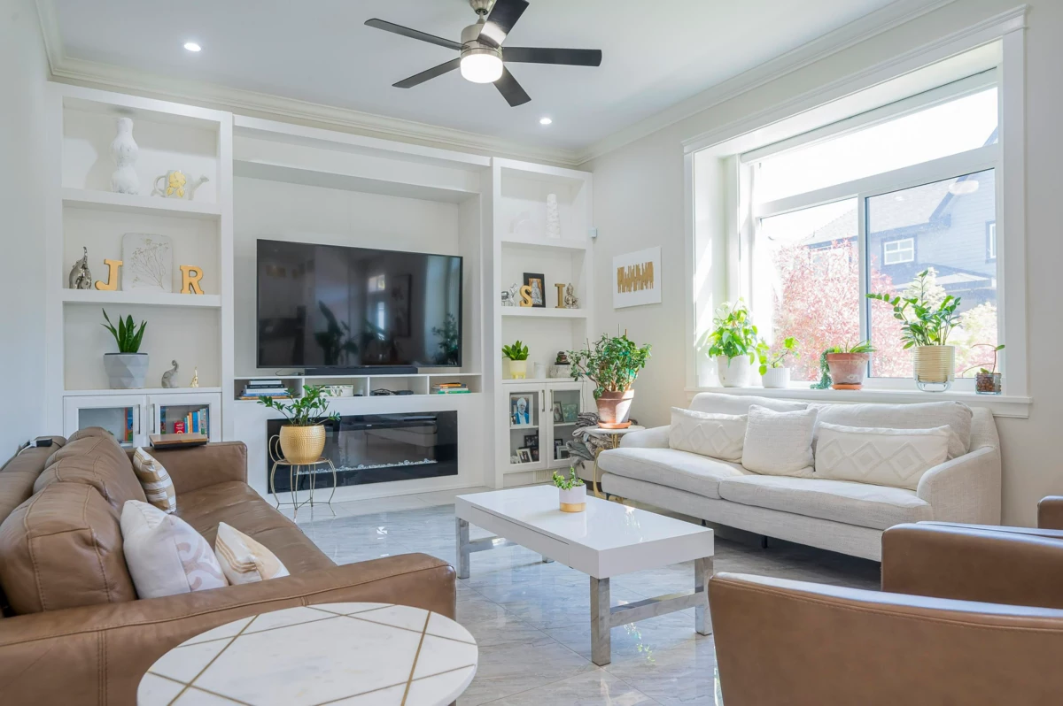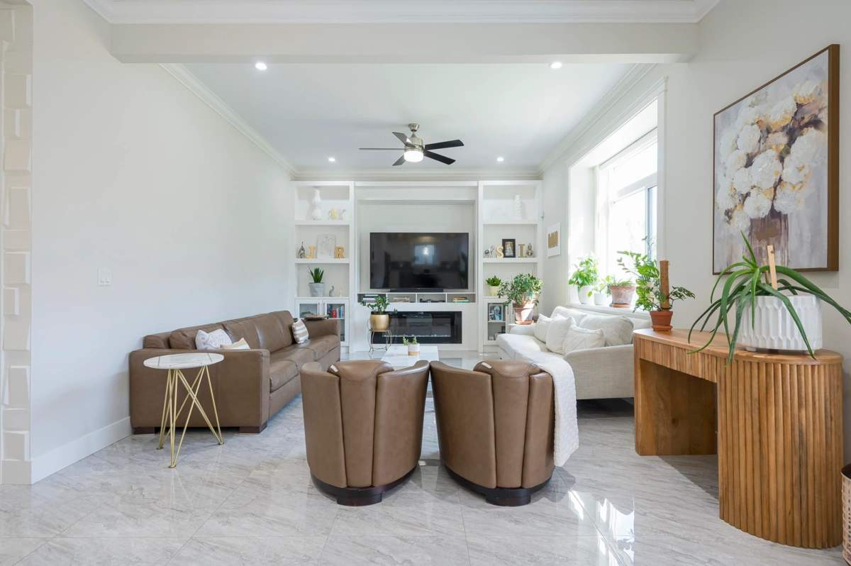 This beautifully kept, high-end home offers 8 spacious bedrooms and 8 bathrooms, with soaring ceilings and luxury finishes throughout. The main floor features a formal living + dining area, central A/C, a chef-inspired kitchen with quartz counters, a full spice kitchen, cozy family room, and a bedroom with ensuite – perfect for guests or in-laws. Upstairs, enjoy a grand primary suite with a spa-like 5-piece ensuite and walk-in closet, plus three more generously sized bedrooms. The fully finished basement offers incredible flexibility with a 2-bedroom legal suite (1.5 baths), a separate 1-bedroom suite, and extra storage – ideal for extended family or mortgage helpers. Located in a prime neighbourhood, this home blends comfort, style, and income potential. An unmissable opportunity!