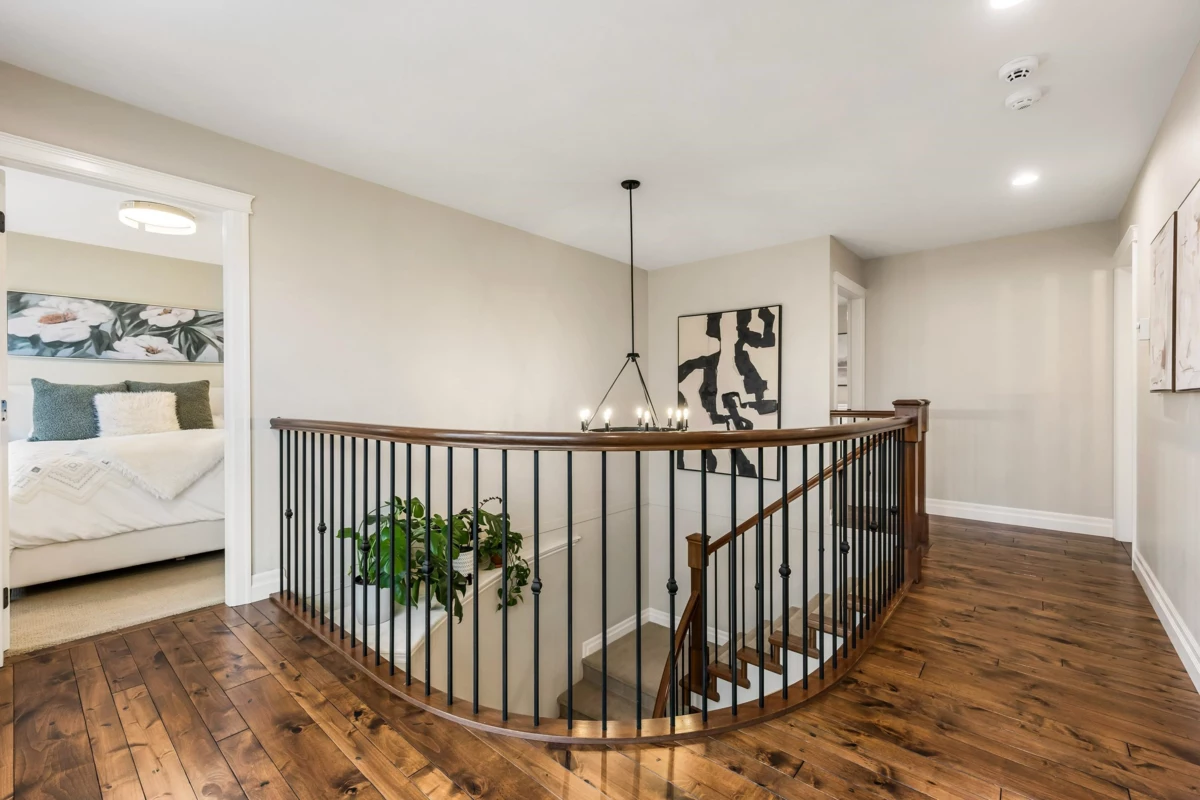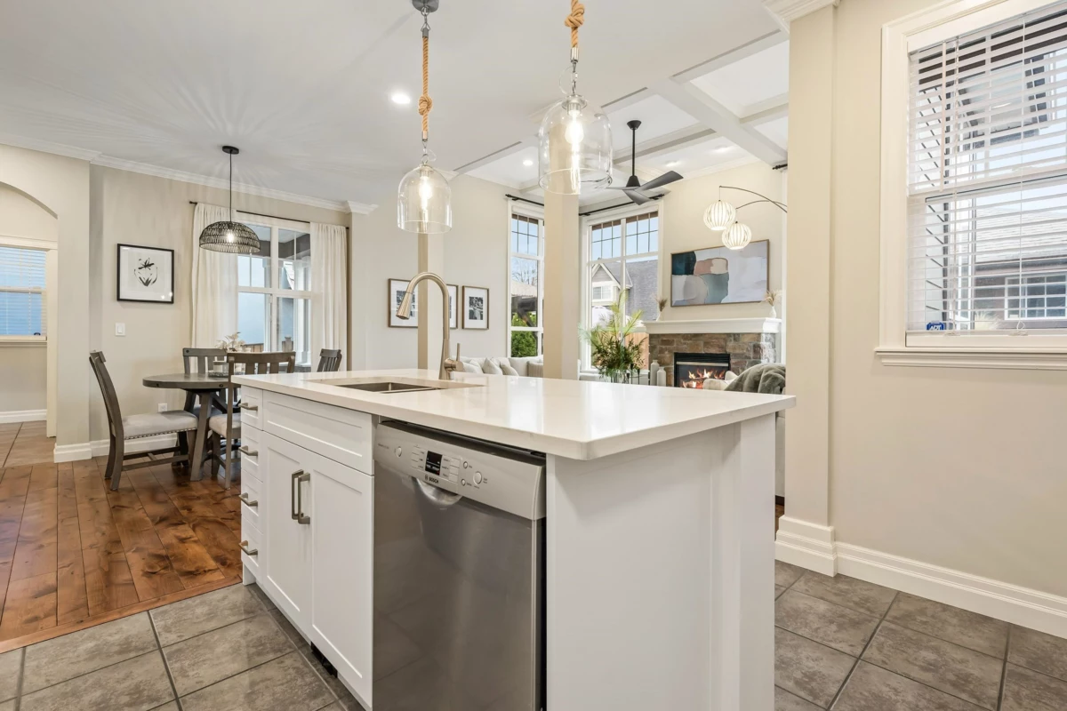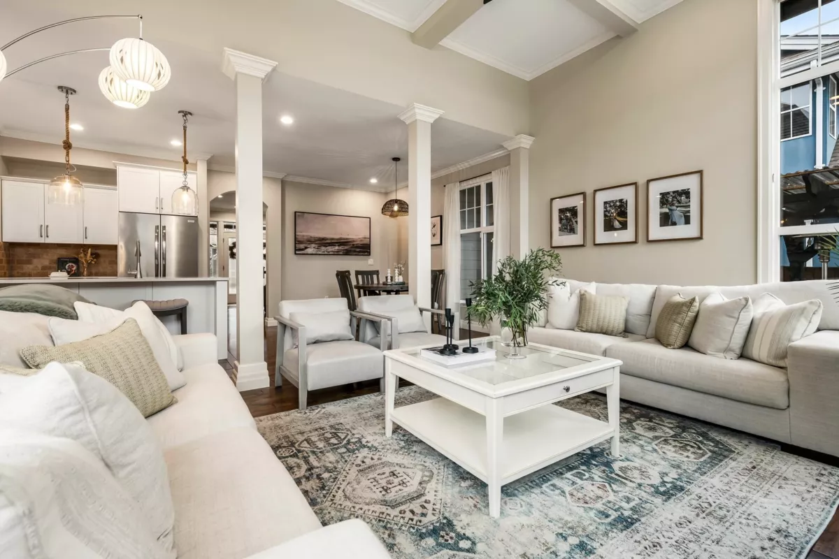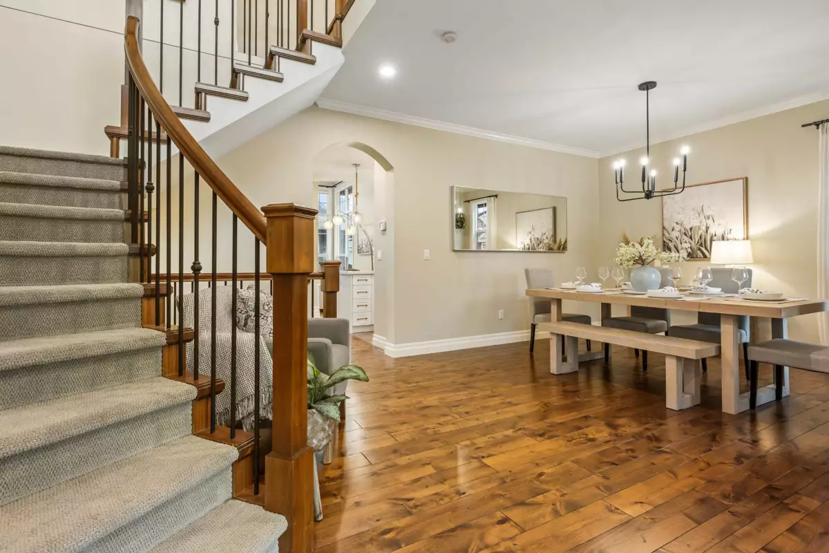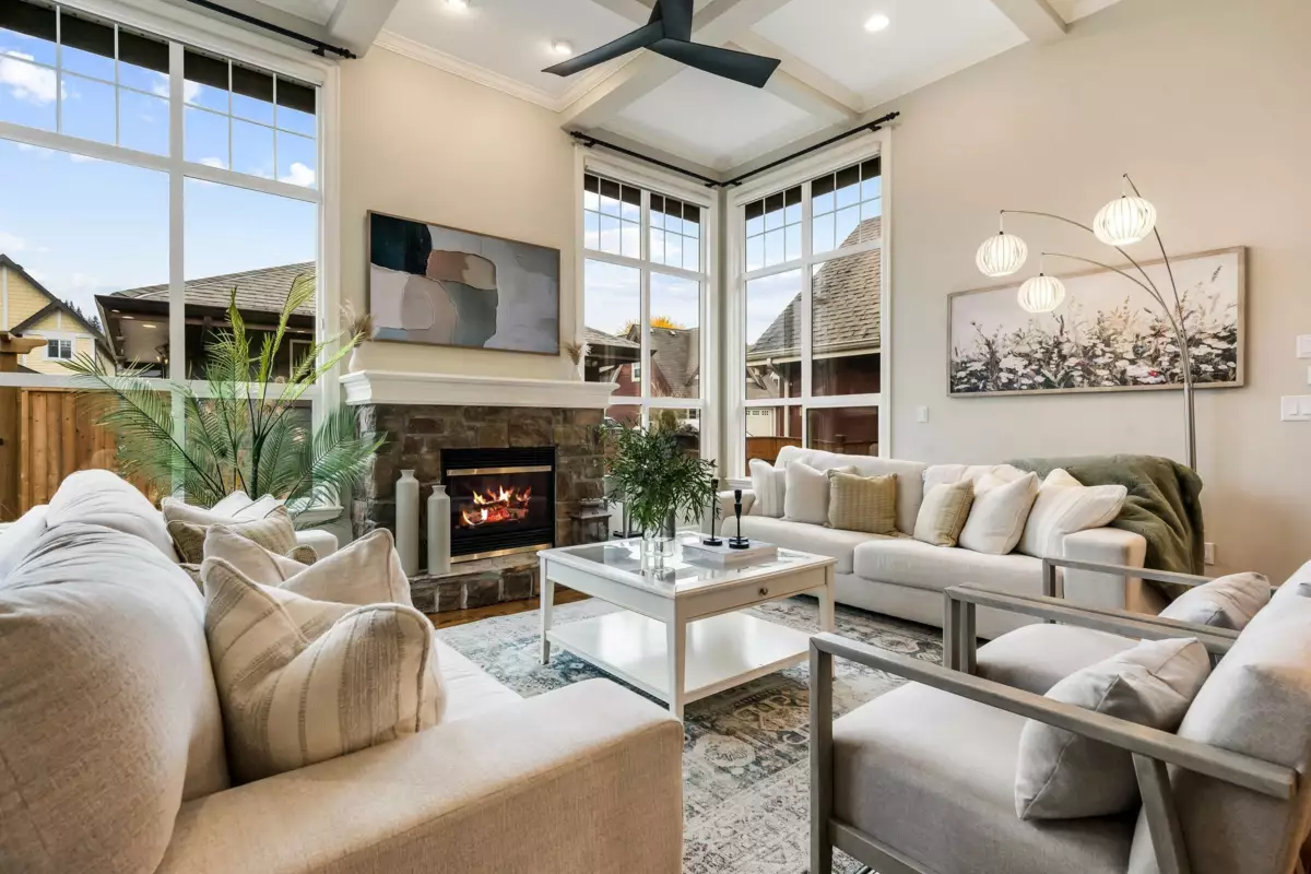 Welcome to this beautiful 6 bed, 5 bath home in desirable Garrison Crossing! Featuring 3,404 sqft of living space, vaulted ceilings & stunning floor-to-ceiling windows that flood the living space with natural light. The main floor includes a bright updated kitchen with SS appliances, a cozy dining area, and a convenient bedroom. Upstairs offers 3 generous bedrooms including a primary with walk-in closet and luxurious ensuite. The renovated 2-bed/2-bath LEGAL suite has a private entrance, in-suite laundry, updated kitchen & proven $3,400/mo Airbnb income (150+ 5-star reviews). Enjoy the private fenced yard with covered pergola, water feature, garden, and custom cedar fencing with removable RV/boat access panels. Beautiful finishes & updates throughout make this home truly turnkey!