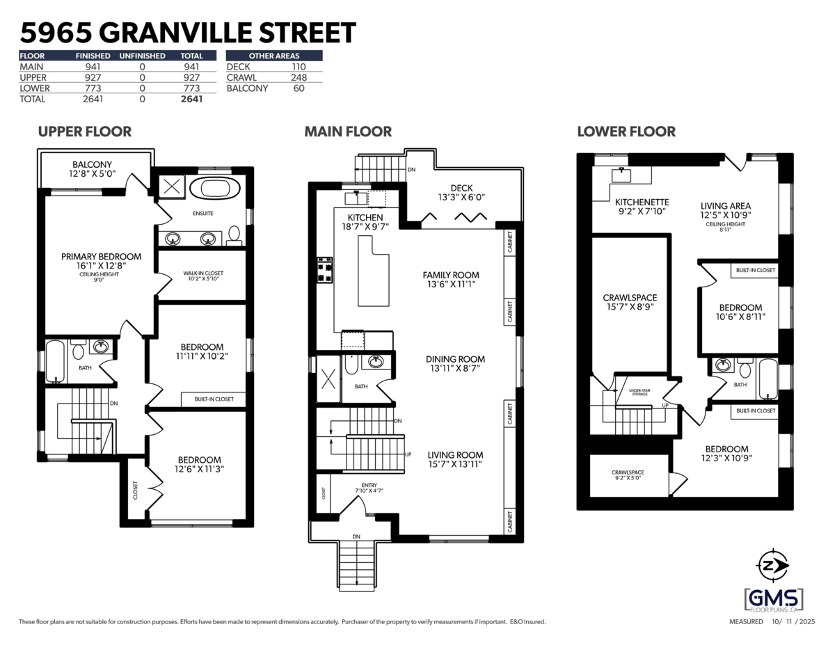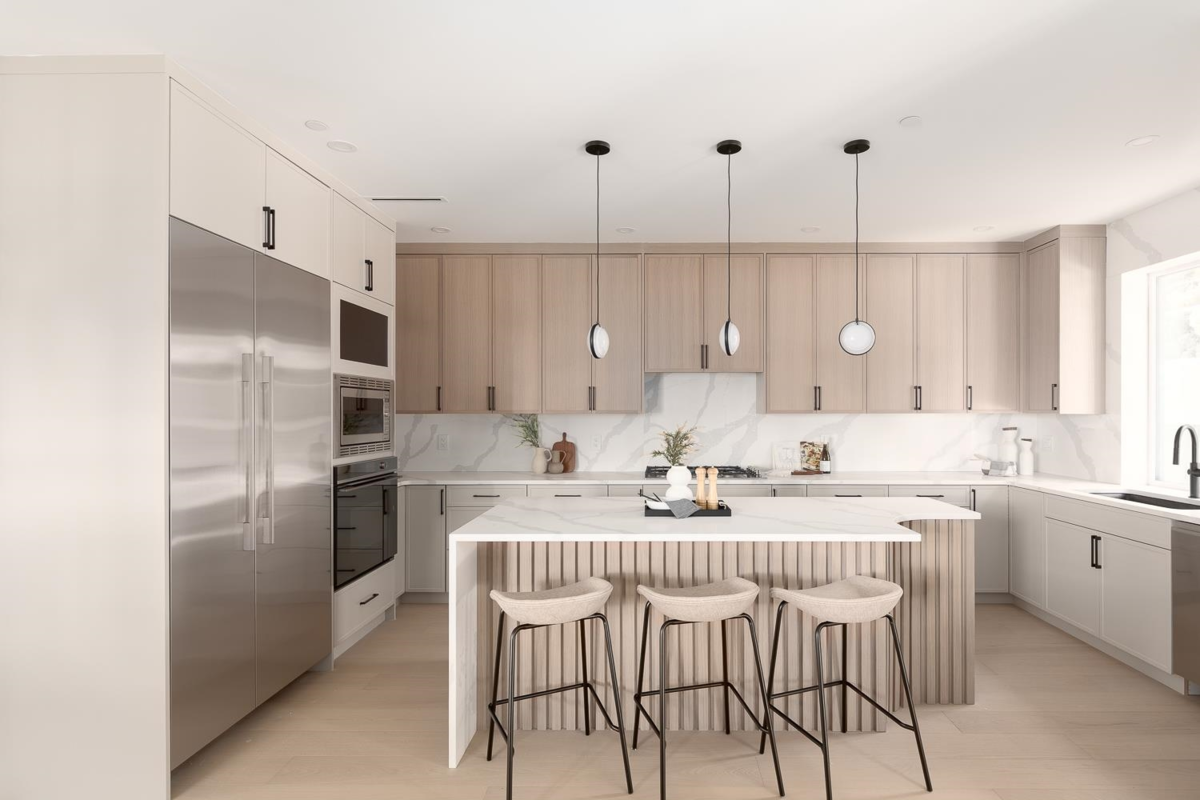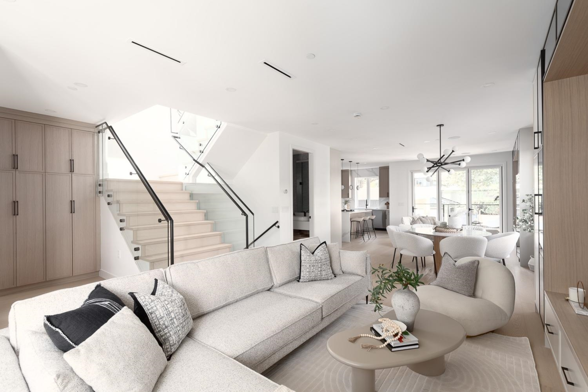 This fully detached carriage home offers over 2,600sf across three spacious levels with no shared walls, providing true single-family living in South Granville. The main floor boasts over 900sf with full-sized living, dining, and family rooms: ideal for entertaining or everyday life. A large kitchen anchors the space with access to the rear yard deck. Upstairs are three large bedrooms, including a massive primary with walk-in closet and a luxe 5-piece ensuite. The lower level is roughed in for a 2-bedroom suite or can be enjoyed as additional living space. Private 1-car garage included. Thoughtful layout and generous proportions make this home perfect for families or those needing room to grow. Radiant heat, A/C and located near top schools, parks, shops, restaurants, and transit.