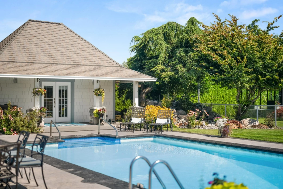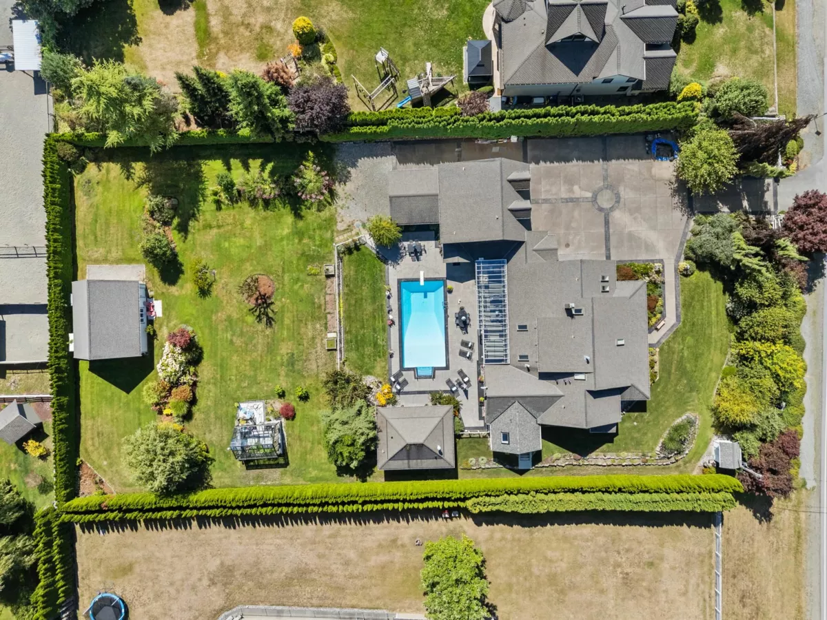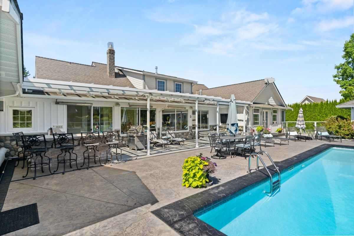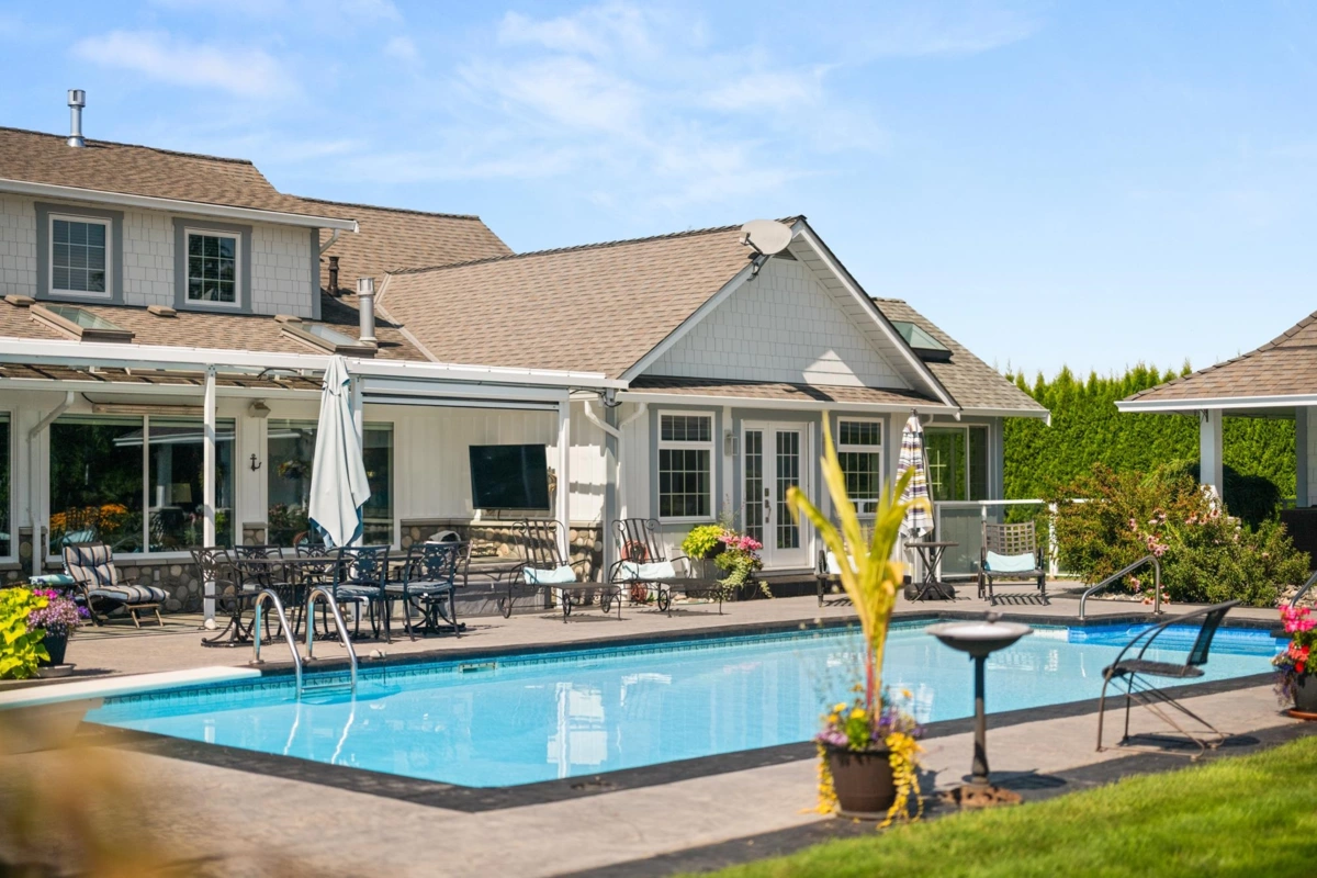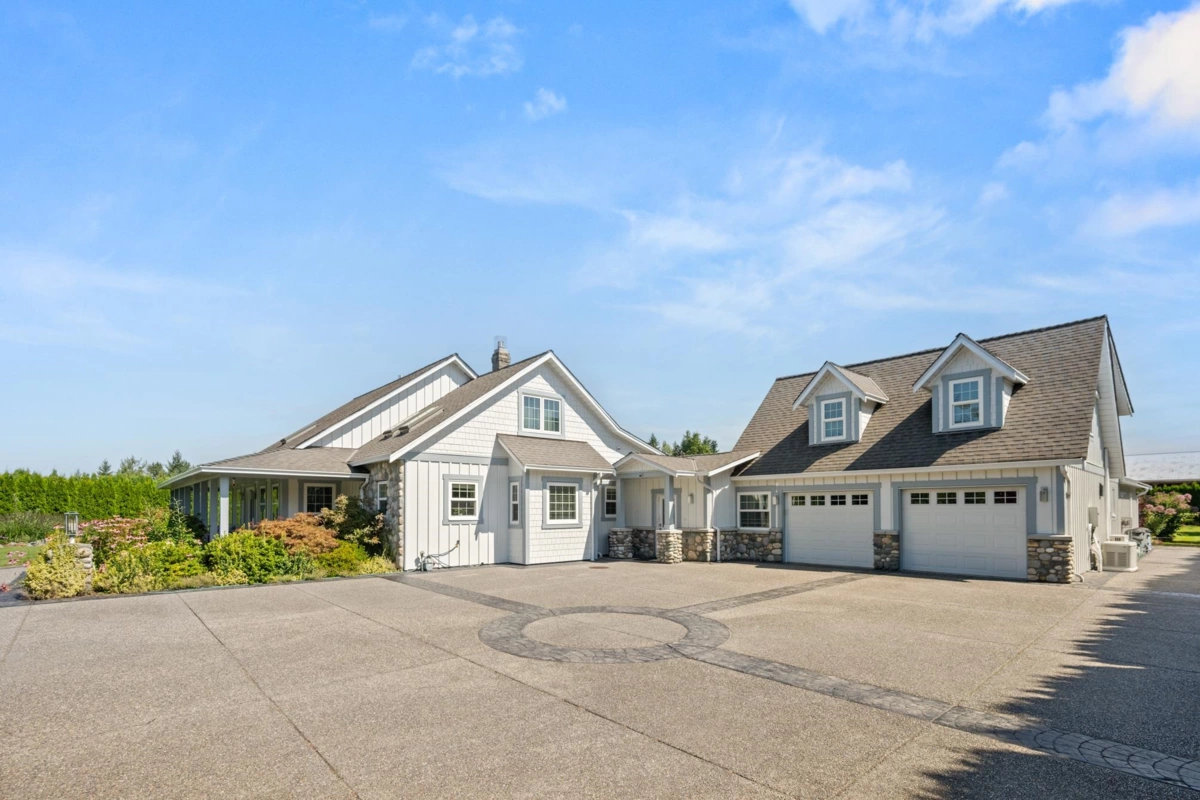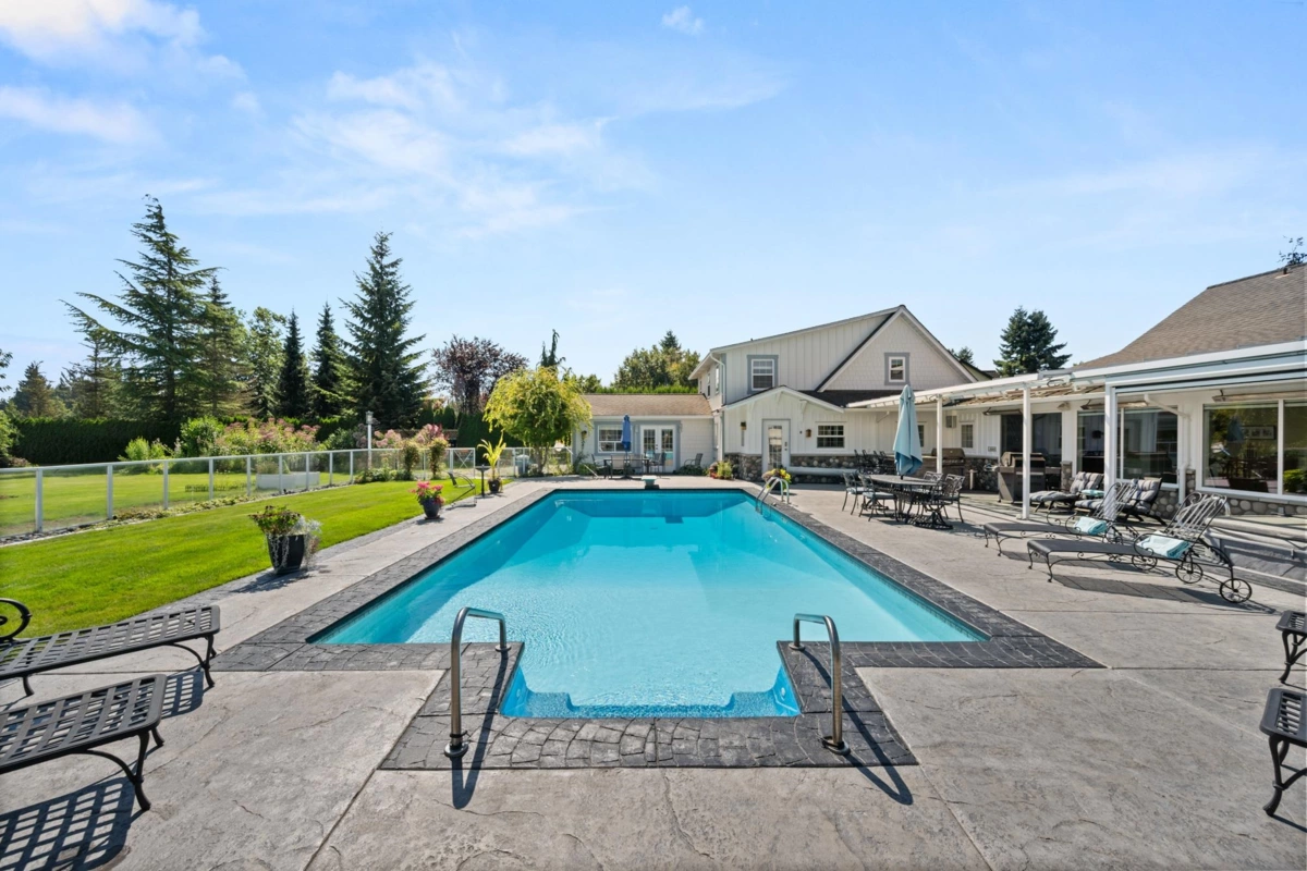 Luxury living in Langley’s sought-after Strawberry Hills! This bright, private 6,026 sq.ft. 4 BED/6BATH custom home sits on a private 1-acre estate designed for seamless indoor/outdoor living. Elegant wainscoting, detailed millwork, and timeless traditional styling create a warm, sophisticated feel. The main-floor primary bedroom offers a spa-like ensuite and walk-in closet, while a beautiful guest suite is ideal for extended family. The backyard is an entertainer’s dream with a covered outdoor kitchen, cabana with bathroom & gym, pool, and hot tub — your own resort at home. A detached workshop/garage with loft and a fantastic custom-built greenhouse add versatility for hobbies and lifestyle. A rare combination of craftsmanship, comfort, and outdoor living in an irreplaceable setting.