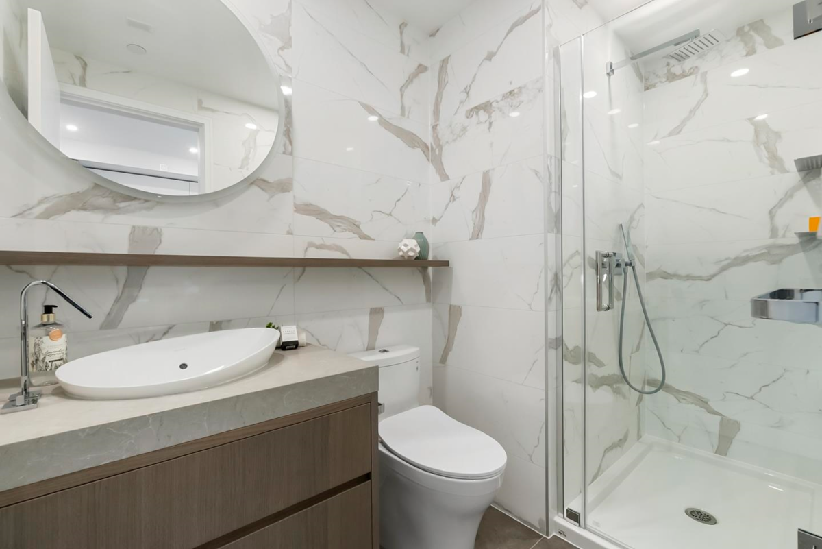 Experience luxury coastal living at Monaco by Solterra in Uptown White Rock! This brand new air conditioned 1 bed+den, 2 bath home offers 725 sq ft of upscale design just 10 minutes away from the beach. Features include engineered hardwood, luxury Thermador appliances, stone counters & backsplash, beverage cooler, solarium, & a den perfect for guests or office space. The spa-like ensuite boasts a soaker tub, walk-in shower, heated floor, automated toilet seat cover & double vanity. Monaco offers rooftop garden, putting green, kids play area, BBQ lounge, dog run, fitness studio, pet spa, and more—all in the heart of uptown White Rock, steps to shops, dining, & roof top ocean views. You will appreciate the details that Soltara had put into this masterpiece and this could be your dream home!