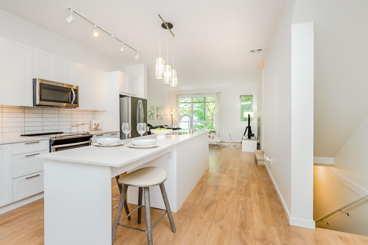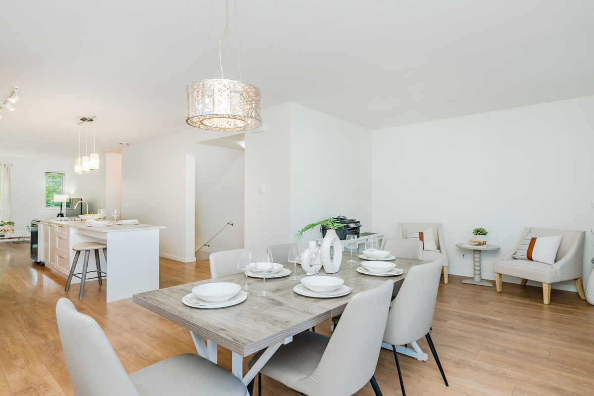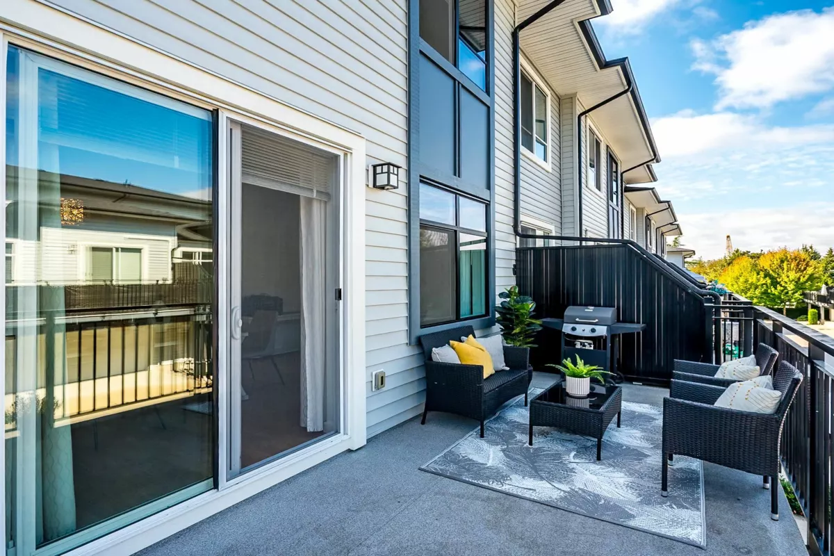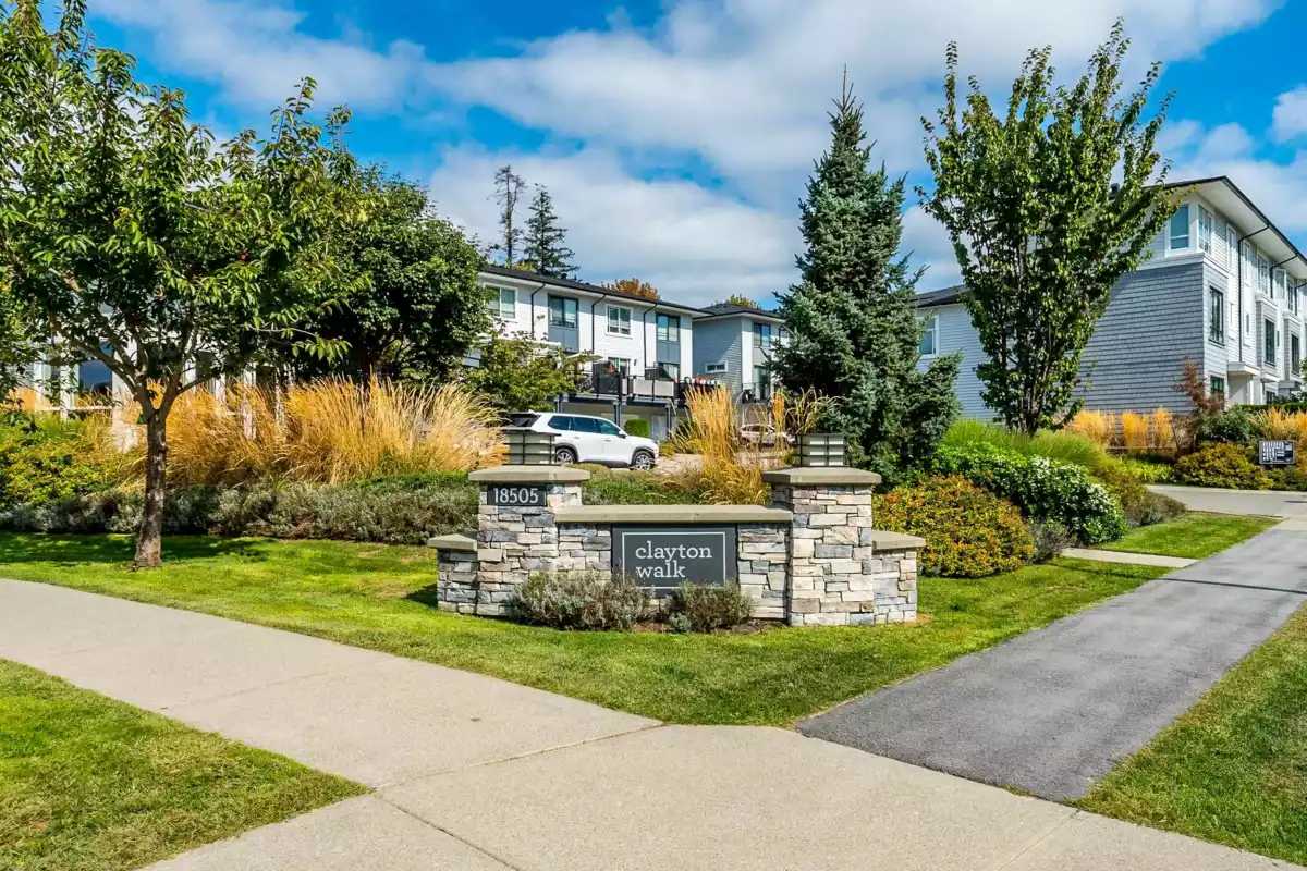 "CLAYTON WALK" by "ANTHEM" Prime location in Cloverdale, steps from shopping center, schools, recreation, services, easy access to Fraser Hwy and Hwy 15 & future SKYTRAIN station. This END/CORNER unit has EVERYTHING you are looking for: Functional layout, specious floor plan w/ NO waste of space; ground level bdrm w/ full bath best served as guest room or office; main living area incl: great-room design, high-ceiling, huge windows, gourmet kitchen connects living room, open den & dining room w/ access to huge balcony, best for family gathering + summer BBQ; Primary bdrm w/ huge walk-in closet + 2 bdrms upstairs w/ easy access to laundry. Freshly paint through out; double garage; best for small/growing families. Don't miss your next dream home!