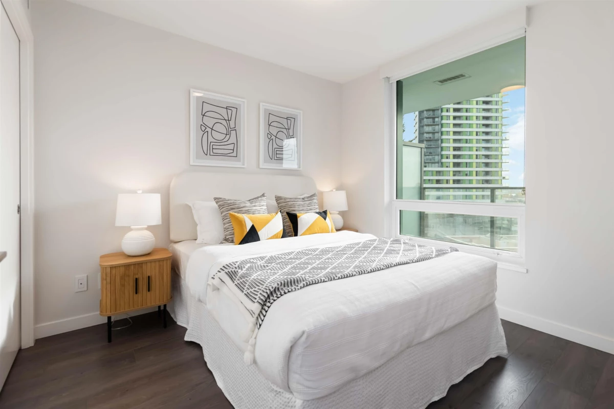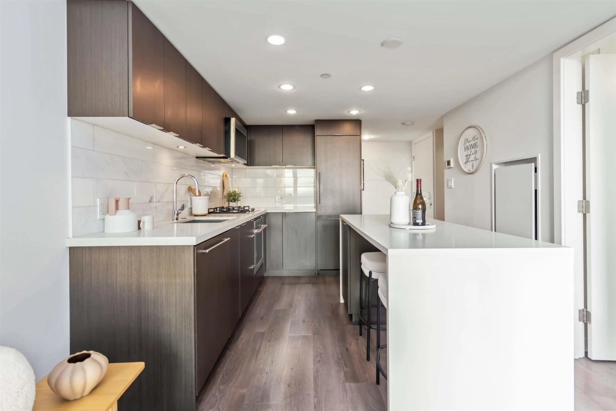 Step into refined urban living in this elegantly designed 1bed residence at the coveted Cambie & Marine district. This sophisticated home offers a bright southeast exposure with expansive city, mountain, and ocean views, complemented by an open-concept layout, full-size premium kitchen appliances, and a spacious primary bedroom complete with walk-in closet. This concrete building provides elevated comfort and security with centralized AC, concierge service, fitness centre, and landscaped garden amenities. Perfectly positioned just steps to the SkyTrain, shops, restaurants, T&T, and everyday conveniences. School catchment: Sir Wilfrid Laurier Elementary and Sir Winston Churchill Secondary. OPEN HOUSE Sat Nov 29th 1:30-4pm | Sun Nov 30th 2-4pm
