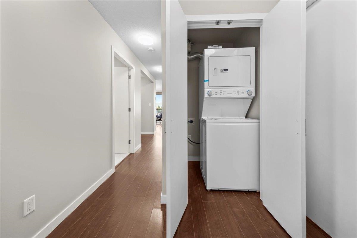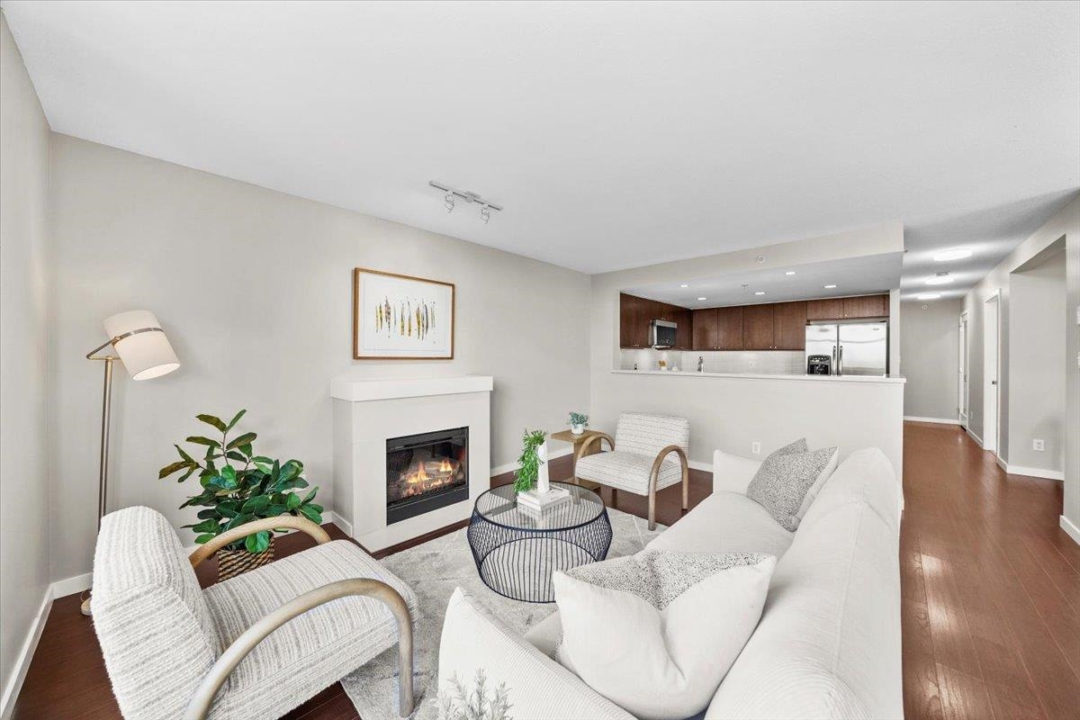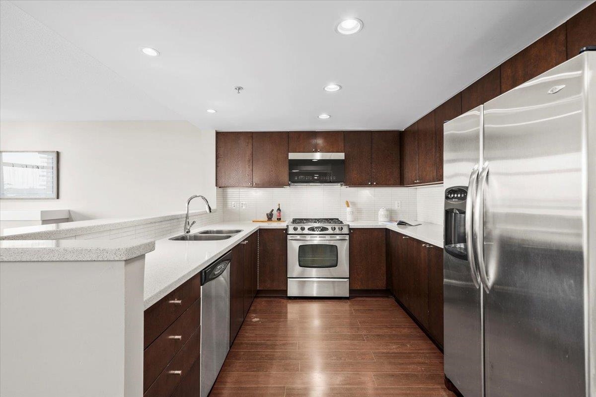 Welcome to Prado by Appia Developments. This bright corner unit offers unobstructed mountain views and highly functional layout. 2 bedrooms and open den, 2 bathrooms, and 2 parking (tandem) and storage locker. Freshly updated with new interior paint and new bedroom carpeting. The kitchen features Caesarstone countertops, stainless steel appliances, and laminate wood floors throughout the main living areas. Amenities include concierge, guest suites, access to Electric Vehicle charging stations exercise center, sauna, steam room, and party room. Unbeatable convenience - across from Lansdowne Center and steps to Canada Line (Lansdowne Station); groceries, restaurants, and recreation at your doorstep. Quality concrete high-rise in a super central location - move in ready and easy to show.