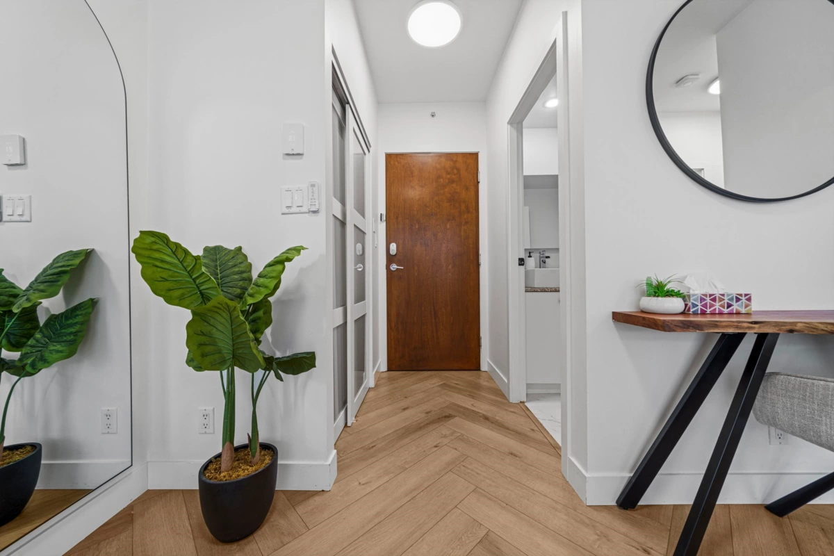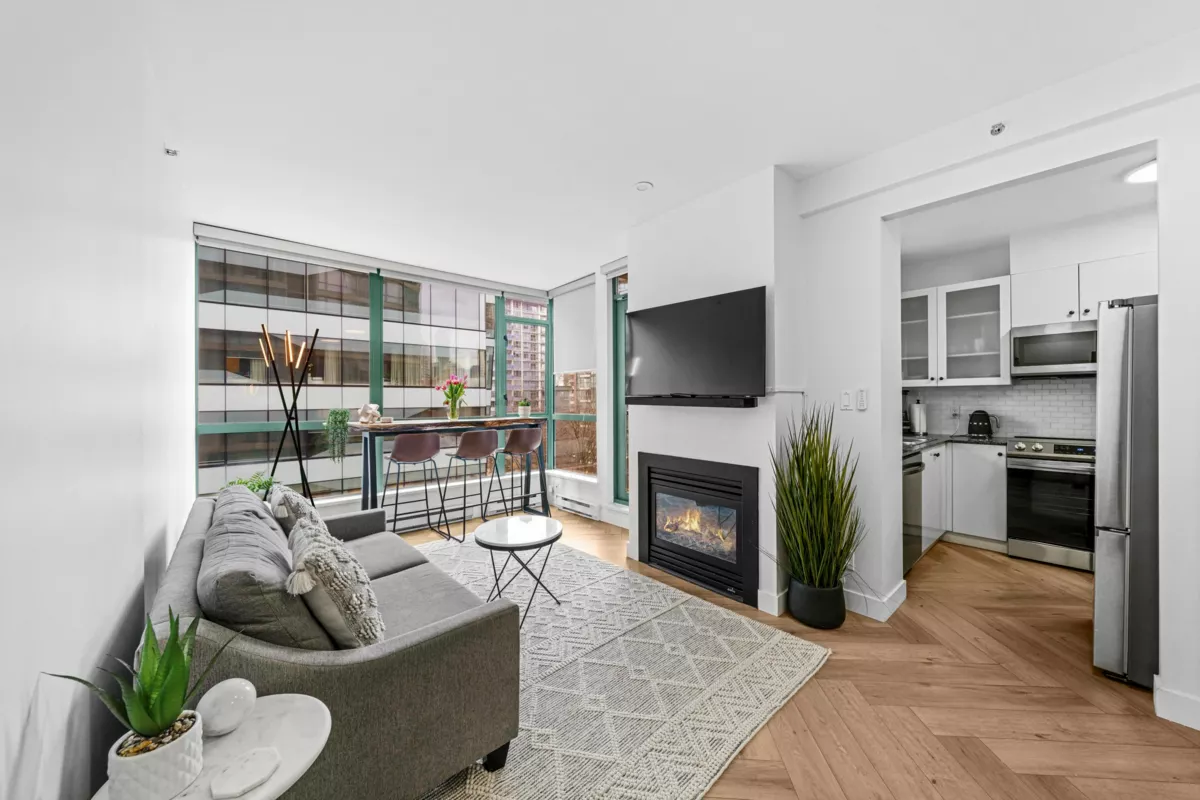 Absolutely gorgeous 1-Bedroom + Den home in the heart of Vancouver, boasting over $120,000 in premium renovations! This meticulously redesigned space features elegant herringbone flooring, a fully renovated kitchen & bathroom, smart lighting, power window coverings, and a cozy fireplace. High-end finishes create a chic yet inviting ambiance, perfect for a downtown professional. Enjoy the spacious floor plan of this well-maintained early 2000s building, offering top-tier amenities: steam room, sauna, gym, yoga studio & lounge. Steps from Davie Village, Yaletown, Sunset Beach & the Seawall. Pets allowed. Priced to reflect extensive upgrades & quality craftsmanship. Open house By appointment, Nov 30, 3-4pm