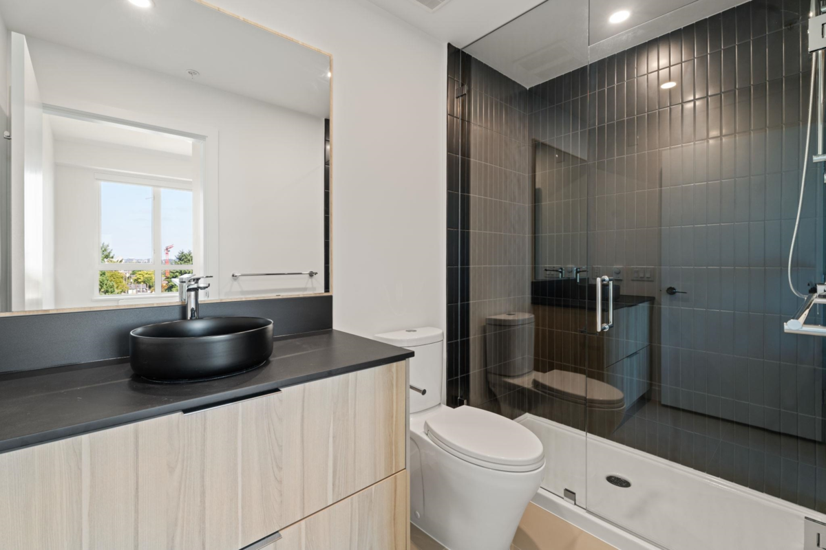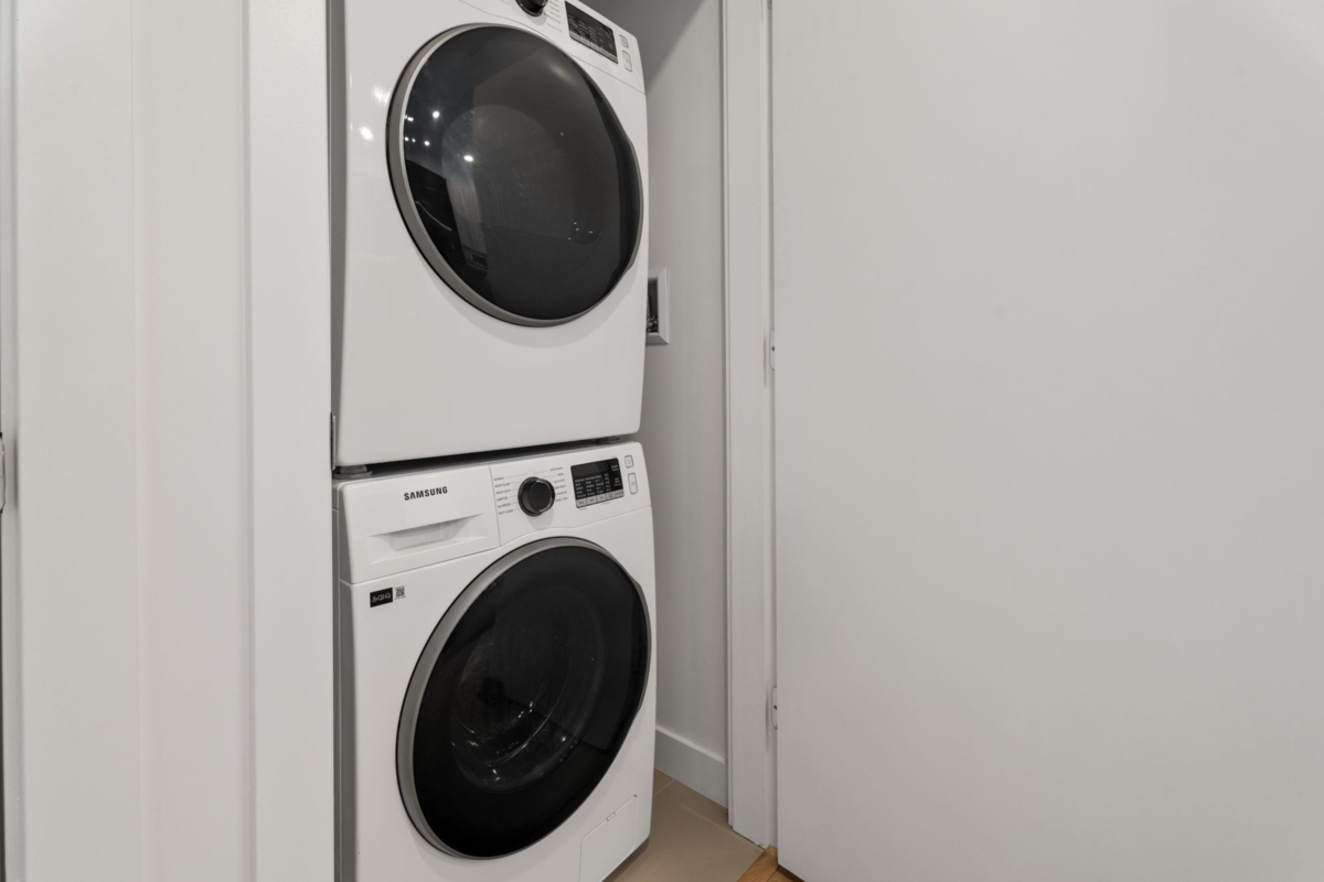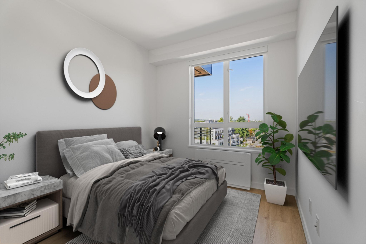 Penthouse-level 2 Bed + Flex featuring over 900 sq ft of refined interior space and an impressive nearly 500 sq ft private rooftop patio. Designed with both elegance and function in mind, this home uniquely offers premium upgrades, including an integrated appliance package, custom closets, smart lock entry, heated bathroom floors, EV charging, and PTAC cooling systems in both bedrooms. Expansive windows, and an open-concept layout create a bright, airy atmosphere that flows seamlessly into your private rooftop retreat—perfect for entertaining or quiet evenings. Enjoy thoughtful amenities including a co-working lounge, fitness centre, party room, and rooftop terrace. All this in a vibrant, connected neighbourhood just steps from Commercial Drive, Trout Lake, SkyTrain, and more.