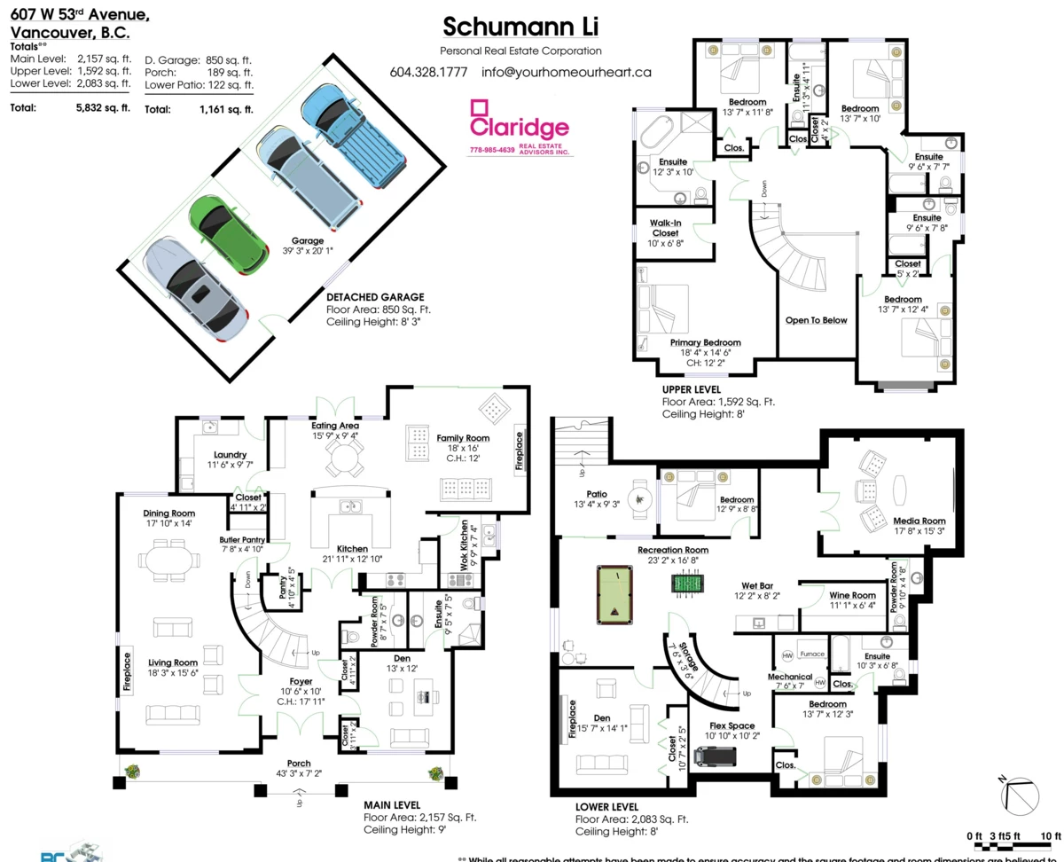 Gorgeous European style big home (close to 6000 SF) built by a European builder on a big piece of land (12,082 SF) in a quiet cul-de-sac. Convenient location near W49 & Cambie Skytrain. Luxurious 3-level home with 6 ensuite-bedrooms, a flex room and den. 8 bathrooms, regular and wok kitchens. Grand entrance with 20 ft high ceiling, expensive rainscotting panels, classic brick wall fireplace in family room with vaulted ceiling. Ensuite-bedroom on main floor - ideal for seniors. AIR COND. Full basement with theatre room, rec room, wet bar and wine room for entertainment plus an ensuite-bedroom, den with a gas fireplace and flex room. Huge backyard and bonus of a 4-CAR GARAGE. 10-15 mins walking distance to skytrain, buses and schools. Jameson Elementary / Churchill Secondary school catchment