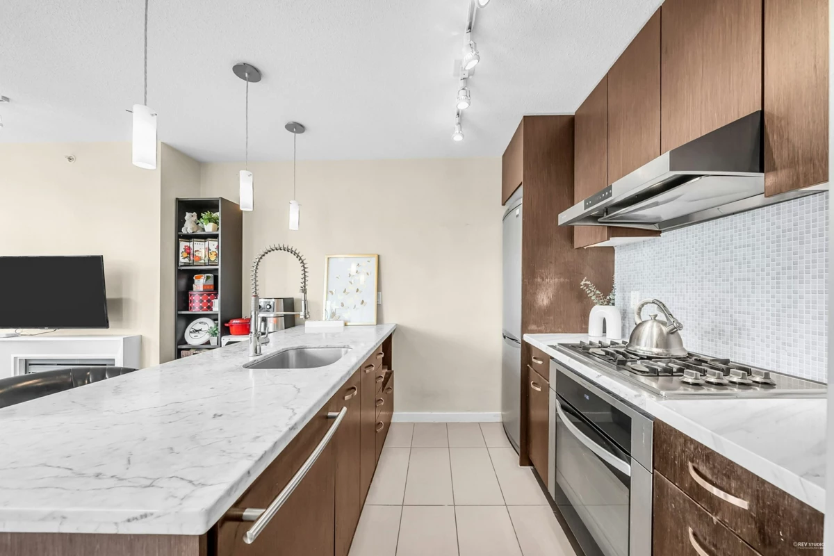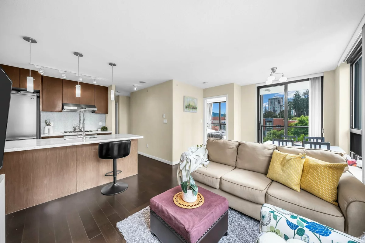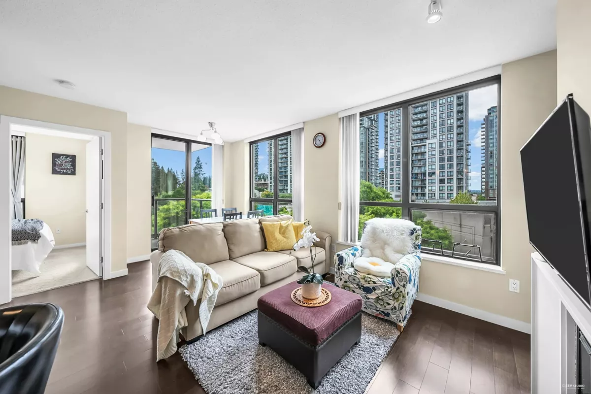 Welcome to EDGEMONT by BOSA – a luxurious high-rise in the heart of Coquitlam! This bright and spacious 781 sqft southeast-facing 2 bedroom, 1 bathroom corner unit features hardwood flooring in the living/dining area, a functional open-concept layout, granite countertops, gas cooktop with electric oven, stainless steel appliances, and a built-in desk working station perfect for a home office. Enjoy the covered balcony with green views and access to top-tier amenities including a fully equipped gym and a lounge with full kitchen. Just steps to Lafarge Lake, Coquitlam Centre, Douglas College, Pinetree Secondary, Aquatic Centre, Glen Pine Pavilion, library, SkyTrain, parks, and more. 1 parking & 1 locker.