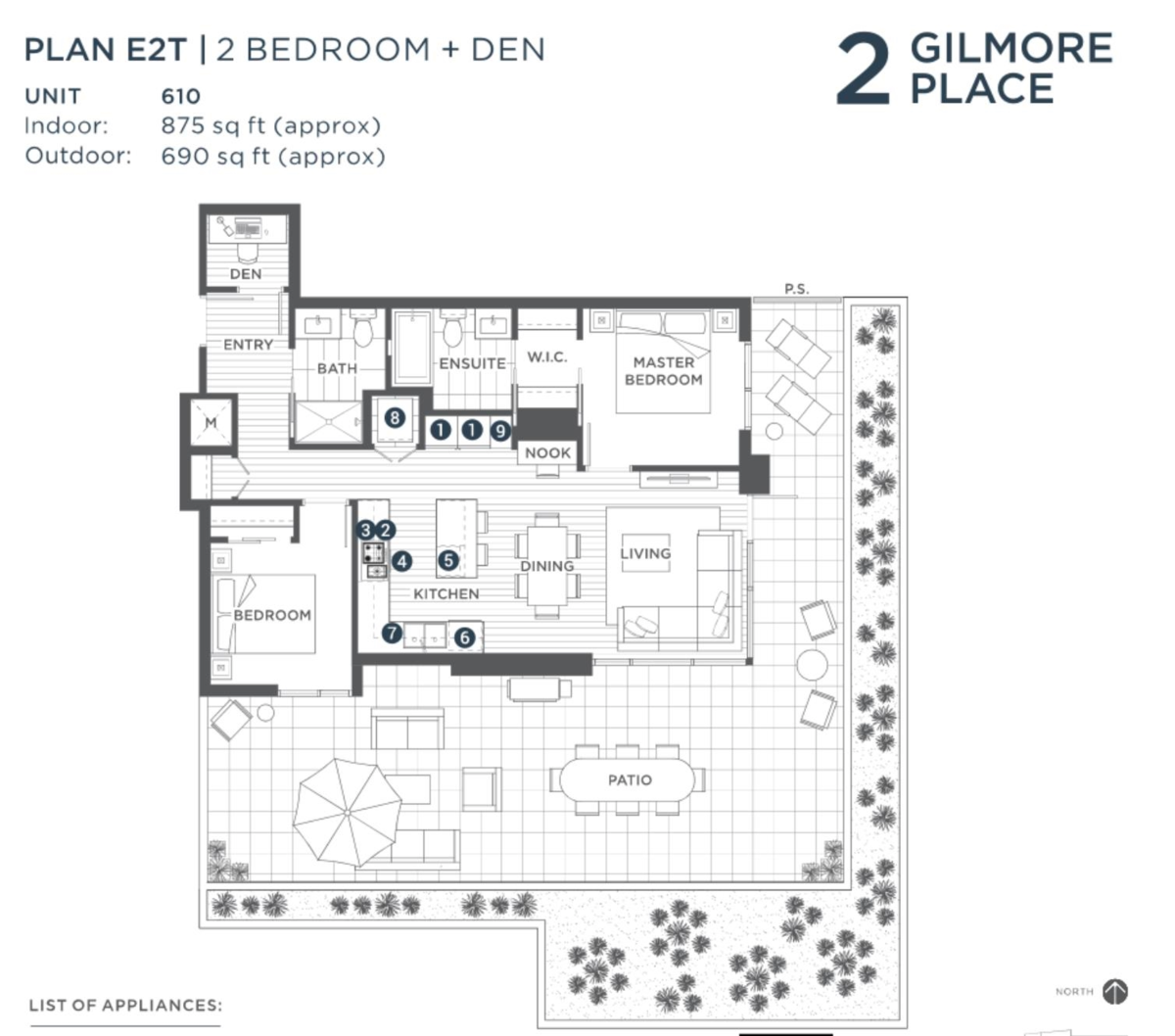 NO GST for a BRAND-NEW LIKE HOME. Resort-Like High-End amenities and the Tallest Tower in Vancouver [64 Storey] of Onni's Master Community in the Brentwood Burnaby. This home features 2 bedroom + Den , 2 Full bath with an interior space of 875 Sq.ft with massive bonus patio space of 690 SQ.FT! that will last unlike other development nearby. The home boasts many high-end features a gourmet kitchen, and full-height porcelain backsplash, a Premium Built-In appliance package. Despite its proximity to all shops and transit, which are connected to the building. Book your tour NOW!