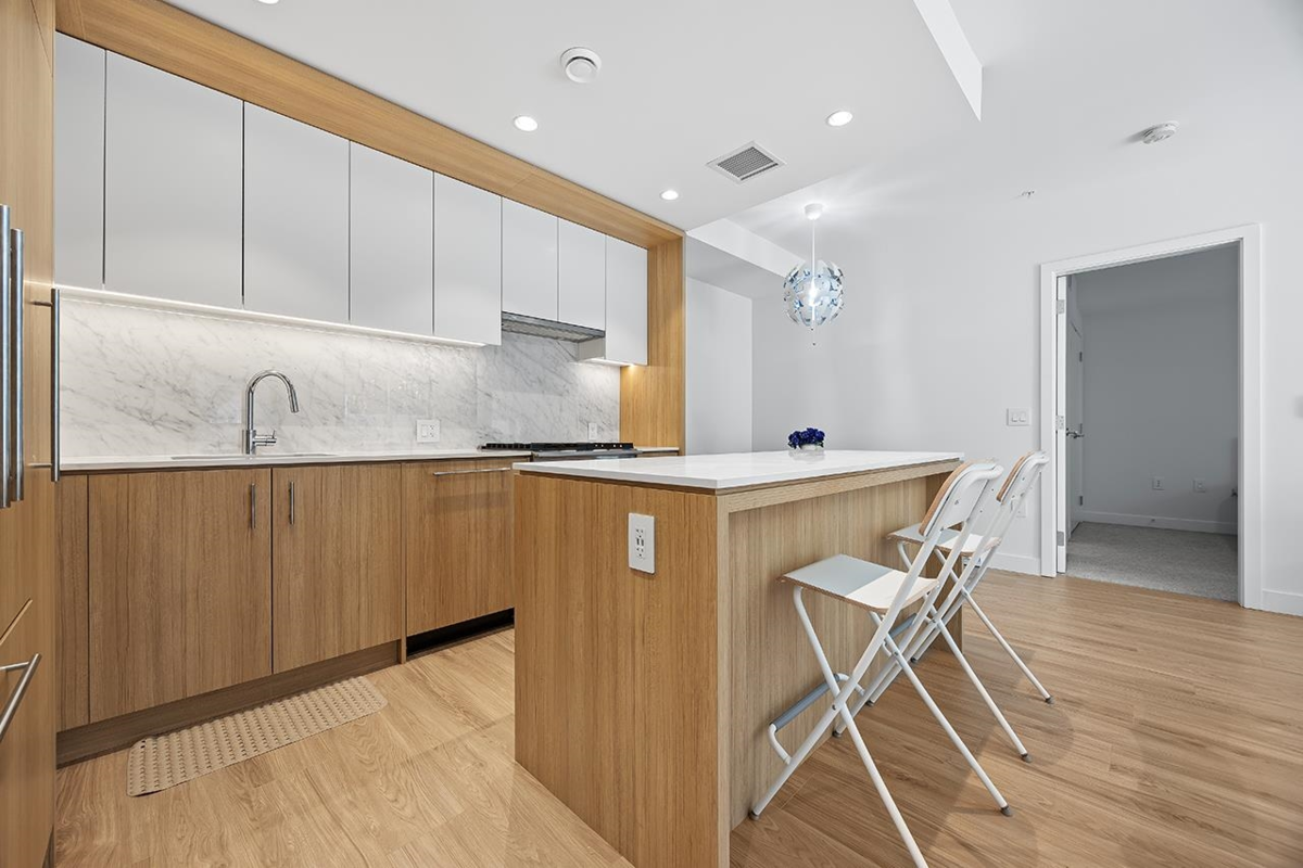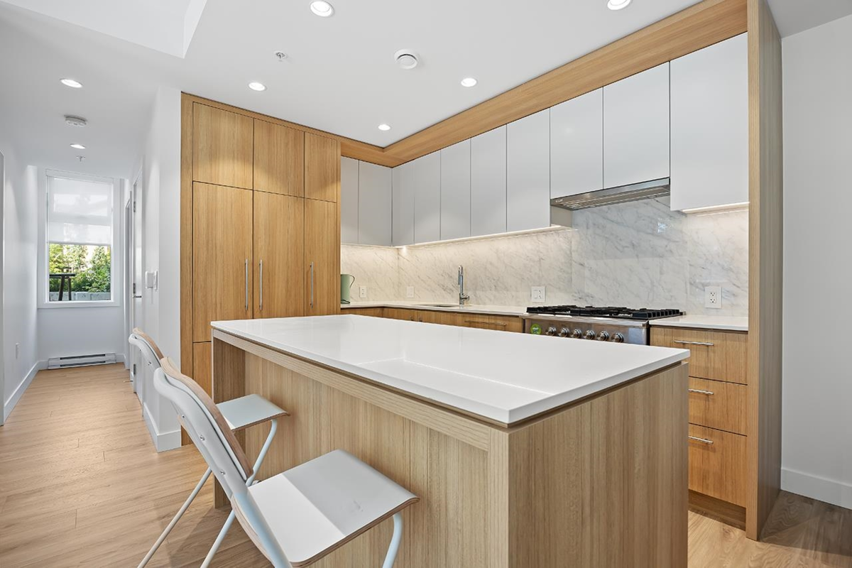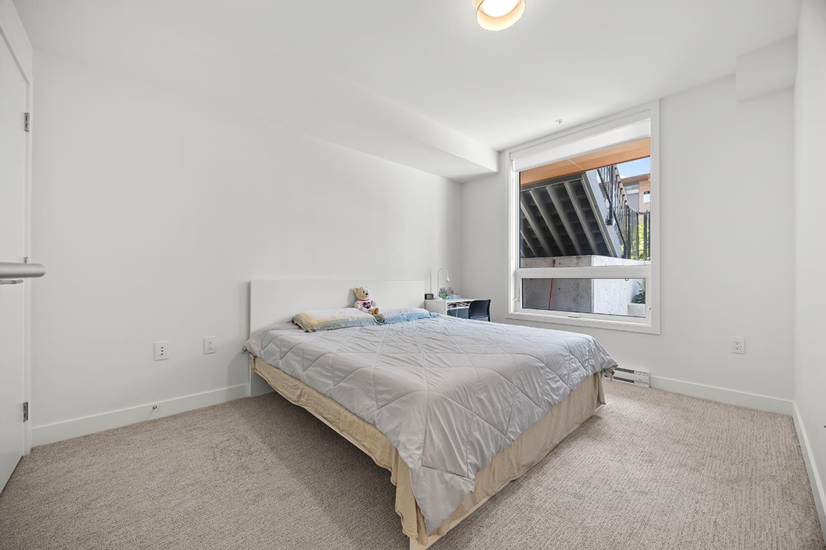 This 902 SF one-level 2-bedroom, 2-bath corner unit offers exceptional comfort and functionality. Featuring 9’ ceilings, a large double patio with flower beds, and a thoughtfully designed functional layout for added privacy. The modern open-concept kitchen includes soft-close cabinetry, quartz countertops, and premium Fisher & Paykel integrated appliances fridge, freezer, dishwasher and a gas cooktop. Bathrooms feature heated floors, while the primary ensuite offers a double vanity and walk-in shower. Oversized laundry room. Wheelchair-friendly access via ramp with handrails. 1 EV parking stall & 1 storage locker. Located near Metrotown, Royal Oak SkyTrain, schools, shops, restaurants, and park. Residents enjoy access to a fitness center, indoor/outdoor party lounge, and playground.