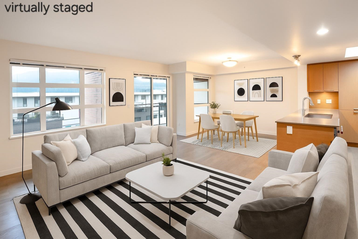 The Station by Aragon in prime Port Moody! Stylish north-facing 2 bed, 2 bath unit with stunning water & mountain views of Burrard Inlet. Features engineered hardwood in hallway, living & dining areas, plus an open-concept gourmet kitchen with quartz counters, stainless steel GE appliances, gas stove, Kohler fixtures & skylight for natural light. Includes full-size front-load washer/dryer, balcony, 1 parking stall and storage locker. Building has Geothermal A/C & heating plus fitness center! Just steps to Rocky Point Park, Evergreen Line, West Coast Express, breweries, shops & restaurants. A must see! https://youtu.be/0m4gWugnRNE?si=JA3cy6kYdz83Whs5 Open House Sunday, November 30 from 2-4pm