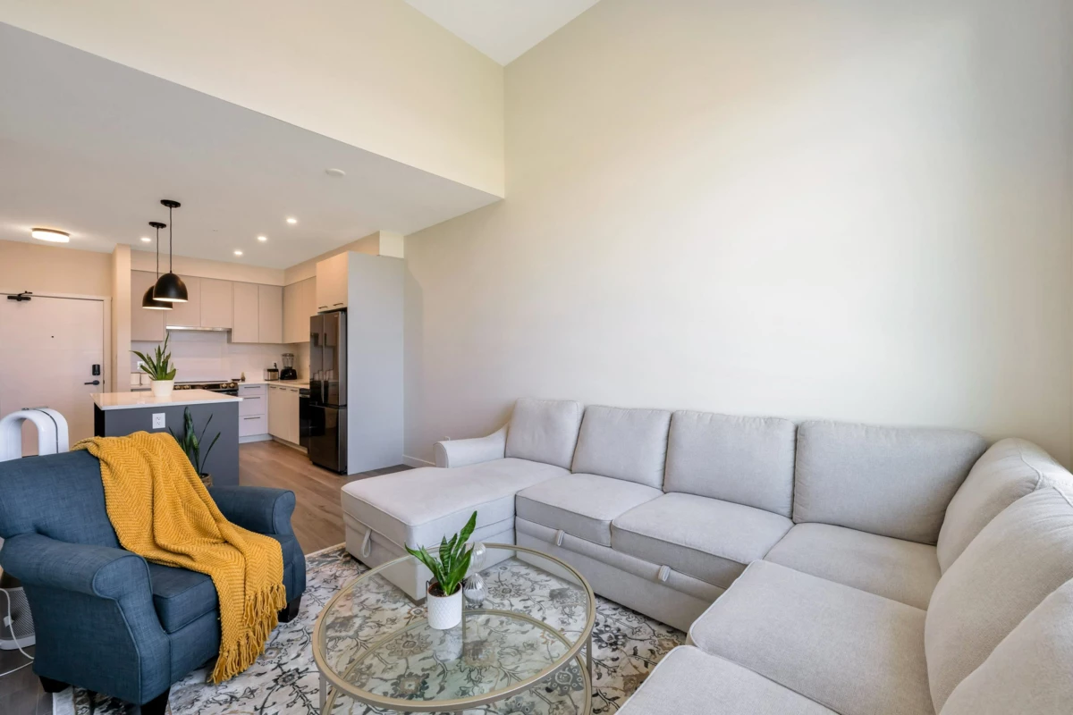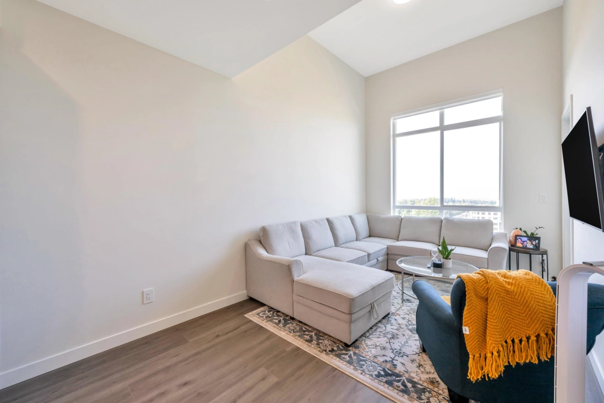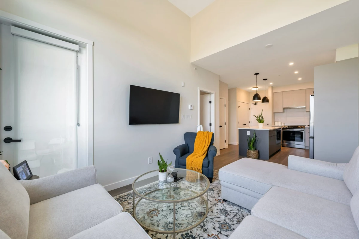 Move in today. 2 CARS? Start the carrrr! Welcome to Eastin Condos by Essence Properties! This Penthouse bright 1 bed/1 bath home offers stunning mountain views, upgraded appliances, enhanced flooring, and a custom shower surround. The open layout includes a modern kitchen with quartz counters, sleek cabinetry, and premium finishes. Enjoy your private balcony, secure parking, storage, and the convenience of the 1Valet smart building system. Residents also have access to a fitness studio, lounge with kitchen & co-working space, landscaped courtyard, dog wash, and children’s play area. Close to Willoughby Town Centre, schools, parks,this home blends comfort and convenience in the heart of Langley. 1 Locker/2 Parking.