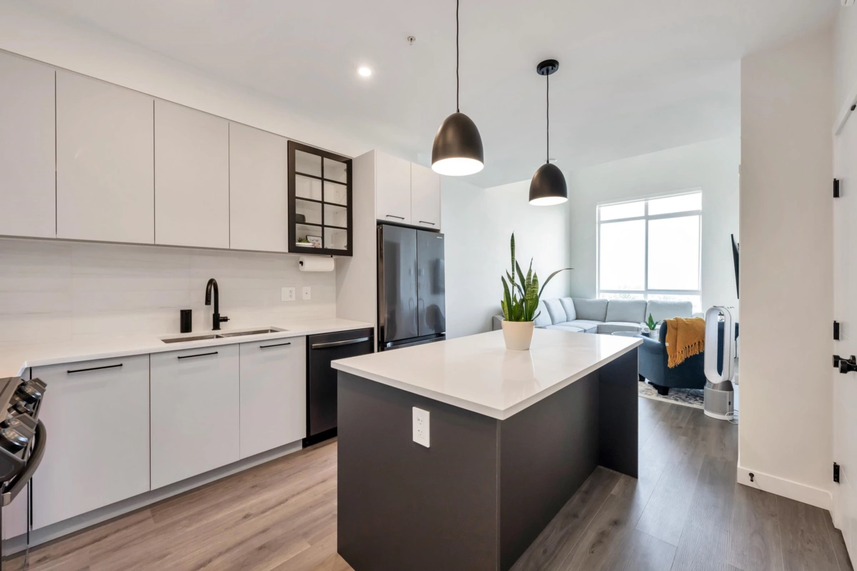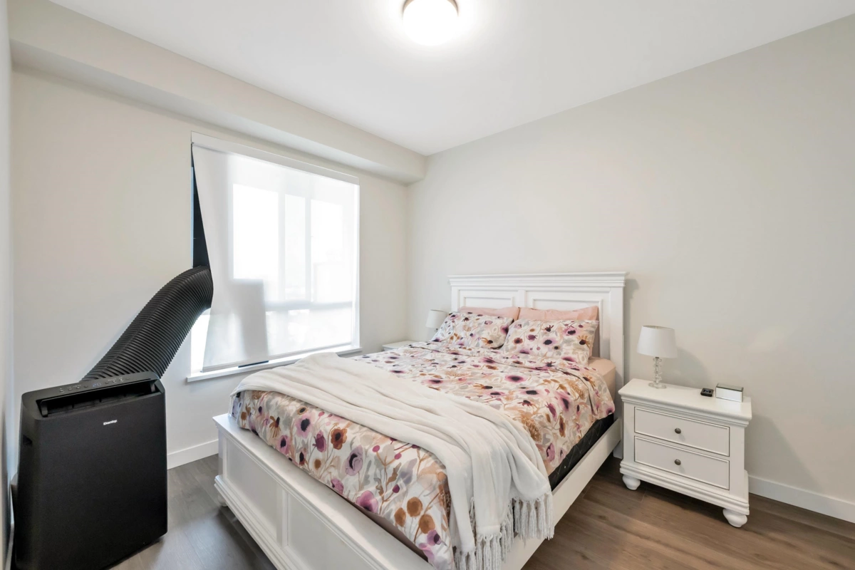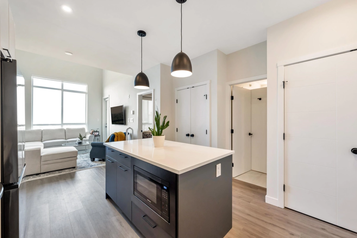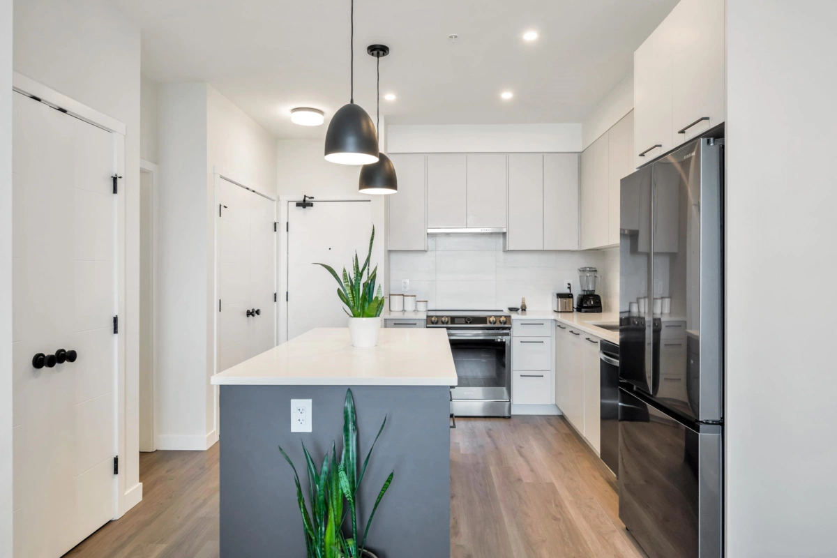 Move in today. 2 CARS? Start the carrrr! Welcome to Eastin Condos by Essence Properties! This Penthouse bright 1 bed/1 bath home offers stunning mountain views, upgraded appliances, enhanced flooring, and a custom shower surround. The open layout includes a modern kitchen with quartz counters, sleek cabinetry, and premium finishes. Enjoy your private balcony, secure parking, storage, and the convenience of the 1Valet smart building system. Residents also have access to a fitness studio, lounge with kitchen & co-working space, landscaped courtyard, dog wash, and children’s play area. Close to Willoughby Town Centre, schools, parks,this home blends comfort and convenience in the heart of Langley. 1 Locker/2 Parking.