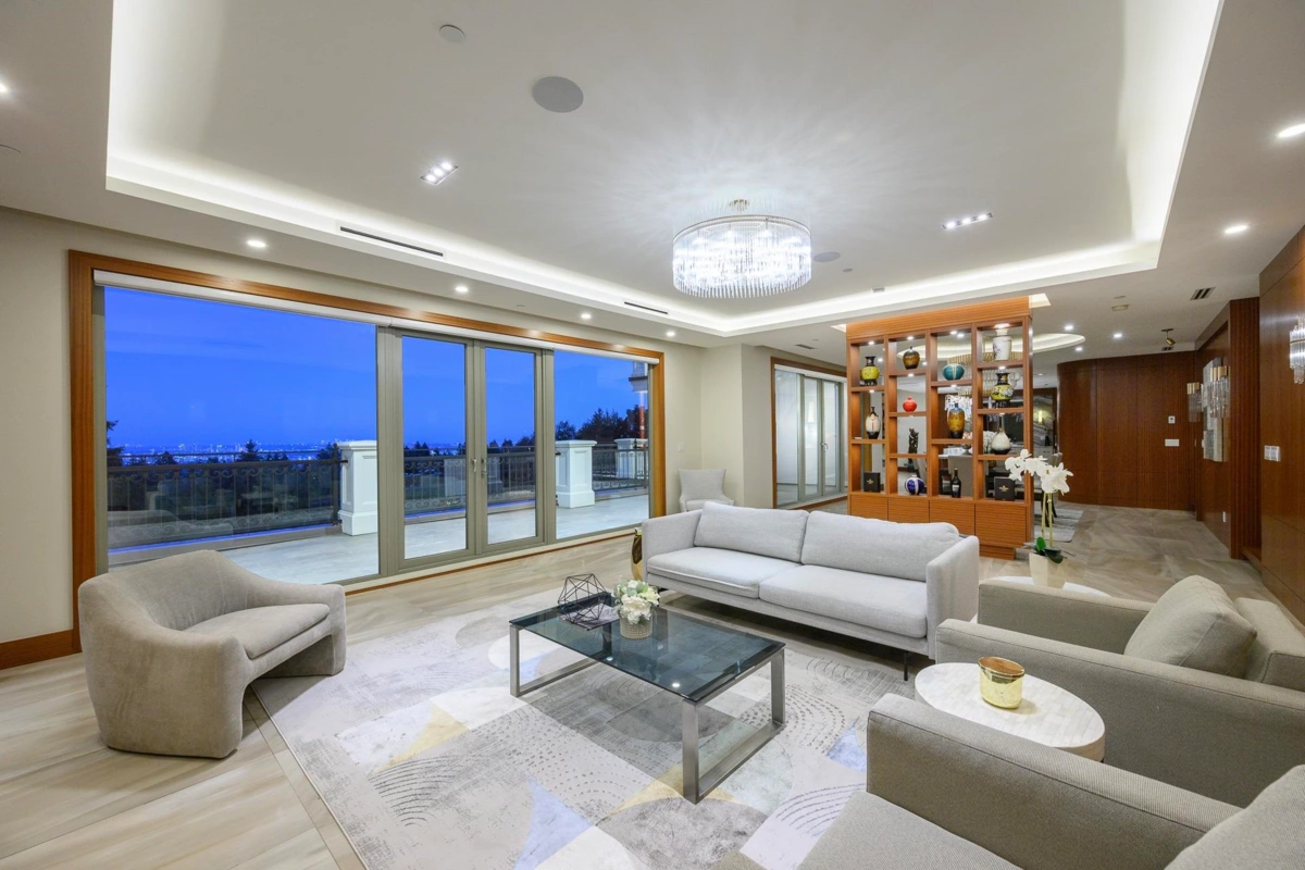 Located in the heart of West Vancouver’s prestigious British Properties, this 7,289 sq. ft. luxury estate sits on a 15,020 sq. ft. lot. Gated entrance with convenient driveway, offering mountain and ocean views, plus a sunny south-facing backyard with great privacy. The home features 6 bedrooms, 7 bathrooms, double garage, high ceilings, grand foyer with chandelier, elevator, and a functional layout. Gourmet kitchen with wok kitchen, spectacular balconies for year-round outdoor living. The bright basement offers home theatre, wine cellar, sauna, steam room, gym, wet bar, and more. All bedrooms upstairs are ensuited. Equipped with radiant heating and A/C, this residence combines comfort, elegance, and modern convenience. Public Open house on Sun 11am - 1pm, Nov 23rd.