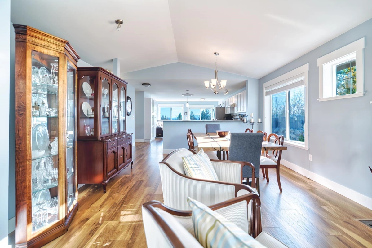 Huge ocean view from this lovely 3-bedroom home in upper West Sechelt, boasting level-entry main floor living with a full walk-out basement (easily suited). Featuring vaulted ceilings, an open-plan layout, a spacious kitchen with granite counters and an oversized island perfect for entertaining. The wide plank flooring and gas fireplaces in both the living and family rooms create a warm, inviting atmosphere. Enjoy breathtaking panoramic views from Davis Bay to the Trail Islands from your oversized sundeck, primary bedroom, family rooms and kitchen. Highlights include a gorgeous mature landscaped yard with irrigation, new heat pump & A/C on the main floor, a retractable awning for indoor-outdoor living. This meticulously cared for home is located just moments from the amenities of Sechelt.