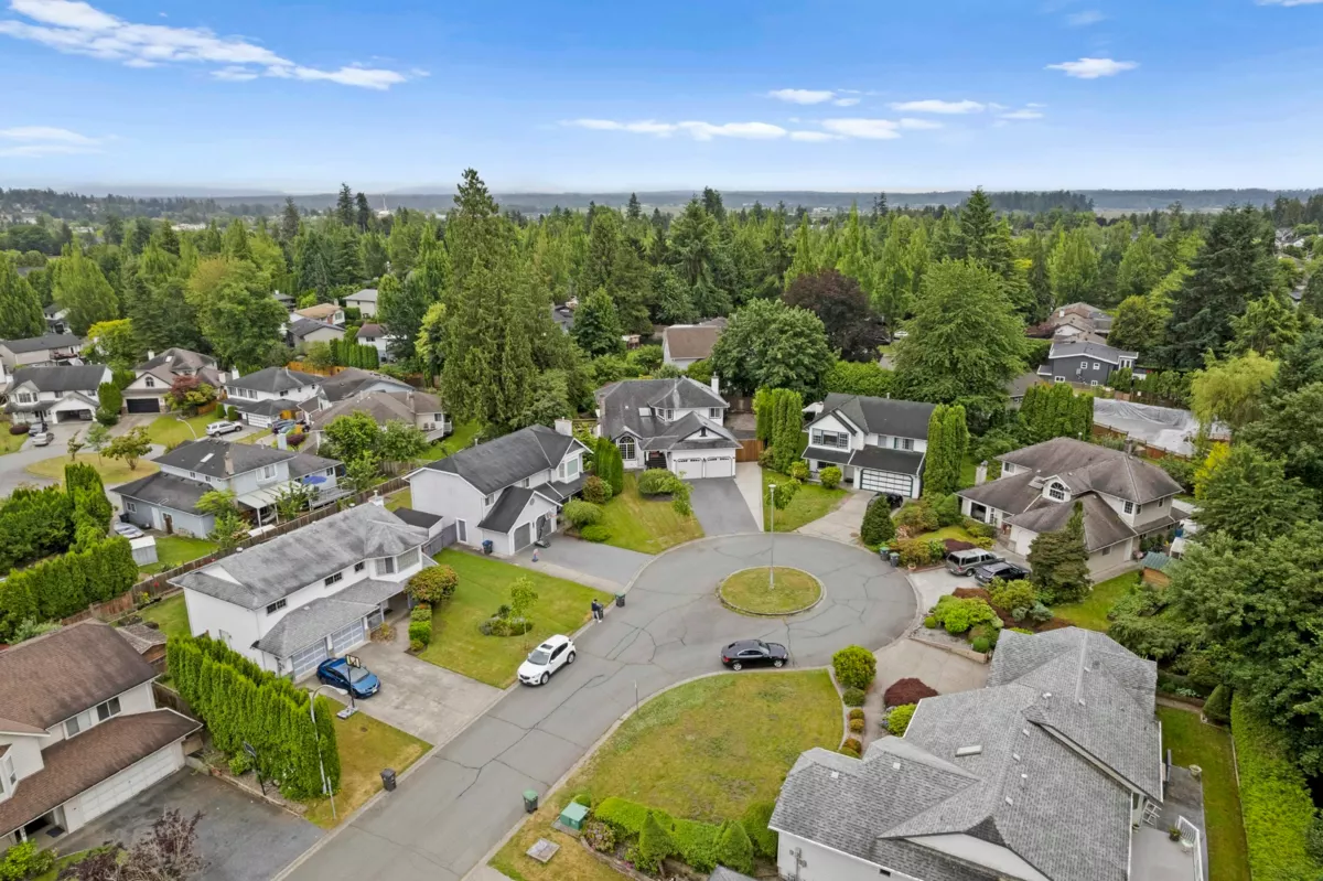 West Cloverdale Gem! Beautiful 2-storey home on a quiet cul-de-sac with a large 8,290 sq.ft. lot, southeast-facing yard, and central A/C with heat pump. The living room features soaring vaulted ceilings with skylight, fireplace, and stunning floor-to-ceiling window. Dining room connects to additional eating area and kitchen with granite counters, gas range, and SS appliances. Cozy family room overlooks the private yard. Full laundry room with sink & storage. Upstairs, the spacious primary suite features 5-piece ensuite with heated floors & sauna. Two additional bedrooms share 4-piece bath. Tons of extra parking along side and back—perfect for RVs or hobbies. Great backyard for gardening and summer BBQs! Prime area near Cloverdale Athletic Park, 176 St. & Elementary School.