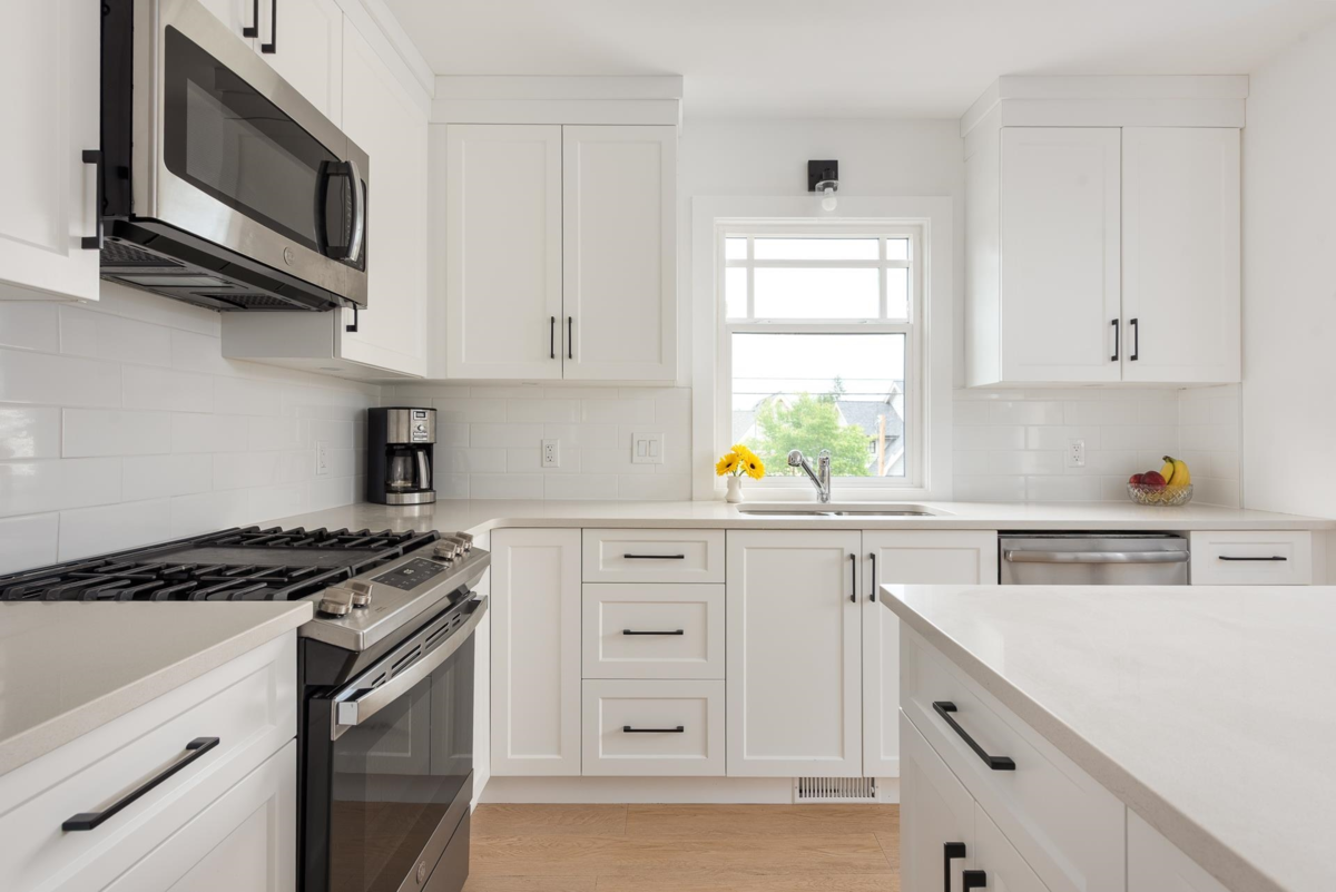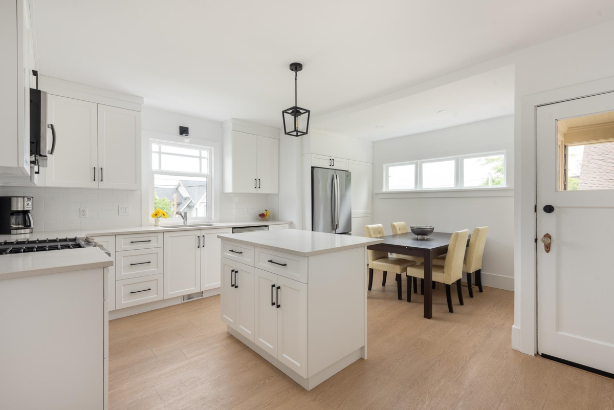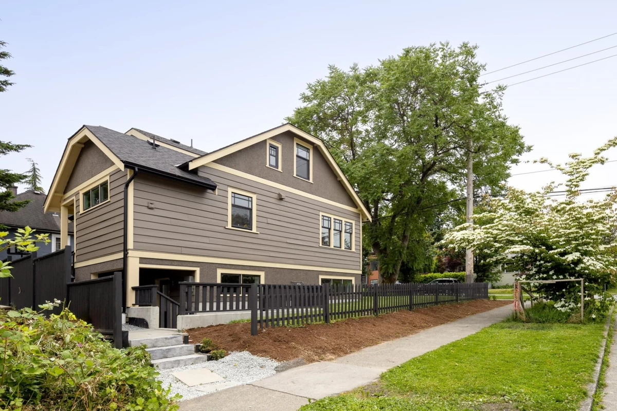 Completely rebuilt from new foundation to new roof, this charming character home is located in New Westminster’s sought-after Glenbrook neighbourhood on a PRIME corner lot steps to schools, Queen’s Park, rec ctr and more. The new foundation allowed the house to be moved on the lot, maximizing yard space and giving it a high and light-filled basement w/ 1 BDRM SUITE w/ sep laundry connection. The main level has two bdrms, a full bath, large living room drenched in natural light and a spacious new kitchen w/ gleaming white cabinetry, central island and quartz countertop that adjoins the dining area. Upstairs are two more bdrms, each with built-in dressers and another full bath. This home is move-in-ready w/ all new electrical, plumbing, AC, drywall, floors, two level 2 EV chargers and more.