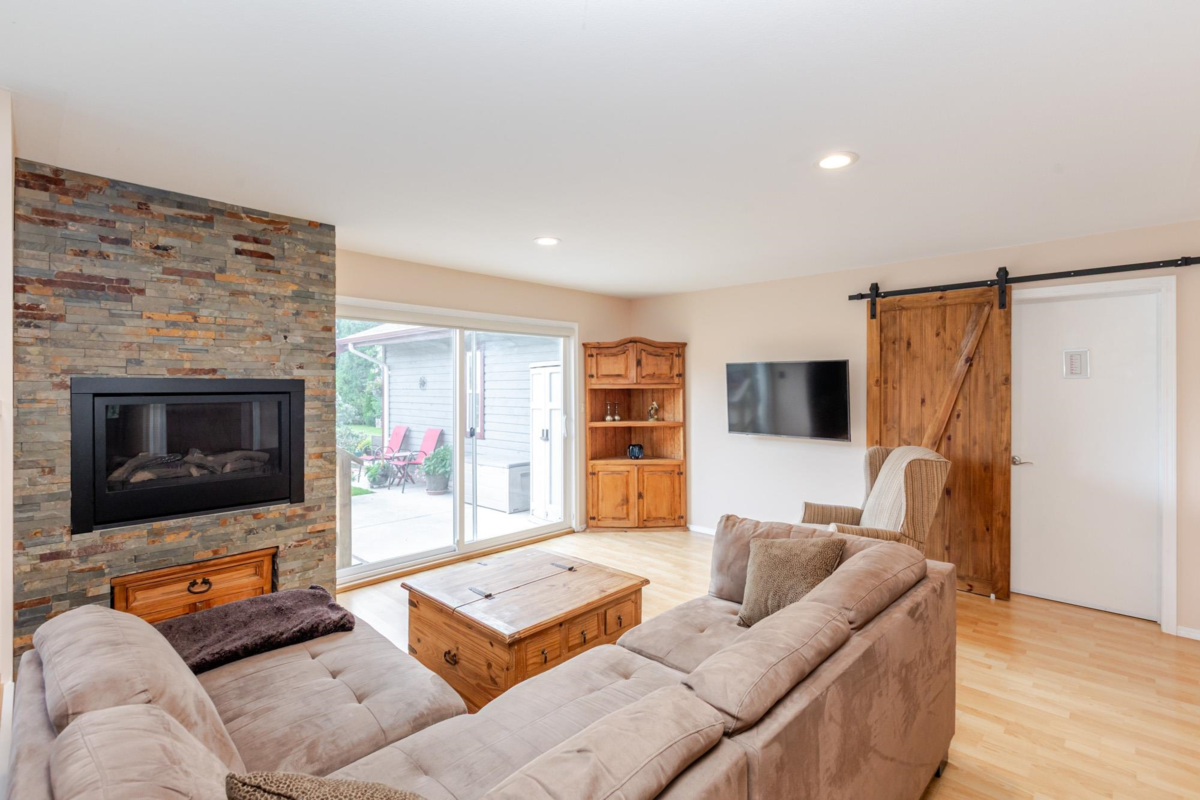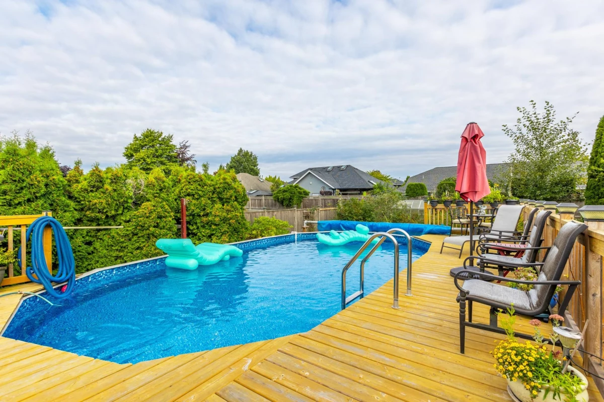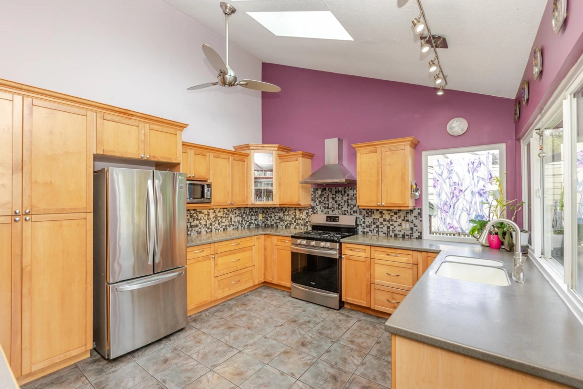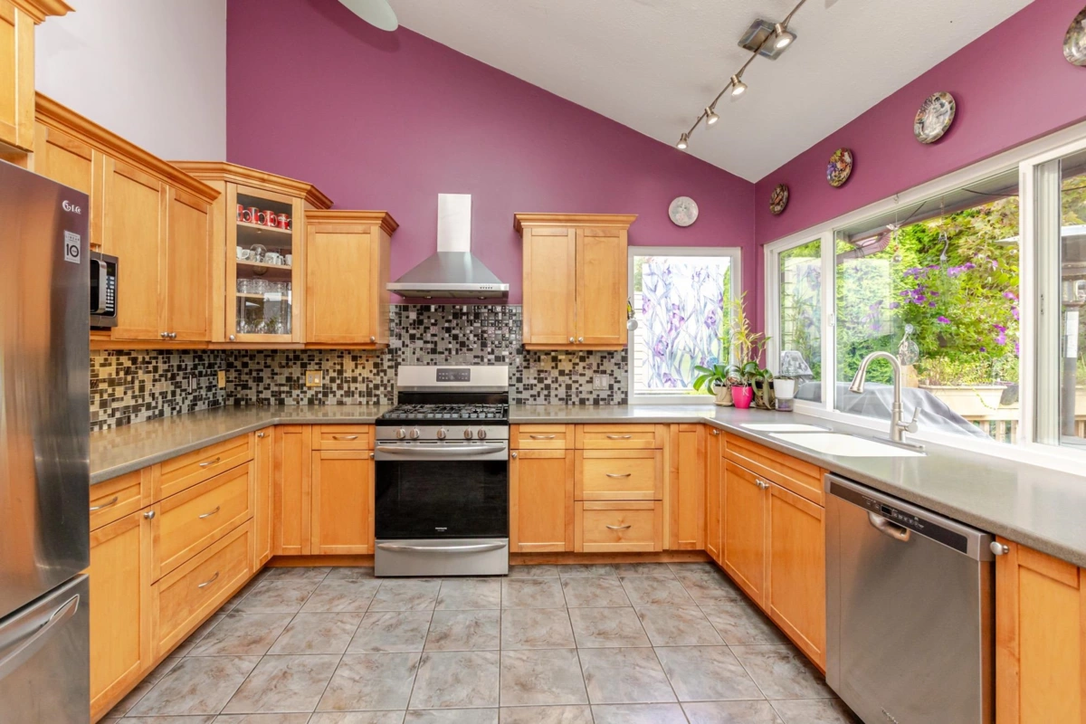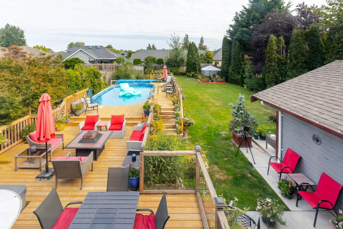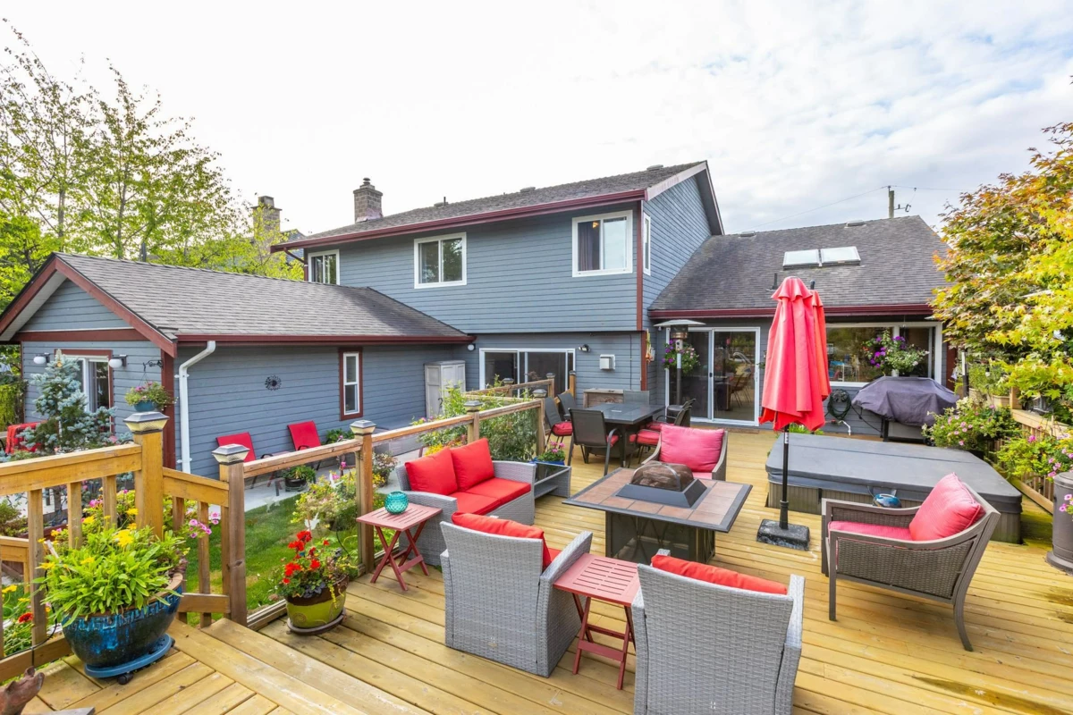 A beautiful property set on a 13,200 sq.ft. lot (1/3 acre approx) this home has been carefully renovated and updated to produce a gorgeous property! Vaulted ceiling and hardwood in the living room, huge kitchen (s/steel appliances,gas stove) with vaulted ceiling +skylight! Off family room and den area there is easy access to a in-law suite with separate laundry. Five beds +den in total (3148 sq.ft.),ideal for a large family or if office space with the suite! Primary bedroom has a private sitting area+balcony and gorgeous ensuite! Backyard fully landscaped, HUGE deck with firepit, hot-tub-ideal- for year round enjoyment! Pool is solar heated+easy to care for! Lots of storage + double car garage. Hold or new OCP will allow for 4 units to be built-verify with the city! A rare find!