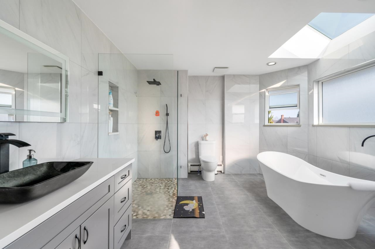 Granville Area - Prime Location in Richmond with no dikes and wires! Spacious and functional home features 6 bedrooms and 5 bathrooms, perfect for family living. Recent renovations in 2022 have given this home a fresh, contemporary feel and enhanced its bright, open layout with large bay windows and high ceilings. The main floor offers a bedroom and full bath, while the upper floor includes a master suite with a walk-in closet and luxurious ensuite. Enjoy a private front and back yard, side-by-side two-car garage, and a functional kitchen with a gas stove. Located in the Blundell Elementary and Steveston-London Secondary school catchment areas. A must-see family home in a fantastic neighborhood!