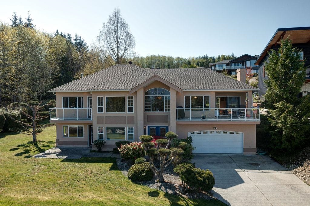 Lovely HALF acre property in The Shores - Sechelt's premier exclusive waterfront neighborhood. Main living areas enjoy Sechelt Inlet and mountain VIEWS. Impressive 4 bdrm / 2 bath family home plus separate 1 bdrm in law suite has seperate entrance. This extremely well maintained home will not disappoint * Vaulted cedar ceilings over formal dining room * spacious kitchen with views is open to the family room (with gas fireplace) and generous eating nook * Family room leads access to both front sundeck overlooking Sechelt Inlet plus level entry patio & back yard. 9ft ceilings throughout the upper level. Quality wood floors in main living area. Property boarders a road allowance for additional privacy. * Mature landscaping . Located across the street from beach access.