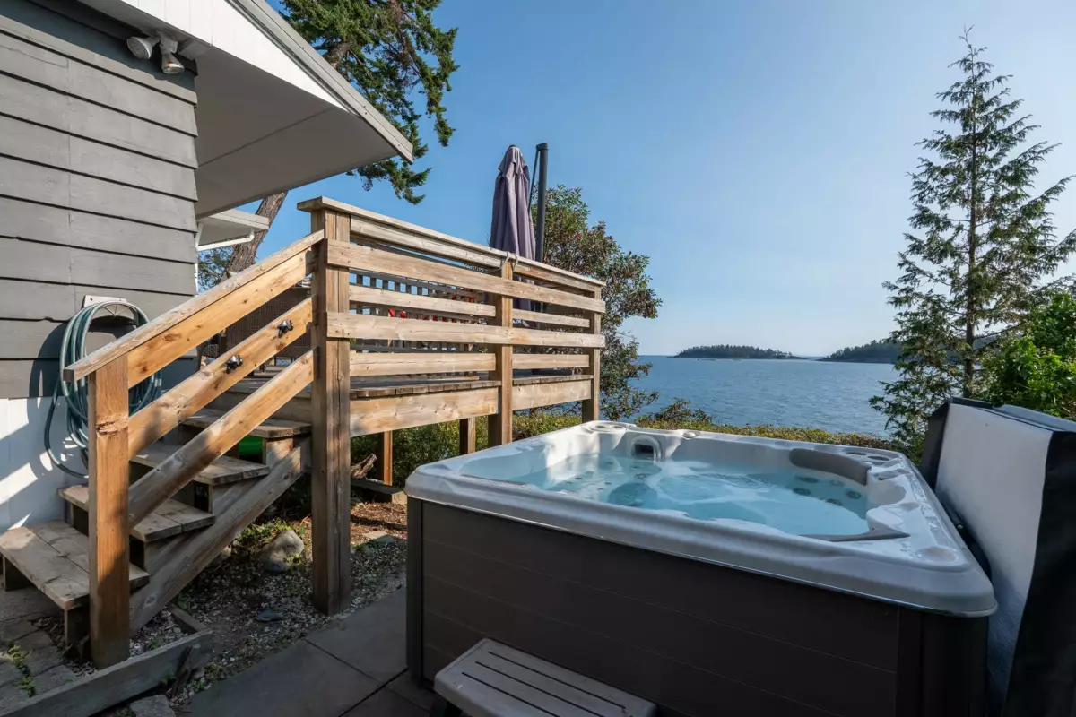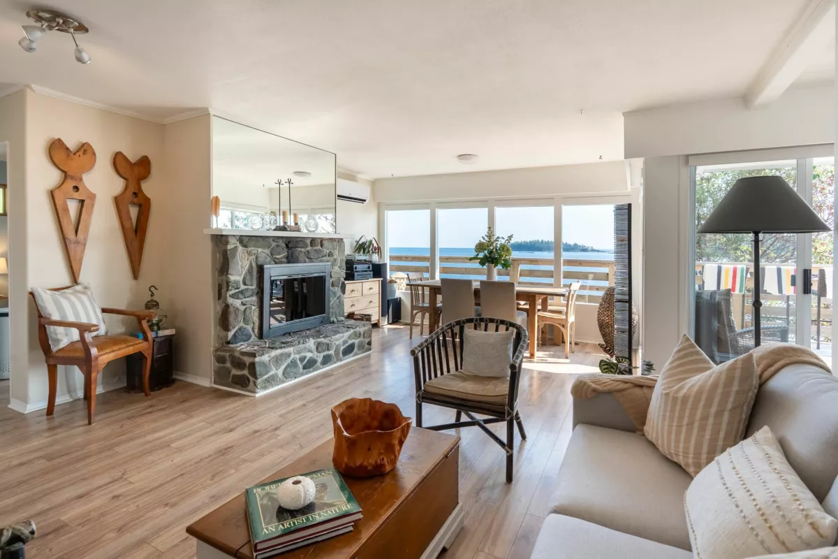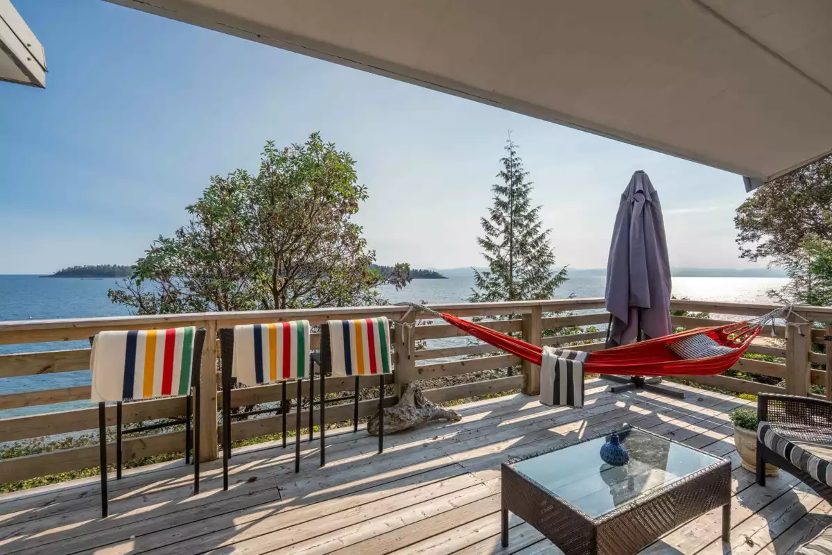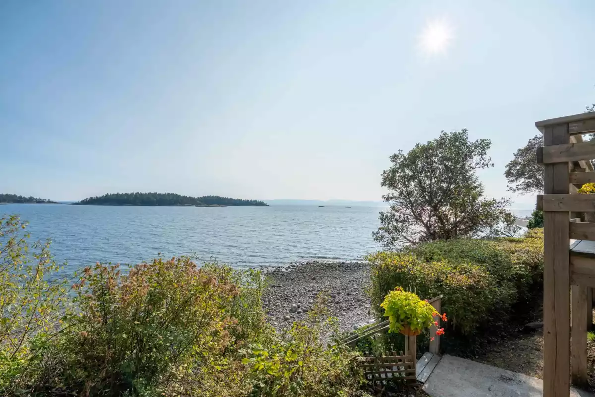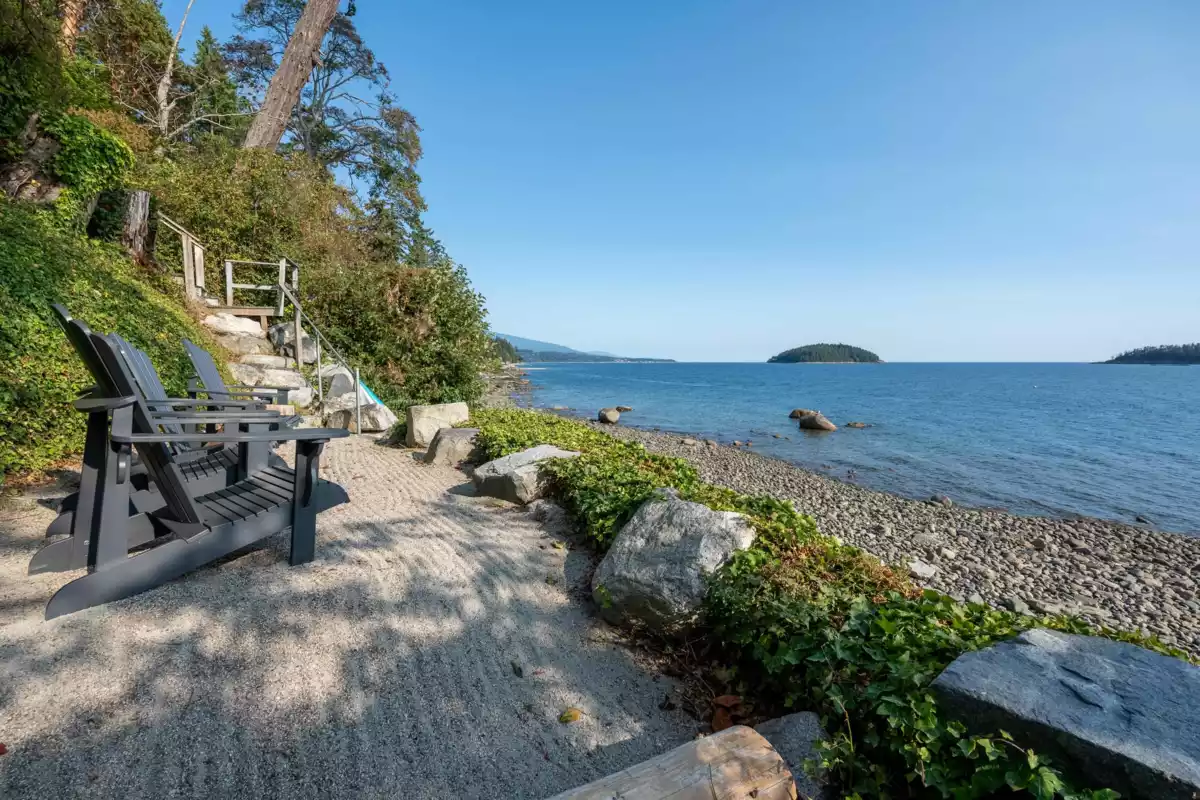 The perfect vacation cottage—stylish, spacious, and beautifully maintained—set on the waterfront with unparalleled views of the Trail Islands and Strait of Georgia. Enjoy year-round sunsets from the expansive front deck or relax in the private hot tub. Thoughtful updates include new flooring, septic system, fenced yard, new heat pump, improved beach access leading to a large private viewing platform, perfect for entertaining, soaking up the sun, and embracing the coastal lifestyle. A detached bunky offers extra guest space, ideal for family or friends. Across the highway, the hooked parcel features 35,500 sqft of gently sloping treed property with subdivision potential, providing an opportunity to build a second home. A rare legacy property offering both charm and future opportunities.