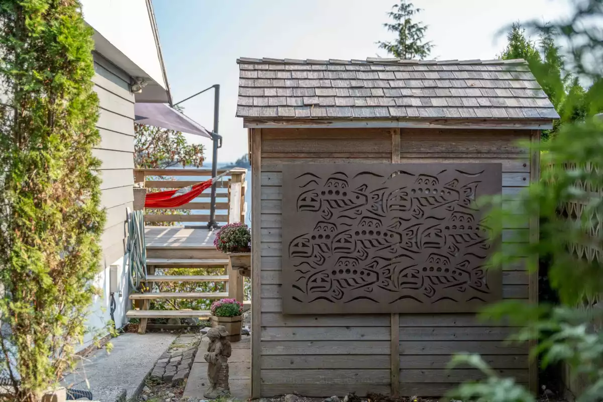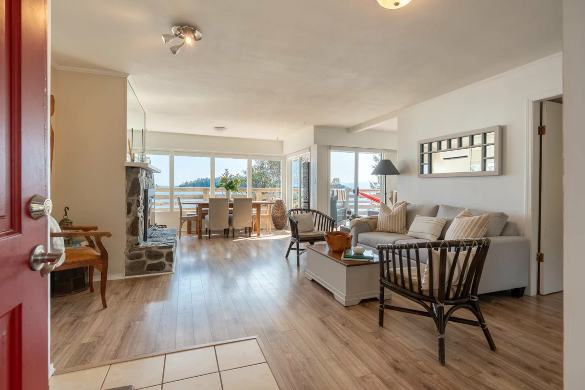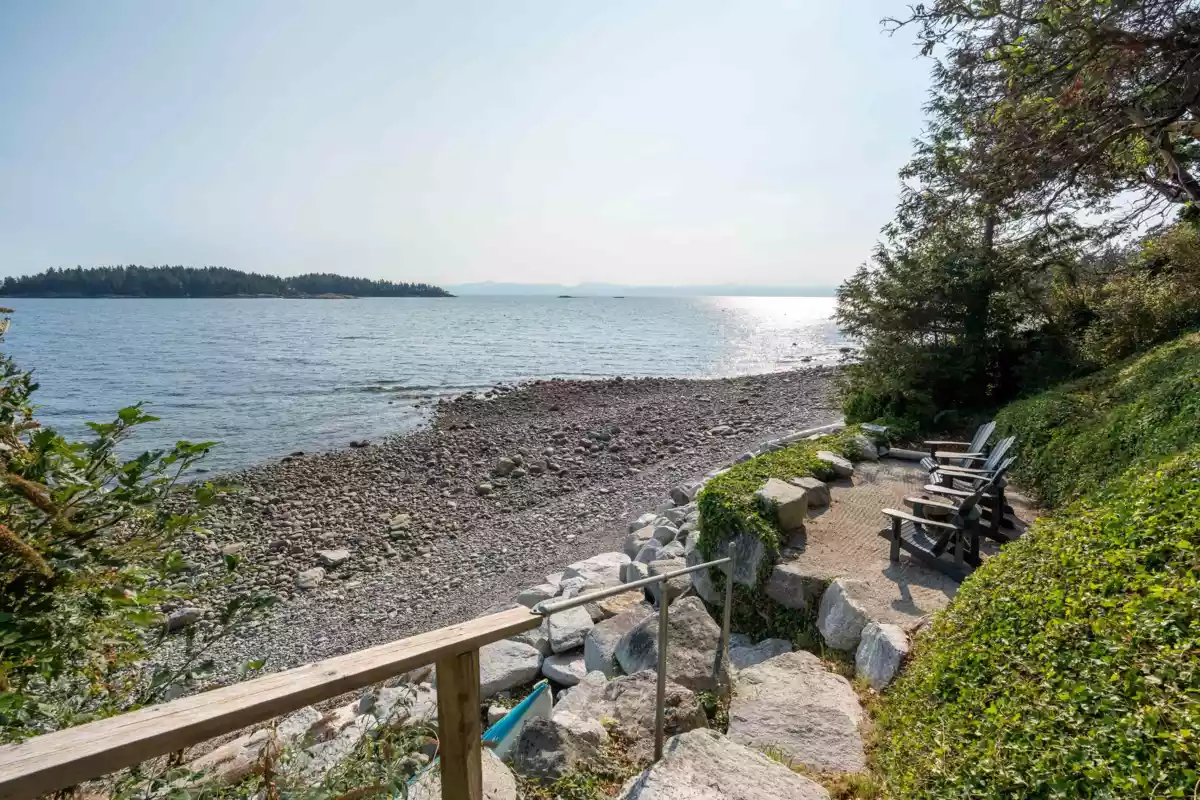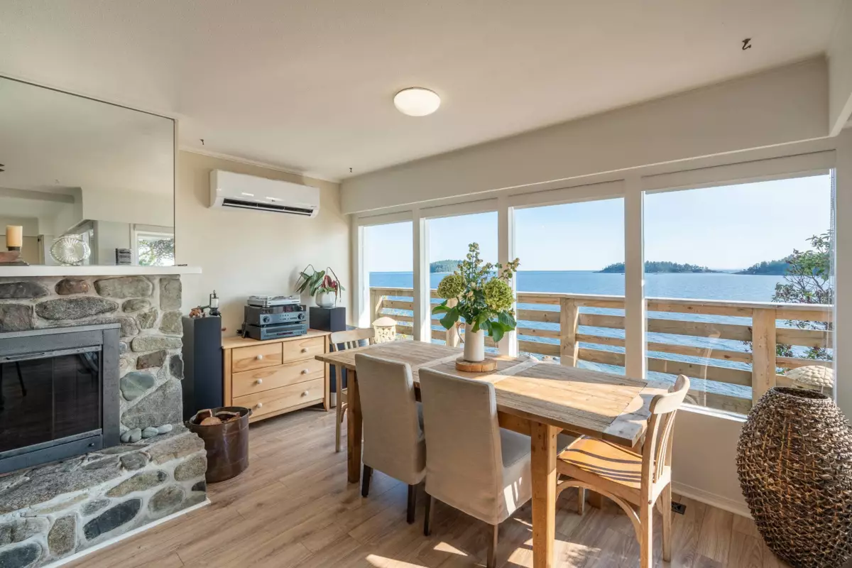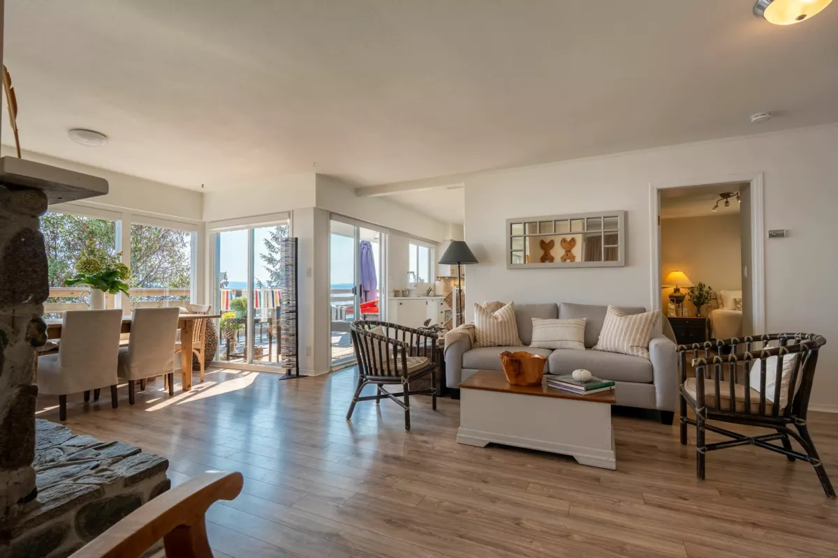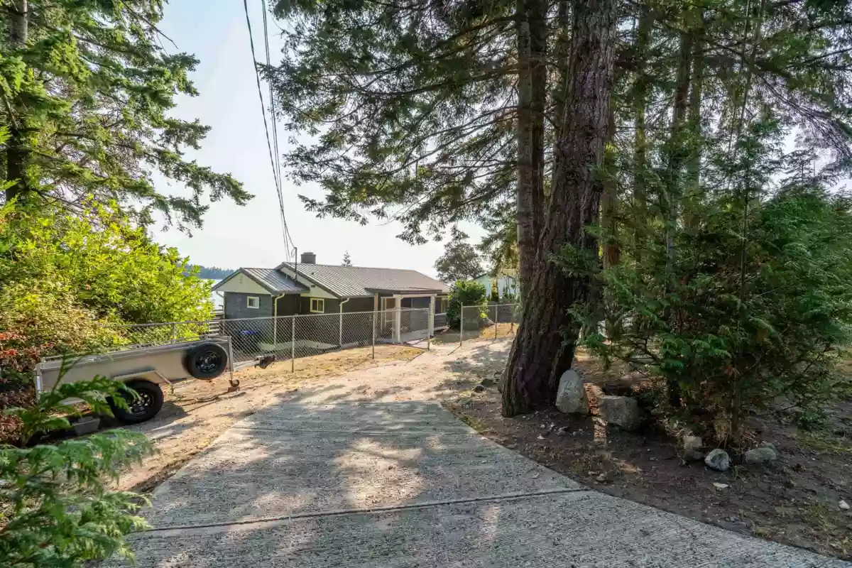 The perfect vacation cottage—stylish, spacious, and beautifully maintained—set on the waterfront with unparalleled views of the Trail Islands and Strait of Georgia. Enjoy year-round sunsets from the expansive front deck or relax in the private hot tub. Thoughtful updates include new flooring, septic system, fenced yard, new heat pump, improved beach access leading to a large private viewing platform, perfect for entertaining, soaking up the sun, and embracing the coastal lifestyle. A detached bunky offers extra guest space, ideal for family or friends. Across the highway, the hooked parcel features 35,500 sqft of gently sloping treed property with subdivision potential, providing an opportunity to build a second home. A rare legacy property offering both charm and future opportunities.