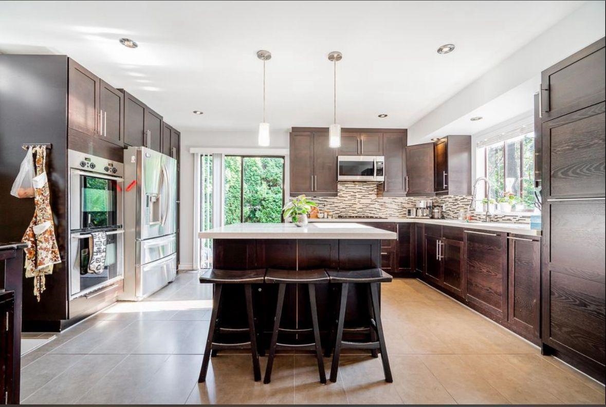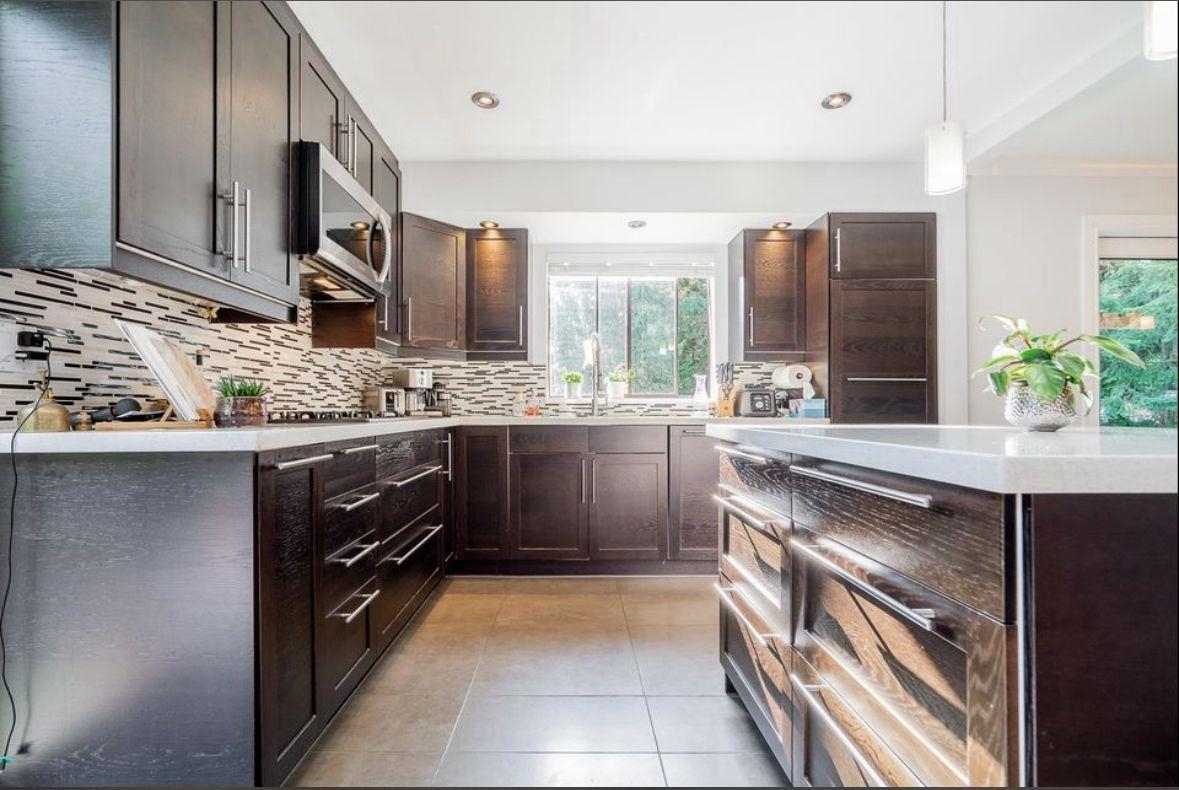 Sunshine Hills. Perfect Rectangular lot (66x120), wide front good for duplex. No Trees on the property. Across from park and Tennis Court. 3 level split family home with huge family room including wood burning fireplace, dark wood floors opens to kitchen with espresso cabinets, stone countertop, pantry drawers, undermount sink, stainless steel appliances, gas cooktop, 2 built-in-ovens and large island. One more bedroom with gas fireplace can be used as separate living room. 3 bedrooms up with 2 full baths. Private yard, day care just across the street and beautiful park just steps away. School catchments are Sunshine Hills Elementary and Seaquam Secondary.