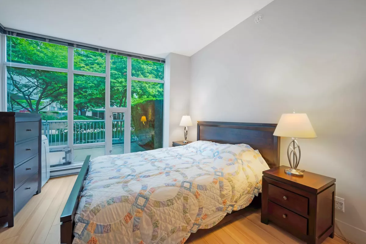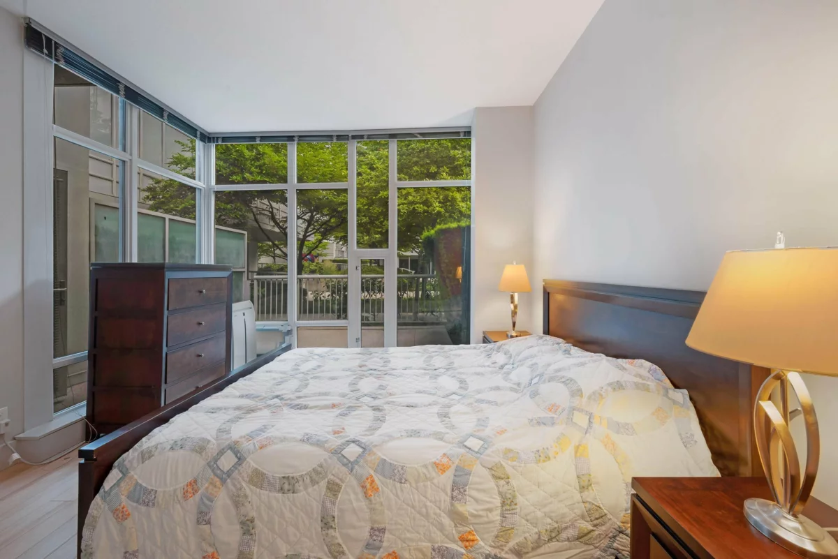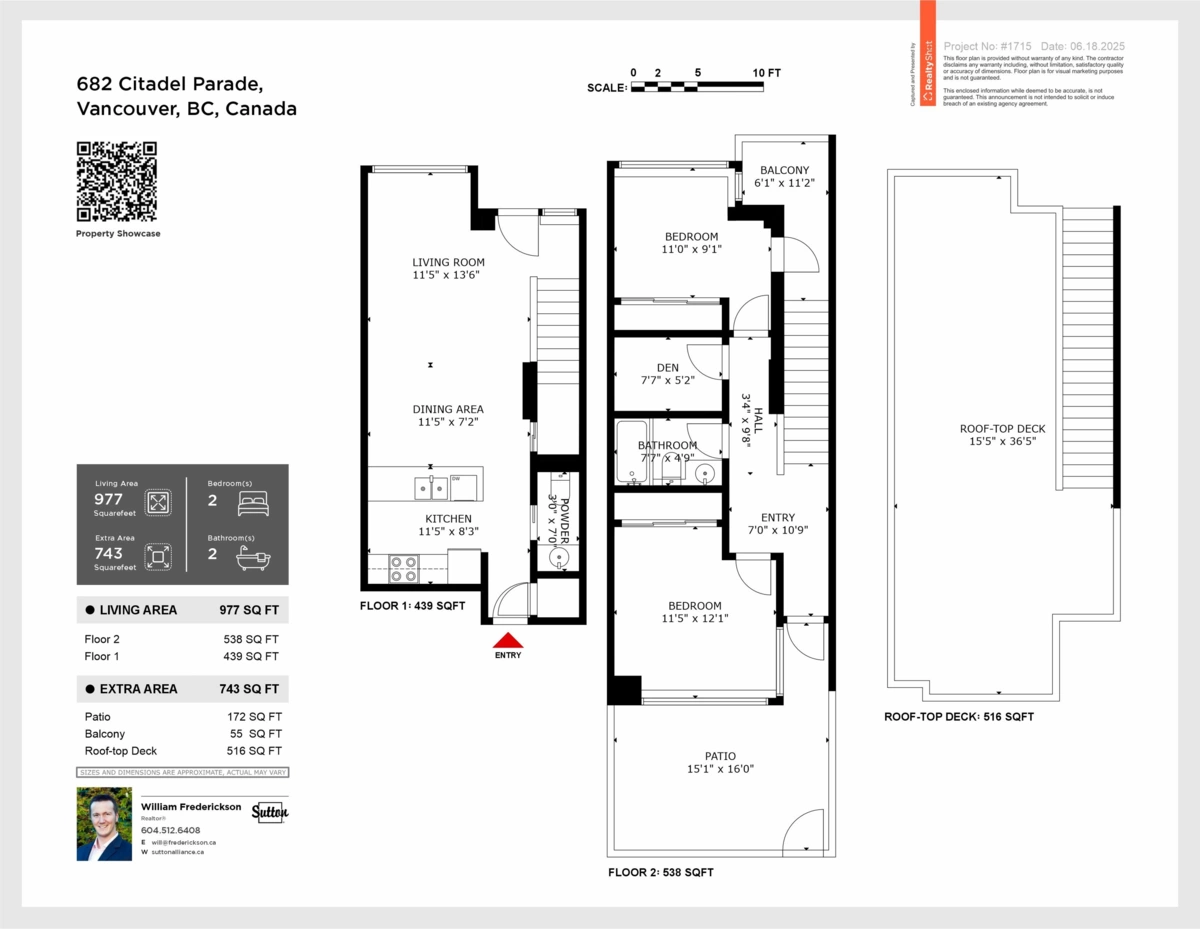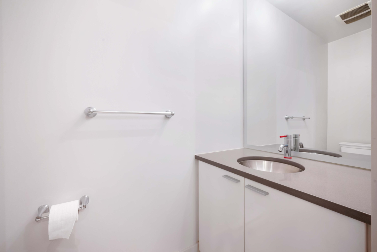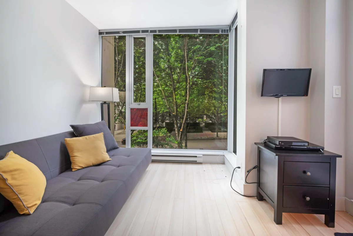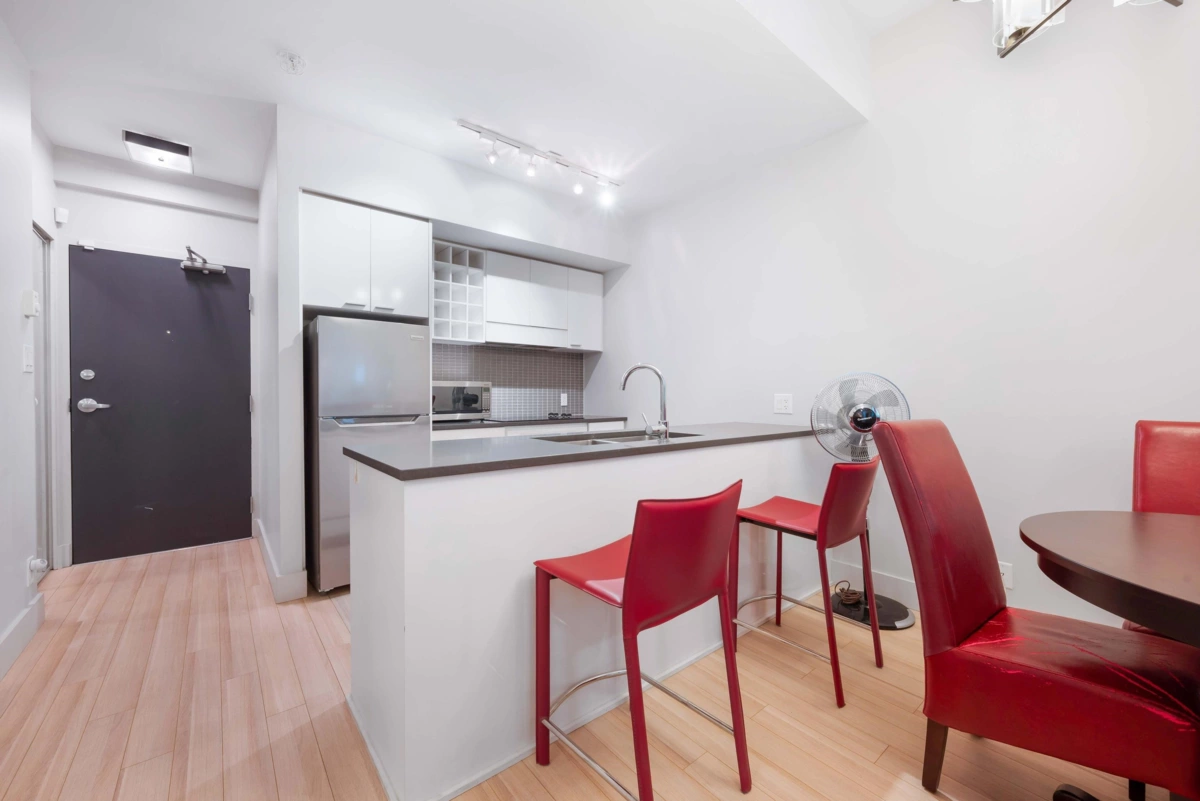 Welcome to this bright and contemporary townhome in the sought-after Spectrum community. This spacious home offers 2 well-appointed bedrooms, a versatile den ideal for a home office or nursery, and 2 bathrooms, including a main floor powder room and a sleek 3-piece upstairs. The open-concept living and dining area flows into a modern kitchen, perfect for everyday living and entertaining. Step out to your private rooftop patio, ideal for relaxing or hosting. Solid concrete construction ensures long-term durability and quiet comfort. Enjoy premium amenities including an indoor pool, fitness centre, hot tub, sauna, and concierge, all just steps from SkyTrain, shopping, dining, and the energy of downtown Vancouver.