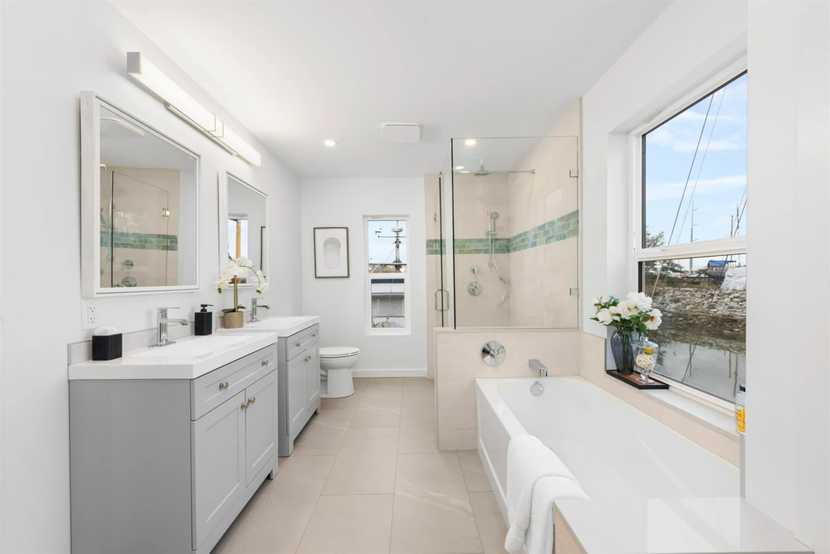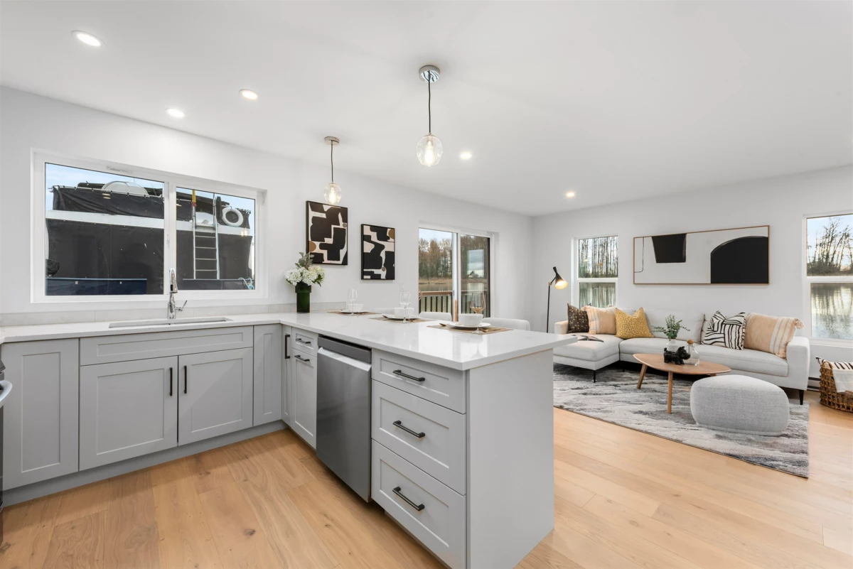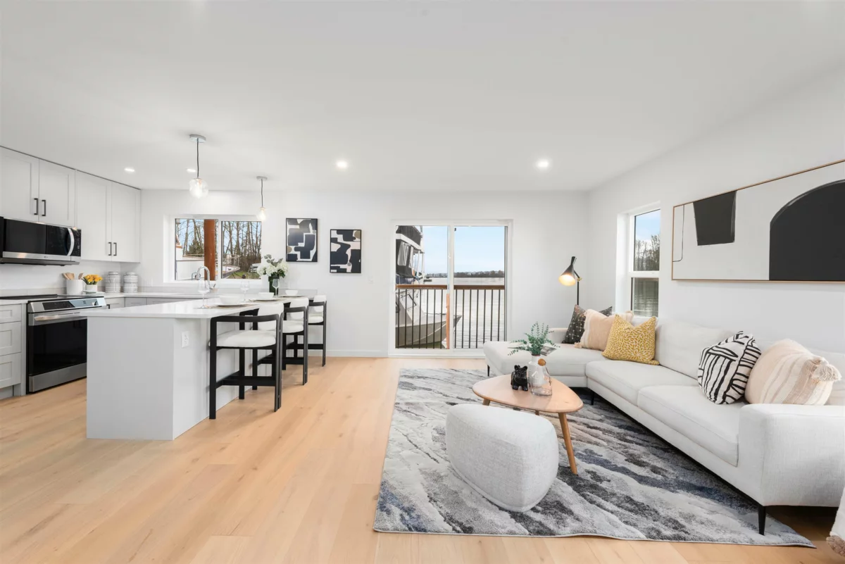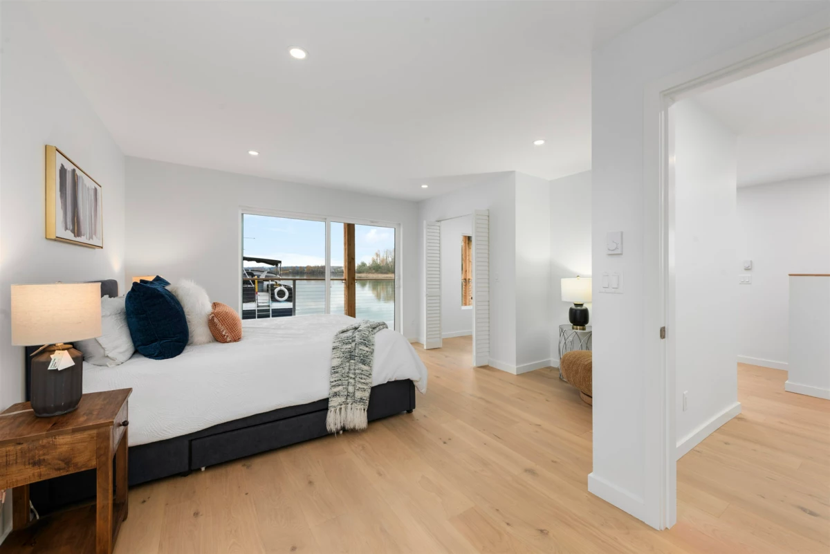 Limited time offer: GST INCLUDED! MOVE to ANY MARINA of your choosing! The main floor features an OPEN CONCEPT floor plan, beautiful WIDE-PLANK ENGINEERED HARDWOOD flooring, QUARTZ countertops, a kitchen ISLAND that’s perfect for entertaining, and a bedroom that makes a perfect GUEST ROOM or OFFICE. Upstairs you will find two more bedrooms including a primary with a WALK-IN CLOSET, a 5-piece ENSUITE with a SOAKER TUB and HIS & HER SINKS, as well as an oversized BALCONY, perfect for your morning coffee or evening glass of wine as you look out over the water. The home is situated on a deep, 5’2” CONCRETE FLOATATION for maximum stability and on a 38’ x 24’ footprint. Currently moored at Shelter Island Marina for marketing purposes only. Move this home to any location you like! Call us today!
