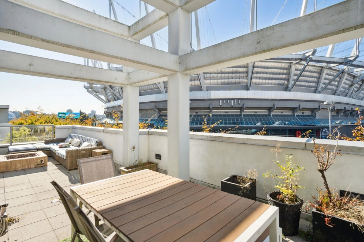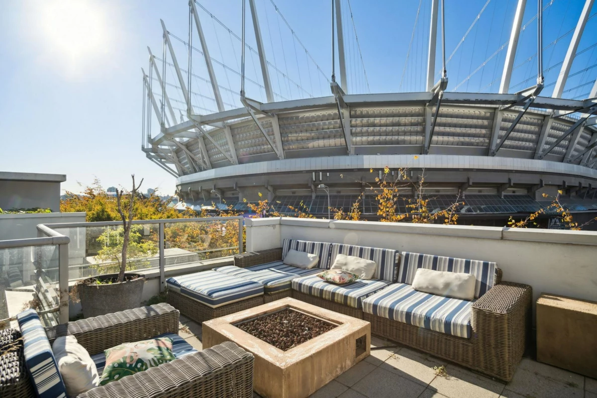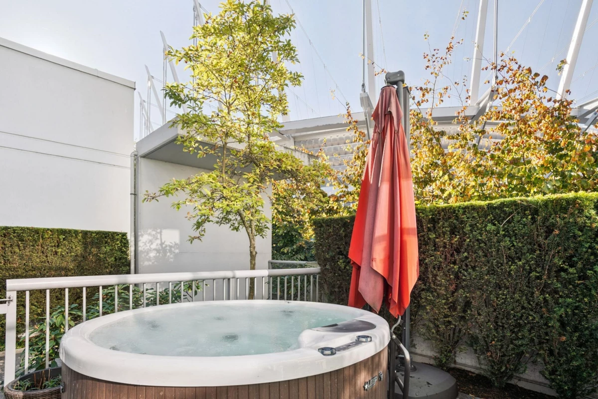 This private, corner townhome is a true modern-day retreat. Thoughtfully renovated with sleek, contemporary finishings, it exudes style and comfort in every detail. Bright and inviting, the home speaks for itself — but the outdoor spaces take it to another level. Enjoy three distinct outdoor experiences: a lush, private garden entrance; a serene patio off the primary bedroom complete with your own private hot tub; and a massive 500+ sq ft south-facing rooftop deck for sunset dinners and lively gatherings in the glow of BC Place's gorgeous lights. All this just steps from sky train, restaurants, entertainment, Rogers Arena, and boutique shops. A rare blend of city living and private sanctuary close to all the city's best offerings!