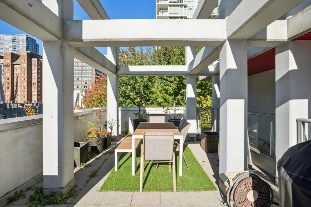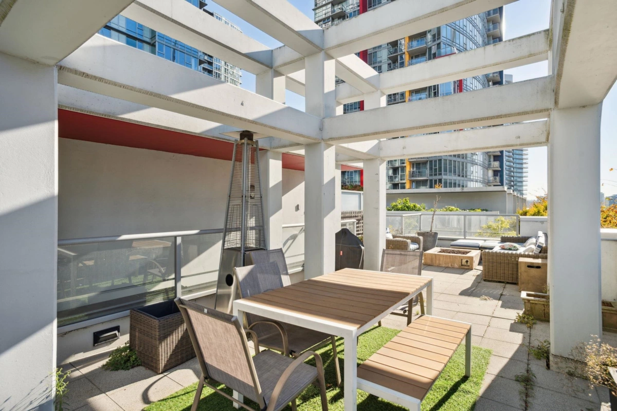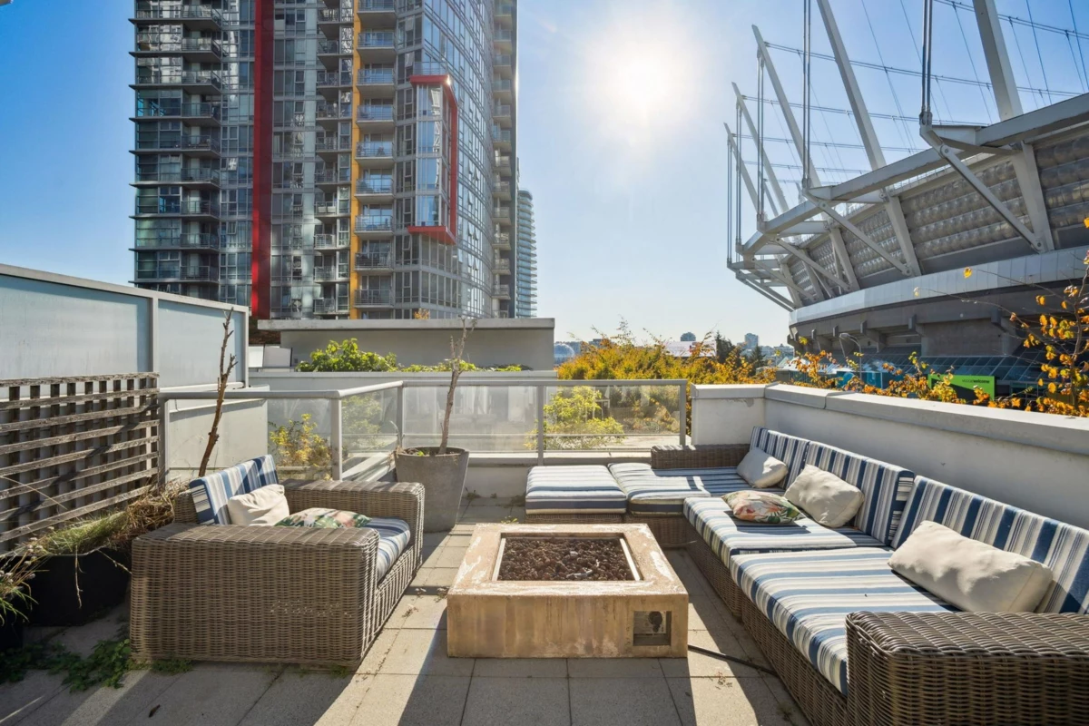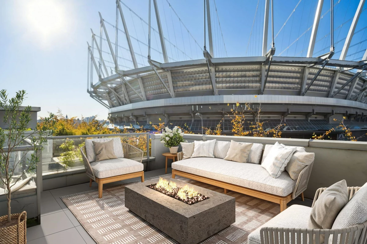 This private, corner townhome is a true modern-day retreat. Thoughtfully renovated with sleek, contemporary finishings, it exudes style and comfort in every detail. Bright and inviting, the home speaks for itself — but the outdoor spaces take it to another level. Enjoy three distinct outdoor experiences: a lush, private garden entrance; a serene patio off the primary bedroom complete with your own private hot tub; and a massive 500+ sq ft south-facing rooftop deck for sunset dinners and lively gatherings in the glow of BC Place's gorgeous lights. All this just steps from sky train, restaurants, entertainment, Rogers Arena, and boutique shops. A rare blend of city living and private sanctuary close to all the city's best offerings!