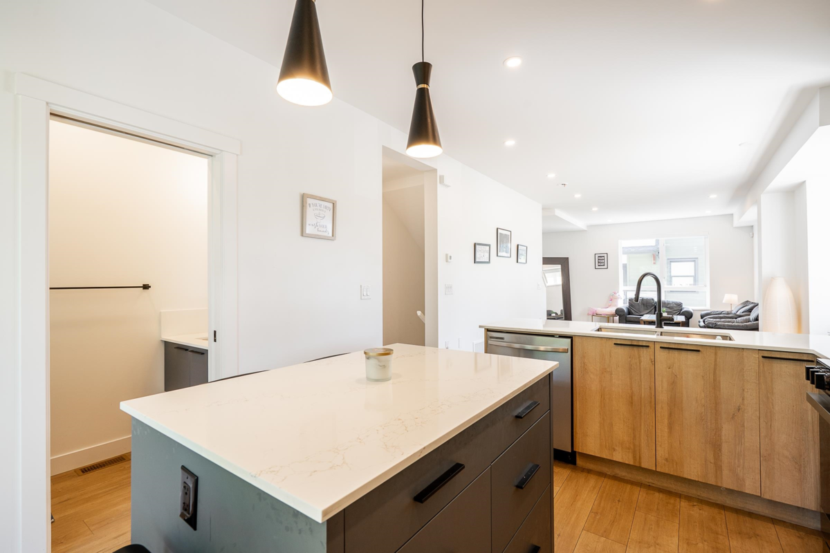 Guildford’s finest! This new 3BR 2.5BTH corner end unit boasts a private fenced backyard and upscale finishes, built by award-winning IOM. Enjoy a chef-inspired kitchen with sleek cabinetry, premium appliances & an elegant island with designer light fixtures. The primary suite offers a walk in closet, & spa-like ensuite with his & her sinks, matte black fixtures & herringbone tile. Includes double tandem garage, plus rough-in for A/C, EV charger & security. HAVAN Award finalist, steps to schools, shops, dining, transit & Hwy 1. Besides a future park & green belt. Don't miss this perfect unit!