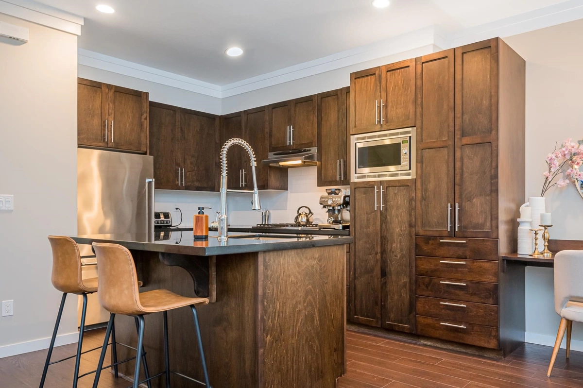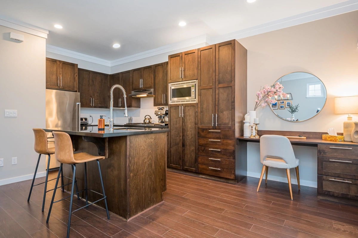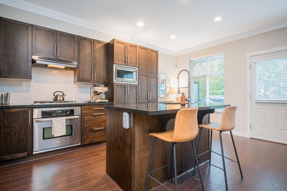 Discover spacious living in this exquisite 4-bedroom, 4-bathroom townhouse in the heart of South Surrey. Boasting a spacious 2042 square feet, this end unit offers privacy and style. With high ceilings, crown moldings, and built-in cabinets, every detail has been meticulously designed. Enjoy the convenience of a rare double side-by-side garage and the security of a built-in security system. The kitchen features granite countertops and stainless steel appliances. This unit offers additional perks with its backyard, clubhouse, playground, and welcoming community atmosphere. It's an ideal place for families, and the proximity to shopping, schools, and transit makes daily life a breeze.