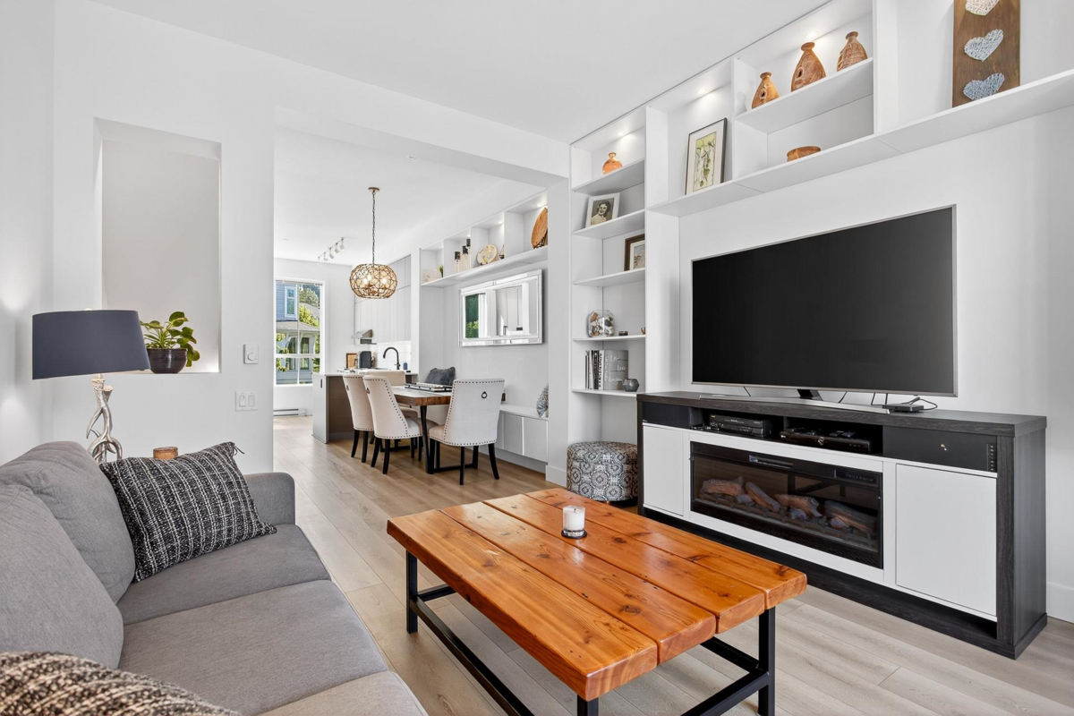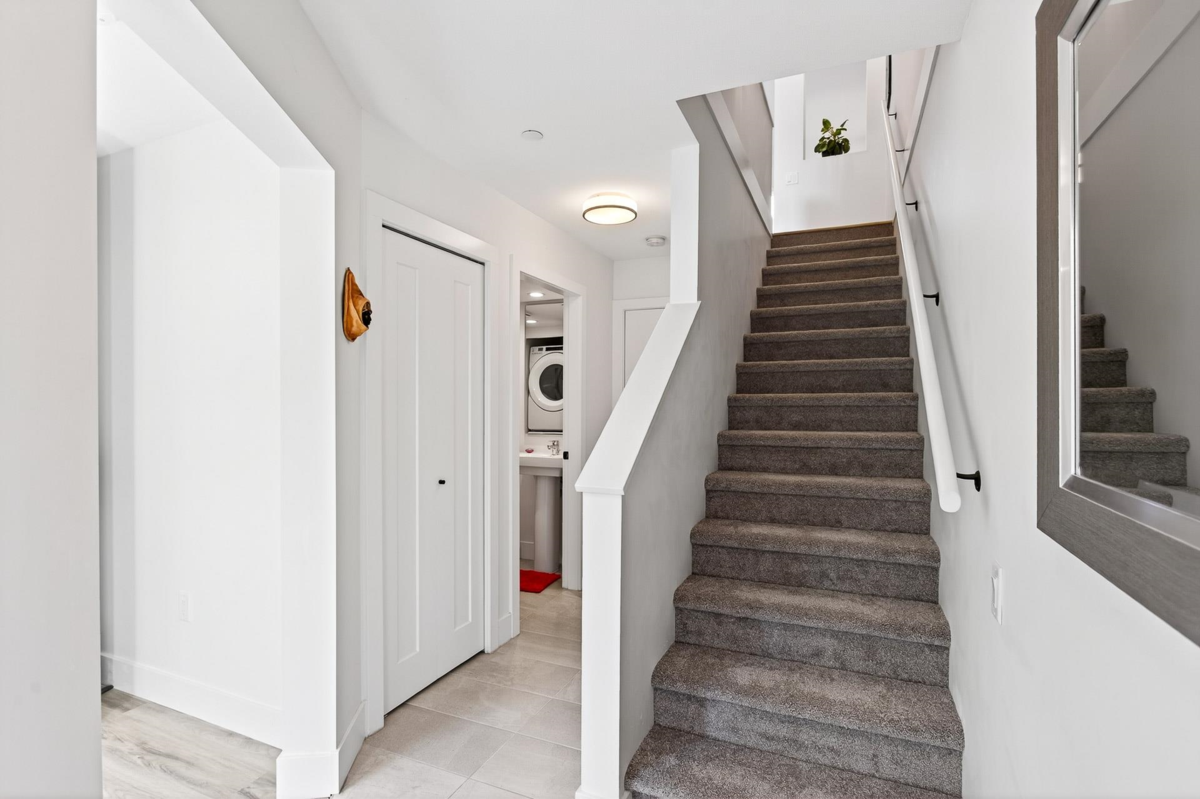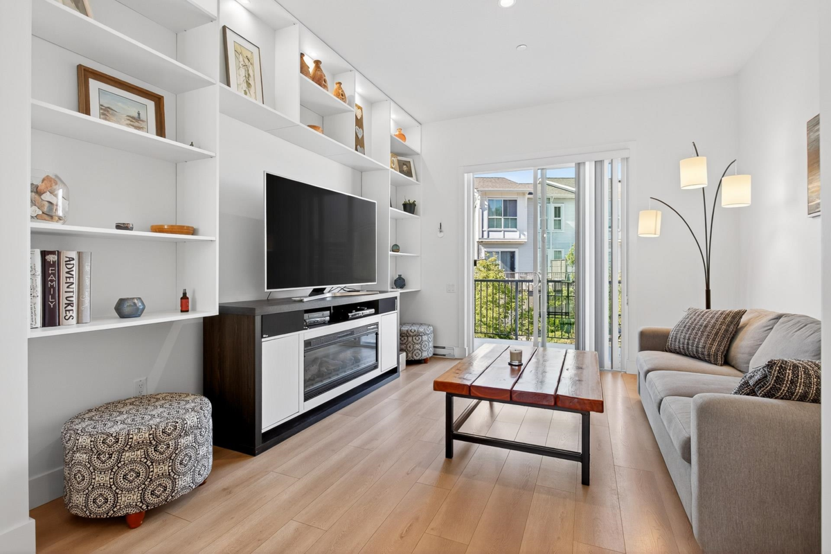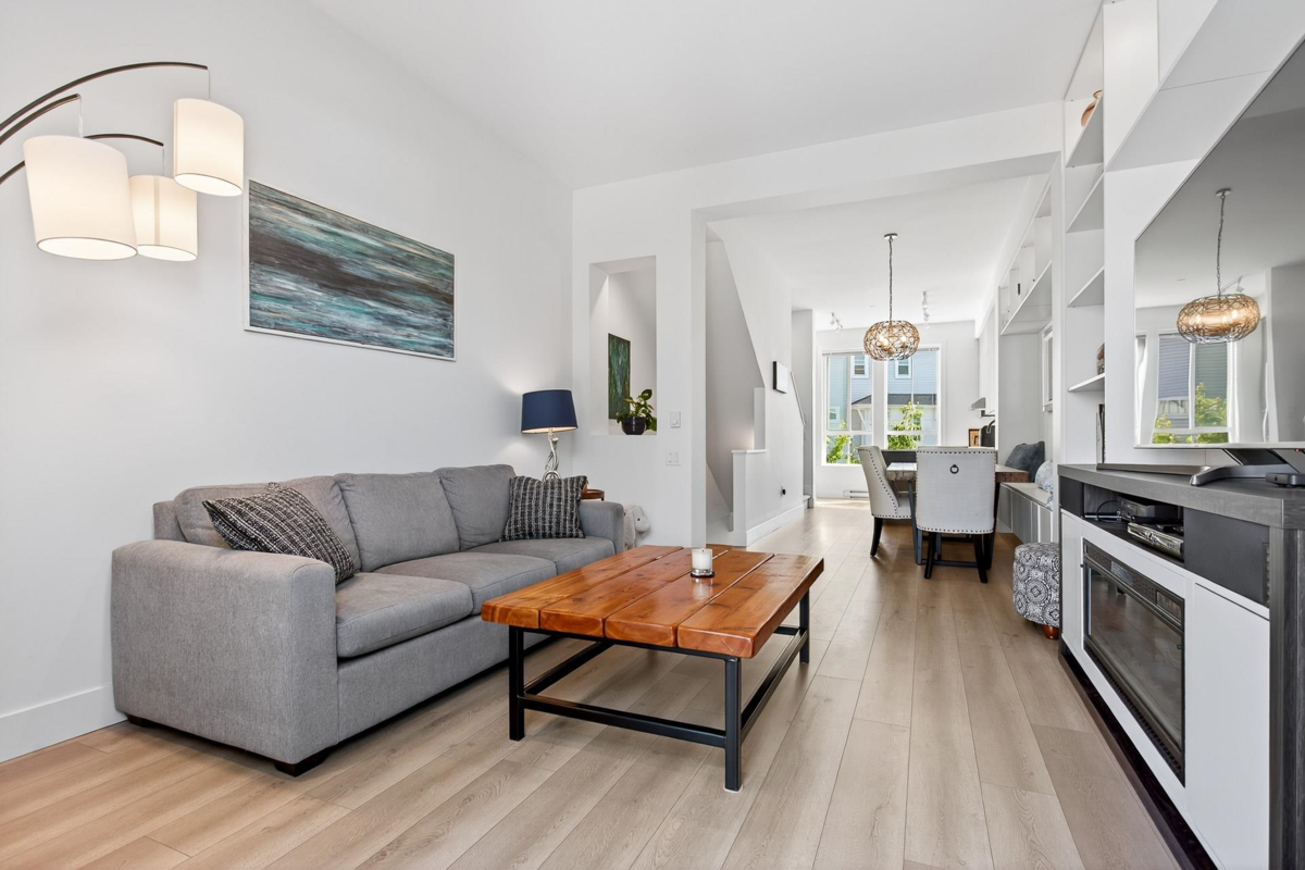 Welcome to this beautifully updated home in a great location in the highly sought-after Seaside community! Recent renovations include new carpets, custom built-in cabinets in the dining & living rooms, & closet organizers. Featuring an open concept floorplan, 10ft ceilings, & large sunny windows throughout. The stunning kitchen showcases stainless appliances, quartz counters, ample pantry storage, & under-cabinet lighting. Upstairs you'll find 2 generous bedrooms & 2 full baths, while the entry level includes a versatile den, powder room, & a garage with plenty of storage. The complex has great amenities including a pool, gym, & games room; plus close proximity to schools, beaches, & shopping. Quick possession is possible. Open House Saturday Nov 29th, 2-4pm!