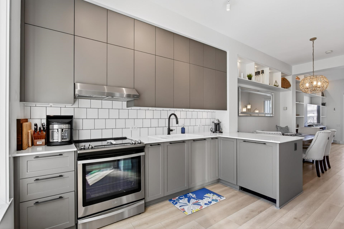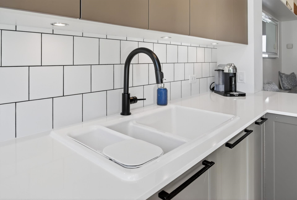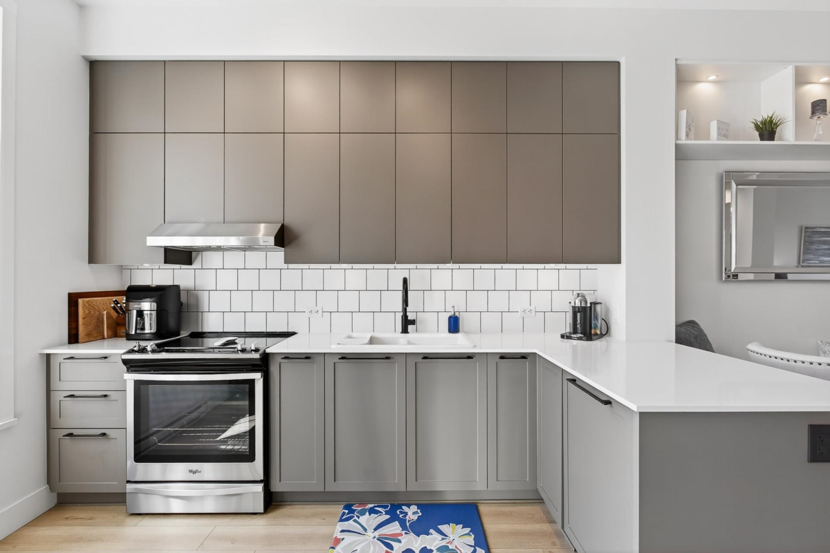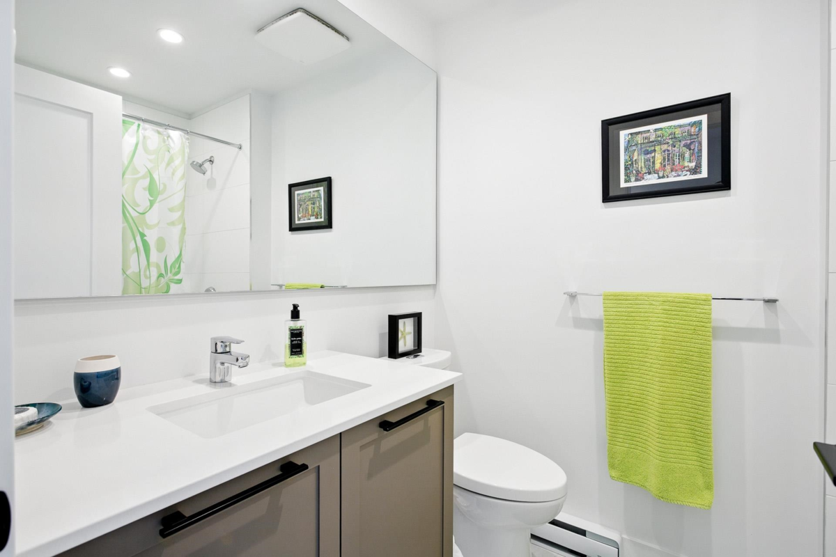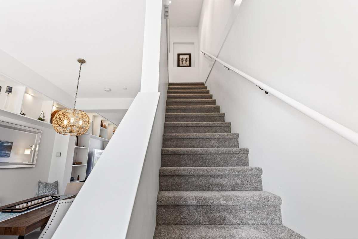 Welcome to this beautifully updated home in a great location in the highly sought-after Seaside community! Recent renovations include new carpets, custom built-in cabinets in the dining & living rooms, & closet organizers. Featuring an open concept floorplan, 10ft ceilings, & large sunny windows throughout. The stunning kitchen showcases stainless appliances, quartz counters, ample pantry storage, & under-cabinet lighting. Upstairs you'll find 2 generous bedrooms & 2 full baths, while the entry level includes a versatile den, powder room, & a garage with plenty of storage. The complex has great amenities including a pool, gym, & games room; plus close proximity to schools, beaches, & shopping. Quick possession is possible. Open House Saturday Nov 29th, 2-4pm!