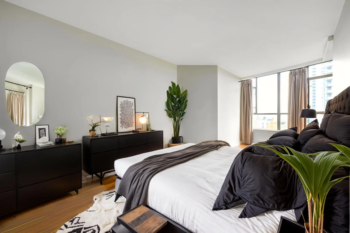 Welcome home to your new life at The Metropolitan! Your new full-concrete home features stunning mountain views from oversized windows, 2 oversized bedrooms (300 square feet EACH) updated flooring throughout and a fully-updated kitchen with SS appliances! Walk to the amazing dining, shopping and entertainment options that Metrotown offers or just hop on the skytrain to downtown Vancouver! Don't feel like leaving your home? No problem - take a swim in the pool and hot tub, relax in the Sauna or work out in the fitness room. BONUS - secure underground parking and a full-sized storage locker! We have virtually staged the home in a variety of styles to showcase the potential! Bring your design ideas or just move in anytime. Take our Matterport 3D tour 24/7!