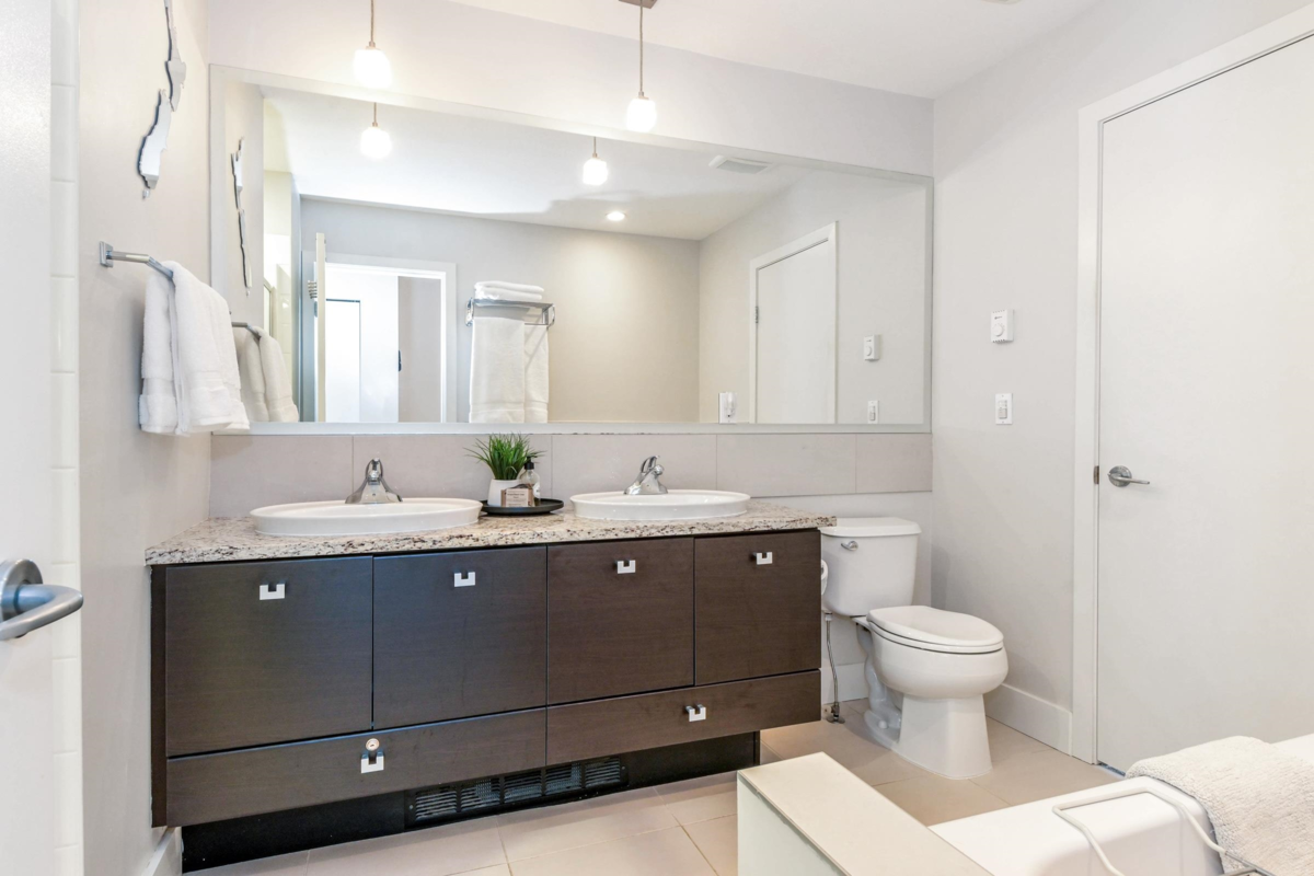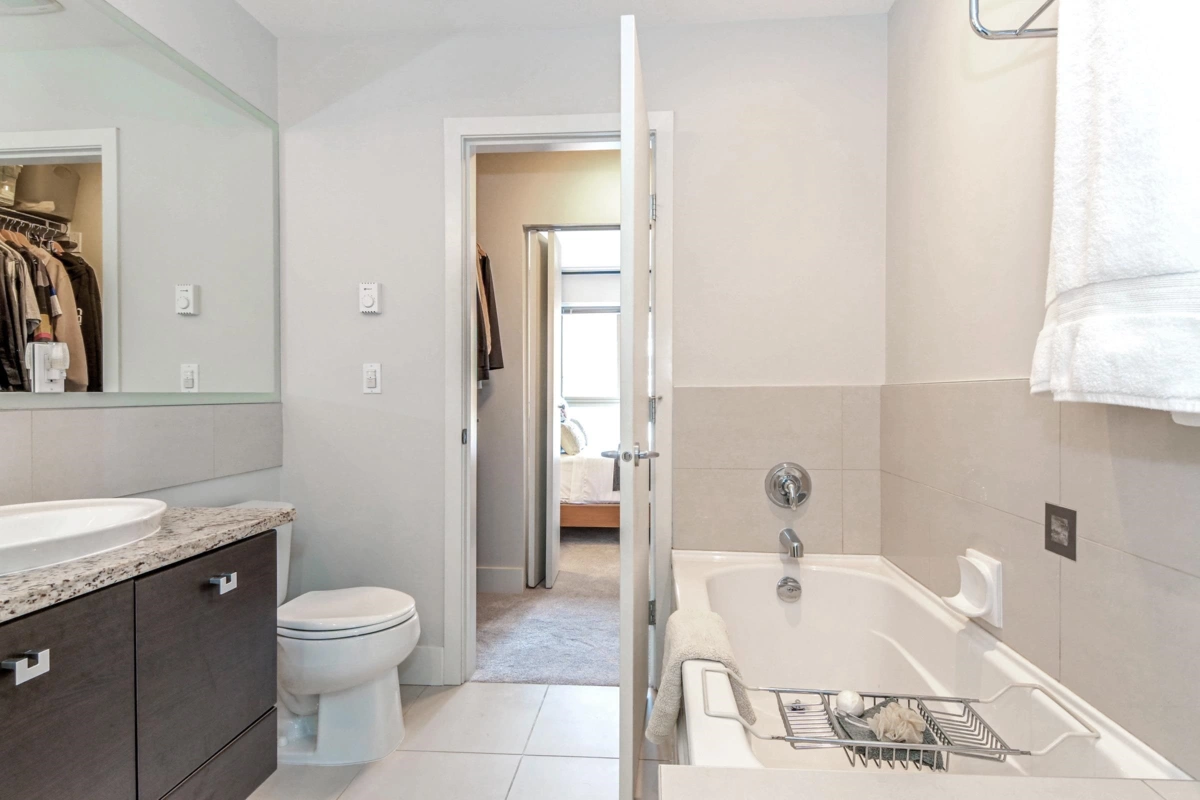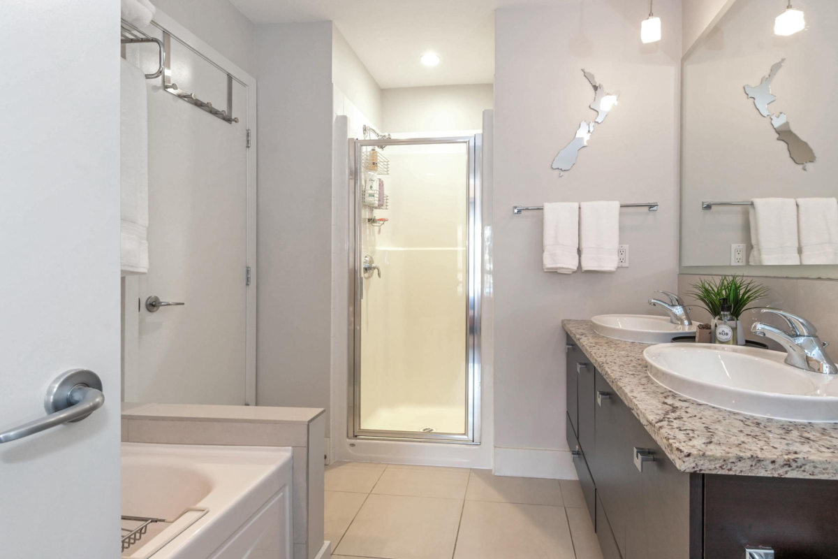 Welcome to SALUS, an award-winning, community built to BuiltGreen Gold certification standards for energy efficiency and eco-friendliness. Ideally located just minutes from public transit, shopping, & Watershed Park, with easy access to Hwy 99 & 91, this home is pristine & move-in ready with fresh paint throughout. Enjoy a functional layout with a powder room on the main, granite countertops, a large pantry, stainless steel appliances, & upgraded dishwasher. Features include new laminate & carpet flooring, porcelain tiles, an upgraded washer and dryer, and a tandem garage. Relax on the west-facing deck overlooking the clubhouse. The amenities include a heated outdoor pool, hot tub, spa rooms, infrared sauna, gym, yoga room, steam rooms, party lounge and a 3,500 sqft rooftop deck.