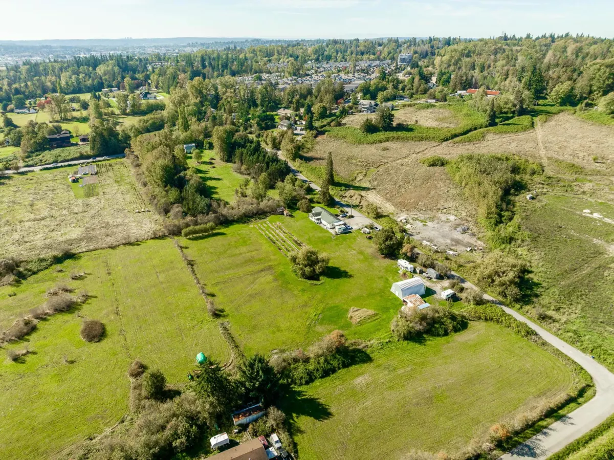 Prime 4.95 acre corner property in a central location with excellent future development potential. Features a solid 3 bedroom rancher farm house with den 2 bath. Big Modern Kitchen and Formal Dining room. Full height crawl storage room access by stairs. Large 26’ x 40’ shop, and three driveways. Flat, usable land with blueberries, apple trees, and Christmas trees. Enjoy views of Mt. Baker and Golden Ears while holding or generating income. Surrounded by growth and directly across from active development—an ideal live-in, rent out and hold-for-future opportunity. A very Valuable Piece of property in the heart of Willoughby/Milner. Close to Hwy 10 and easy access to Freeway.
