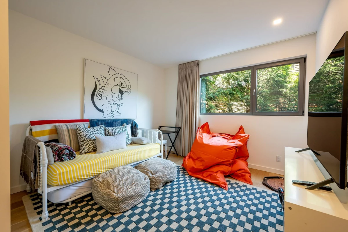 There’s a quiet kind of magic in White Gold — that perfect Whistler neighbourhood where the mornings start with coffee on a sun-drenched deck and end with a stroll to the Village for dinner. At the heart of it all sits a contemporary masterpiece — a 3,522 sq/ft home that celebrates space, light, and connection. Built on a rare flat 9,611 sq/ft lot, this property gives you something you don’t often find in Whistler: your own real backyard. The kind where kids play until dusk and summer evenings are spent around the table with friends, long after the stars have come out. Inside, the home unfolds with ease — four bedrooms all on one level, perfect for family living. The main living area is open yet warm, inviting you to gather, to cook, to stay a while.